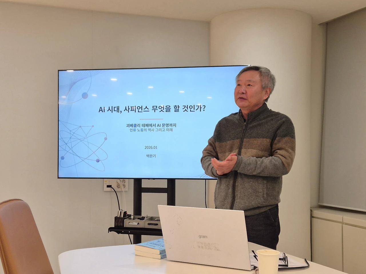 올해 첫 신춘 연사는 백완기 AI노동연구소 소장이었다.