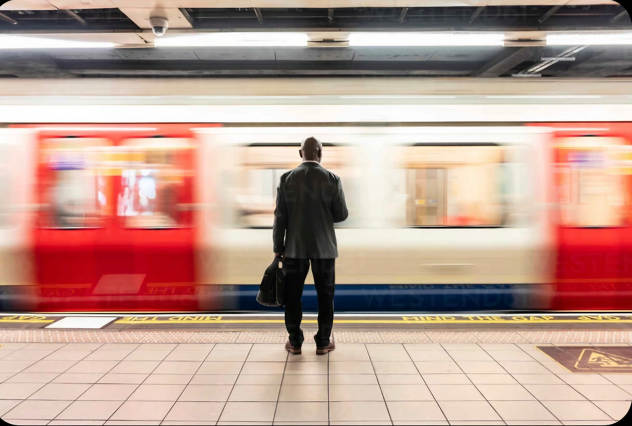 사람들은 서두르고, 열차는 시간을 지킨다.