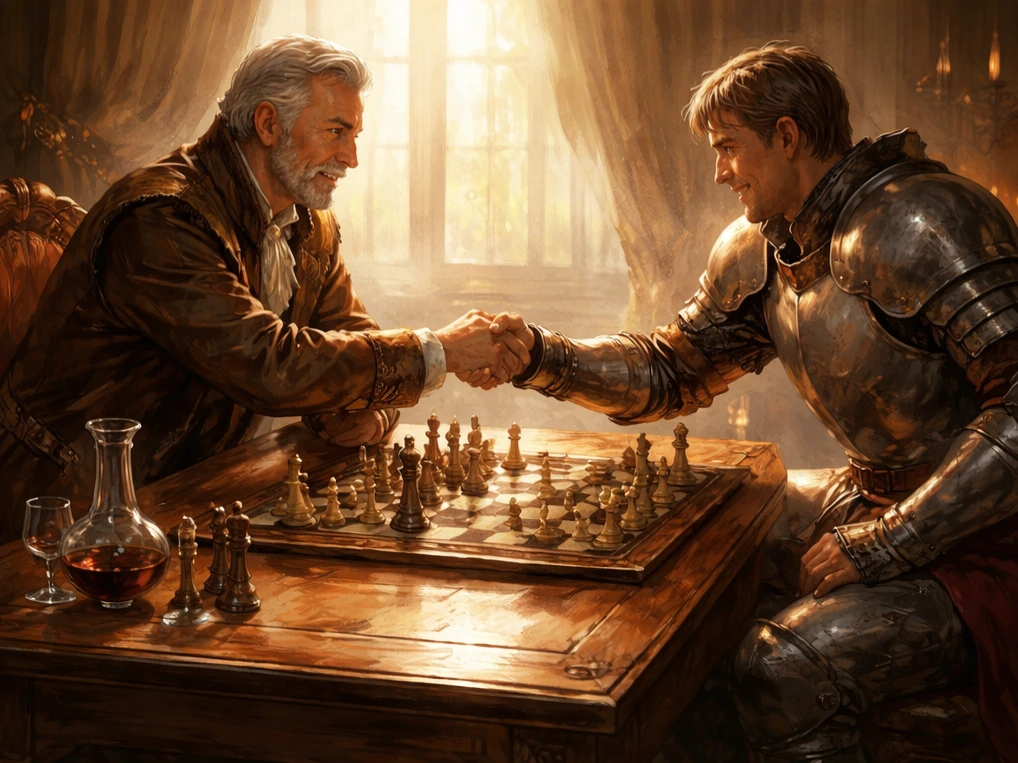 그는 정중하게 한 판의 체스를 청했고, 단순한 대국이 아니라 ‘내기’를 걸자고 했다.