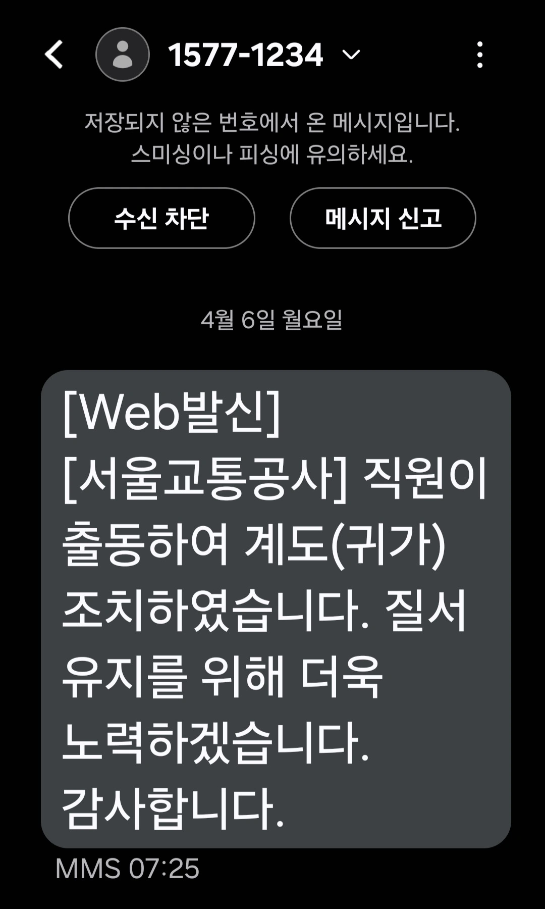서울교통공사 출동, 귀가 조치 완료."