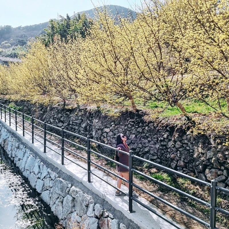 산수유 꽃길을 걸으며 어디론가 떠나시는
