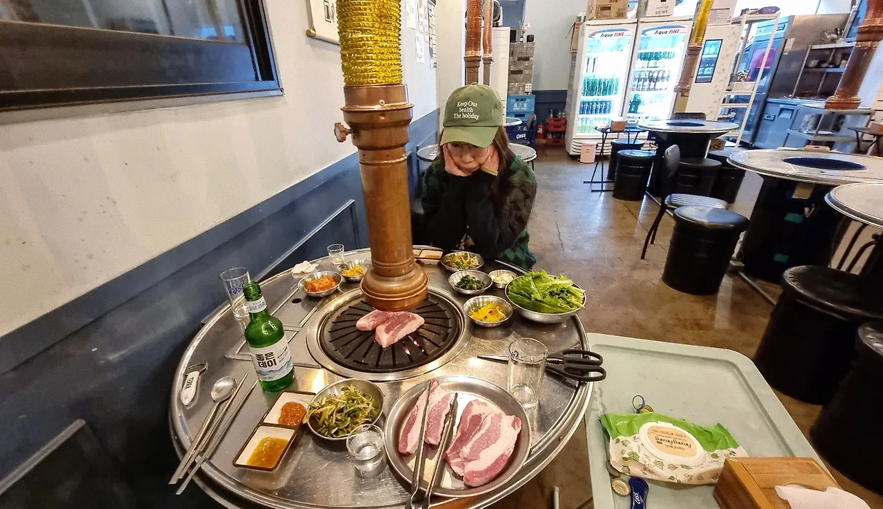 - 여행 할 때는 먹거리보다 볼거리를 중요하게 생각하는 나이라 동적인 여행을 즐긴다. 그래서인지 평소보다 더 움직임이 많고 빨라져 칼로리 소비가 늘어나는 편이다. 어제는 디너로 순대 국밥과 고깃머리수육을 먹고, 오늘은 디너로 통삼겹을 먹는다. 삶은 고기가 건강에 도움된다는 말이 있어 요즘 수육을 즐겼지만 바삭하게 구운 통삼겹살의 맛을 누가 포기할 수 있겠는가. 광양에서 처음 알게된 이집은 상호명이 심플하고 깔끔하다. 우리 동네 고기집. 사장님께서 따끈한 계란찜을 서비스로 주셨고, 냉면이 없는 메뉴판을 뚫어져라 보다가 #계란후라이짜파게티 를 먹게 되었는데, 신김장김치와의 환상적인 맛에 금세 반해버렸다. 거기다 심플하지만 깔끔한 사장님의 밑반찬들에 입맛을 돋구었다. 어쩌면 여행은 살찌는 걸 포기하고서 떠나야 즐거움이 가득해진다는 것을 다시 느낀다. 내일은 또 어떤 즐거움이 그녀의 여행을 행복하게 만들까. 고민해 본다.