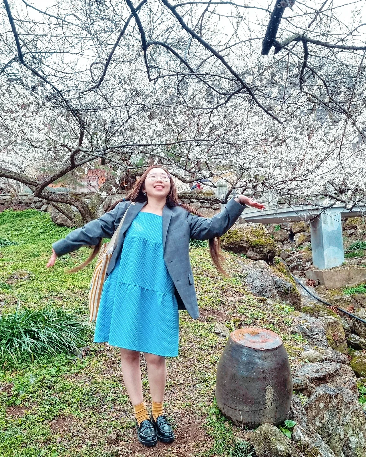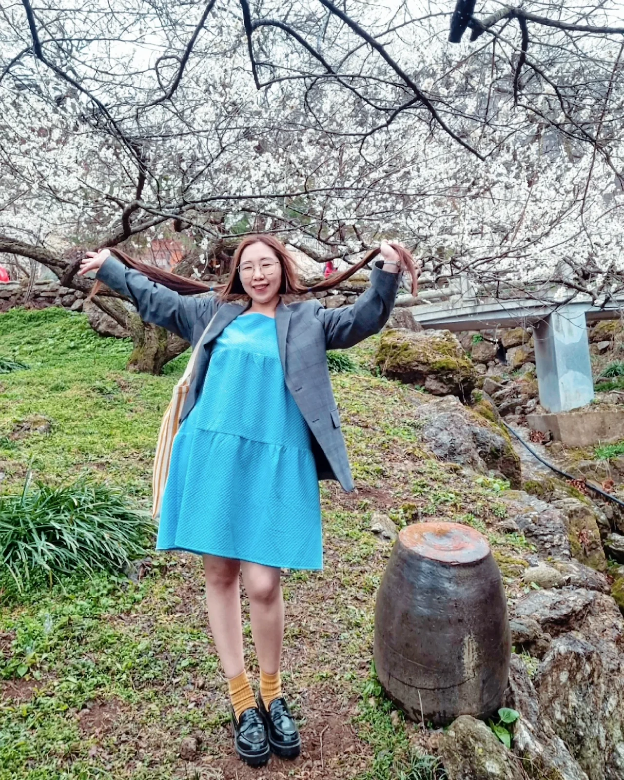 - 어릴 적엔 변함없다는 말의 의미를 알지 못했는데 나이가 들면 들수록 '변했구나.'라는 말보다 '변함 없구나.' 라는 말이 정겹고 따뜻하게 느껴진다. 몇십년이 지나도 십대의 나를 기억해 주시는 선생님의 따뜻한 시선과 온화한 한 마디에 내 마음은 그저 꽃 같고 봄 같다. 내가 살아가는 삶의 하루하루가 고맙고 감사한 일이 가득하니 누군가의 마음에도 나란 존재가 꽃 같고 봄 같기를. 그날의 매화 꽃은 세상을 빛나게 했고 그날의 그녀는 동심으로 돌아가 몽글몽글한 마음으로 매화 꽃길을 걸었다.