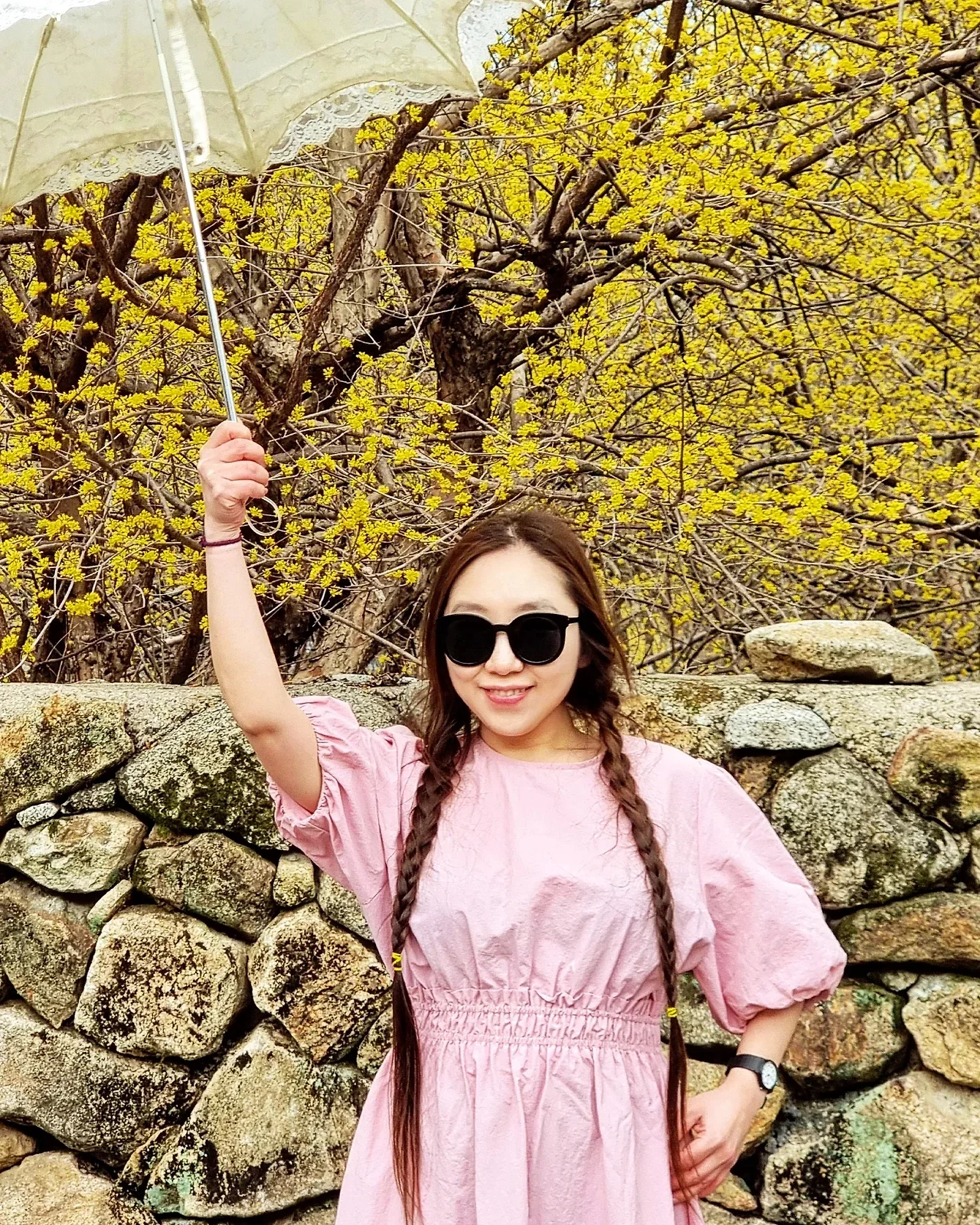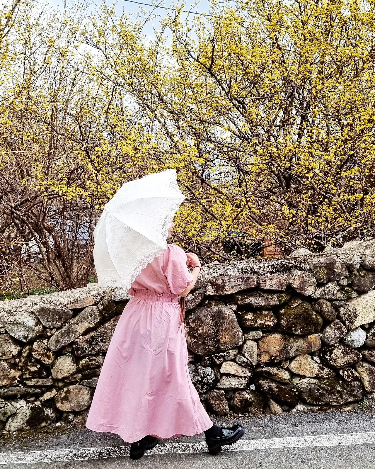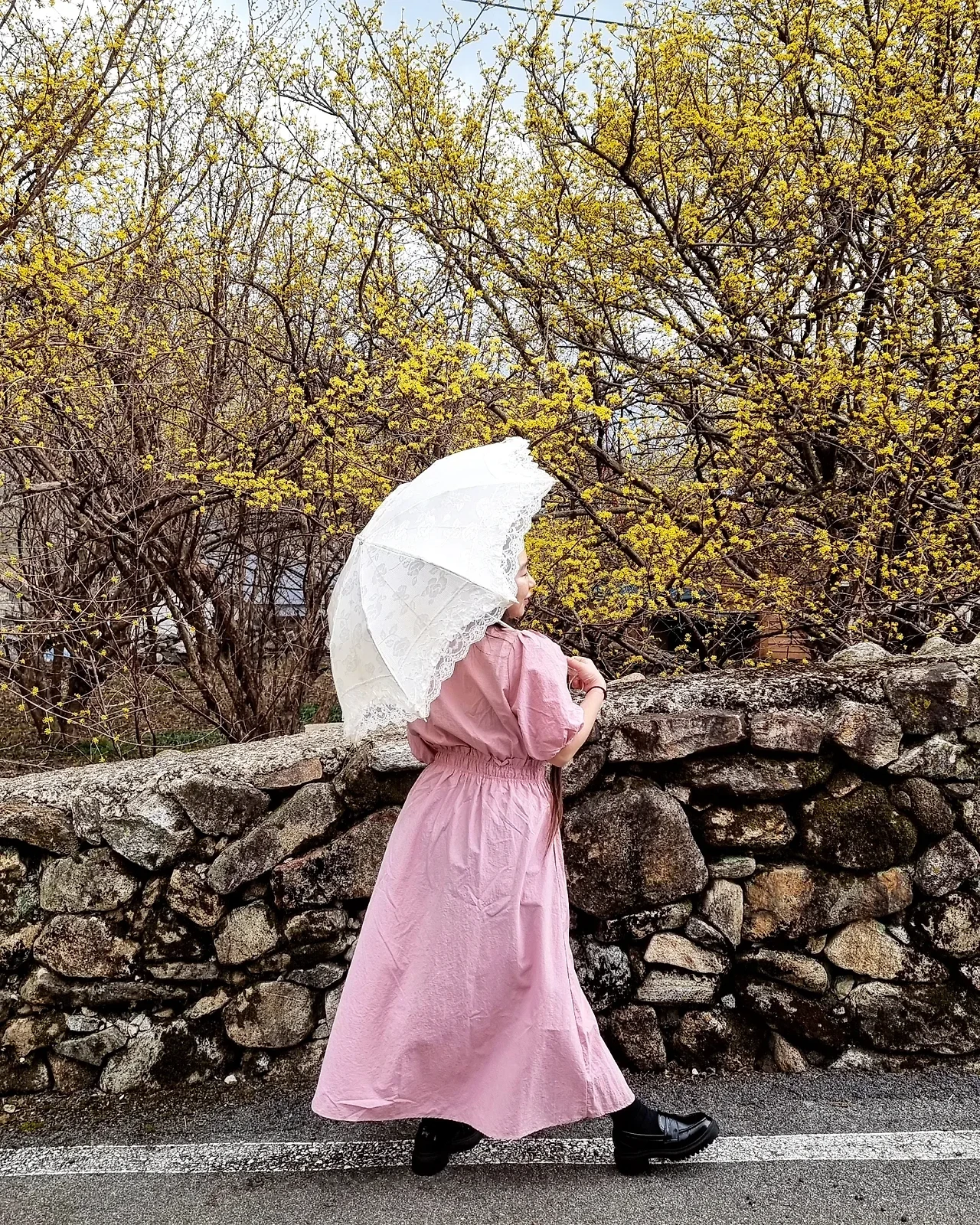 #구례 #현천마을 #산수유 #산수유꽃 #돌담길 #꽃길만걸어요 #꽃을보듯너를본다 #봄처녀 #레이스양산 #핑크원피스 #블랙구두 #봄날애 #마음이가벼워졌다 #행복한여행자