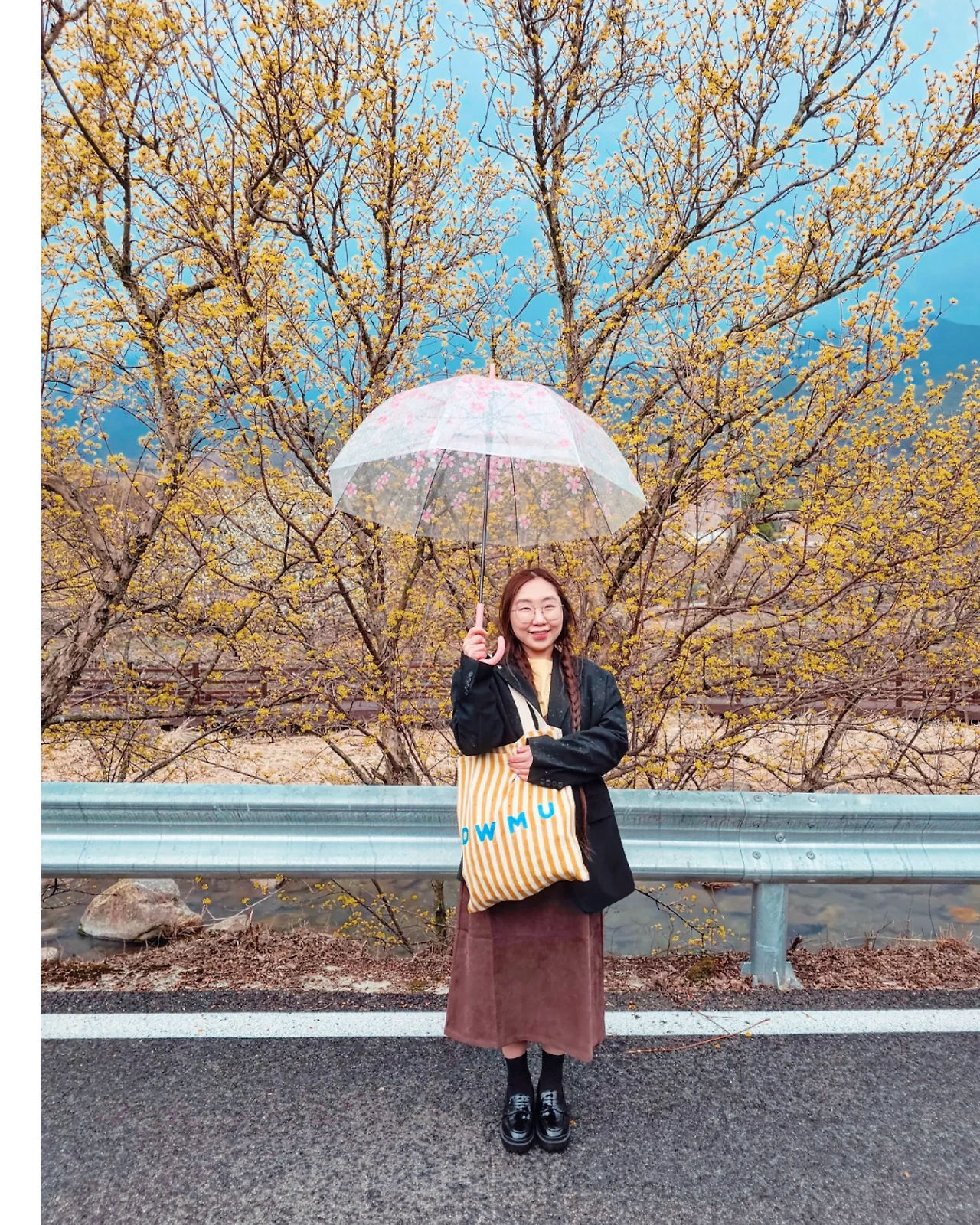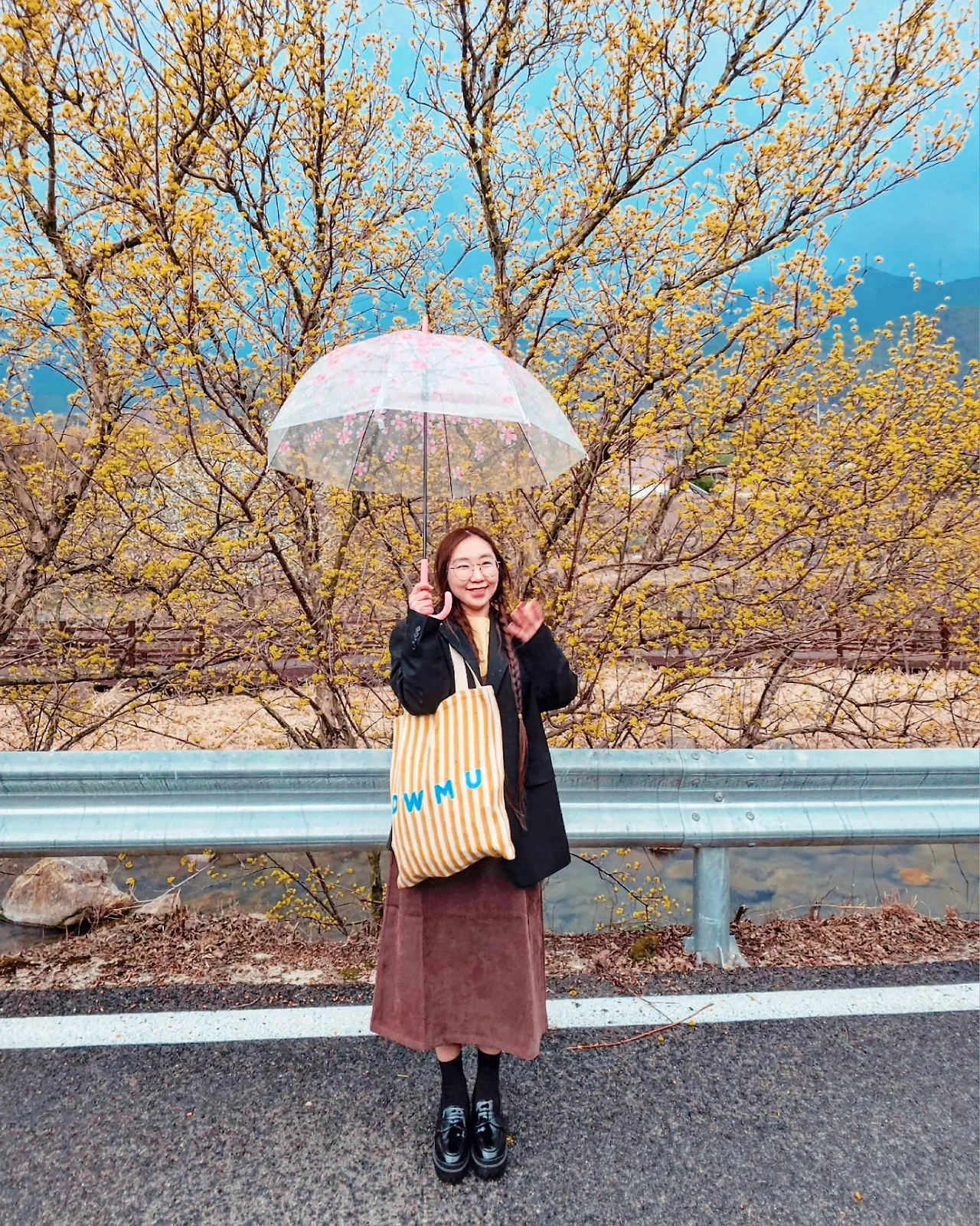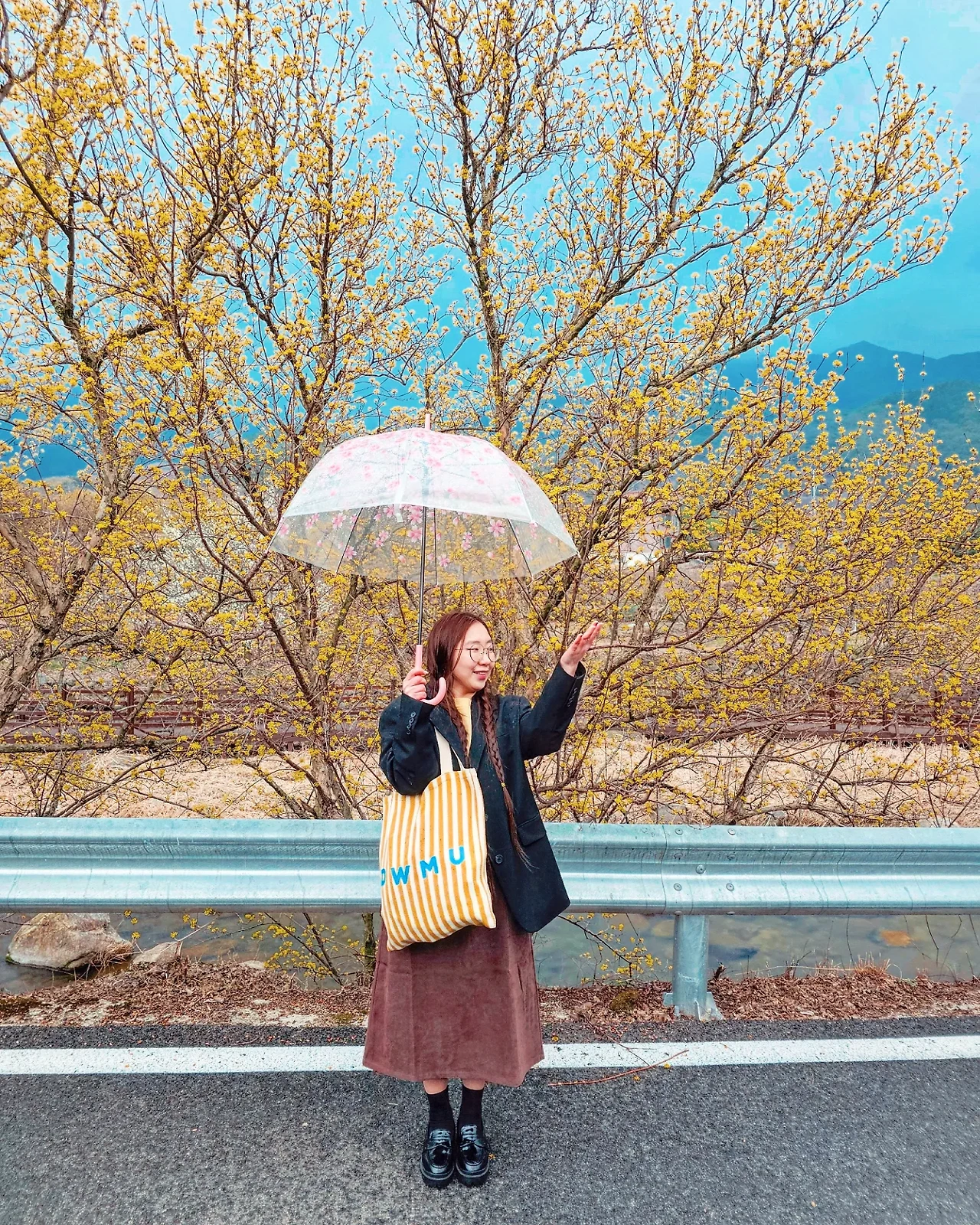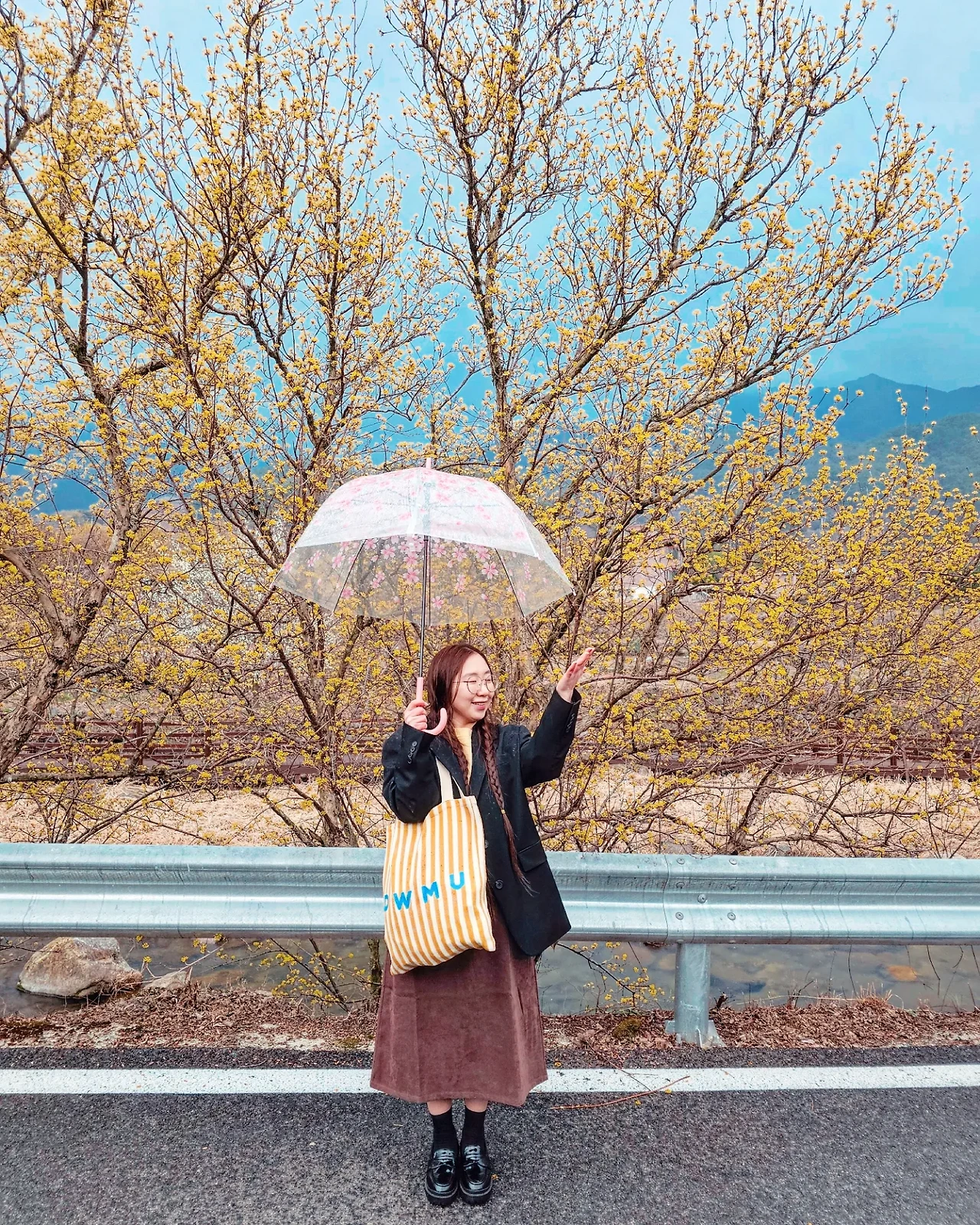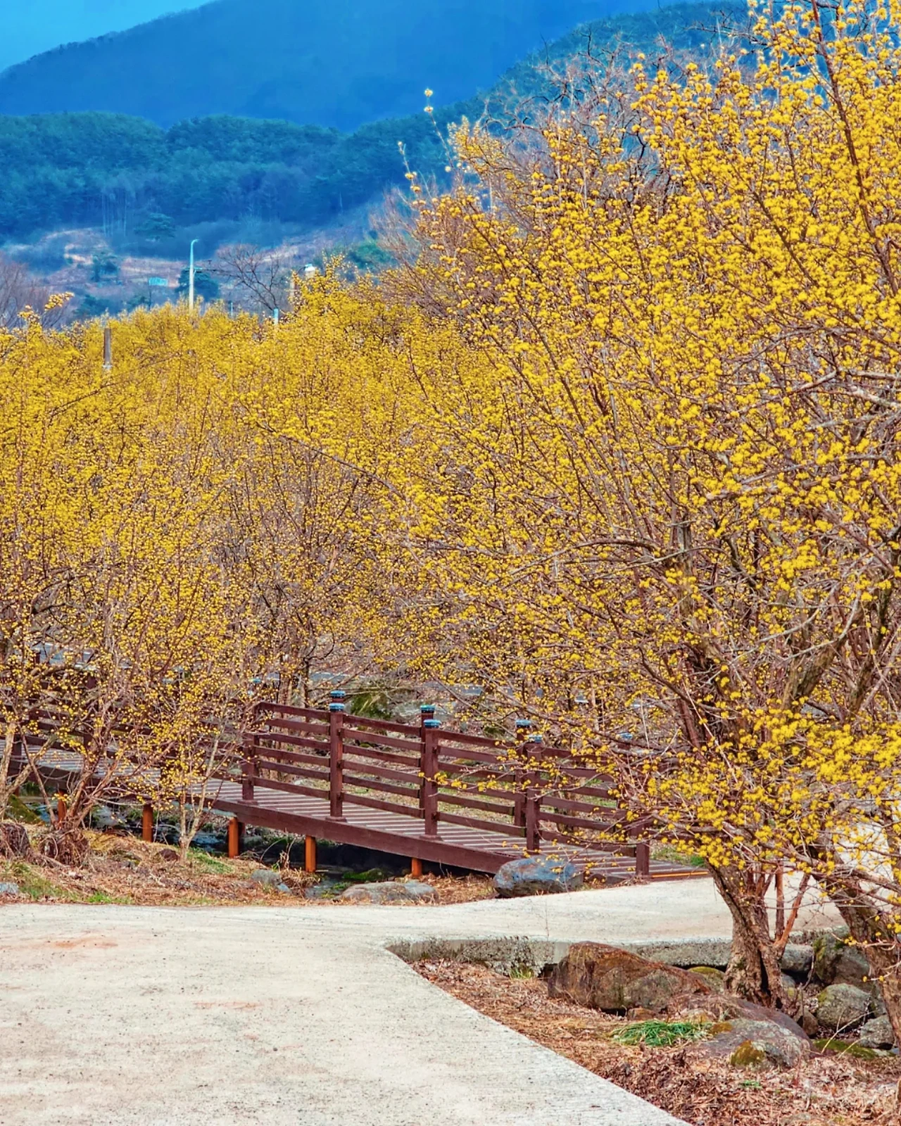 노랗게 만개한 산수유 꽃길을 걸었어.