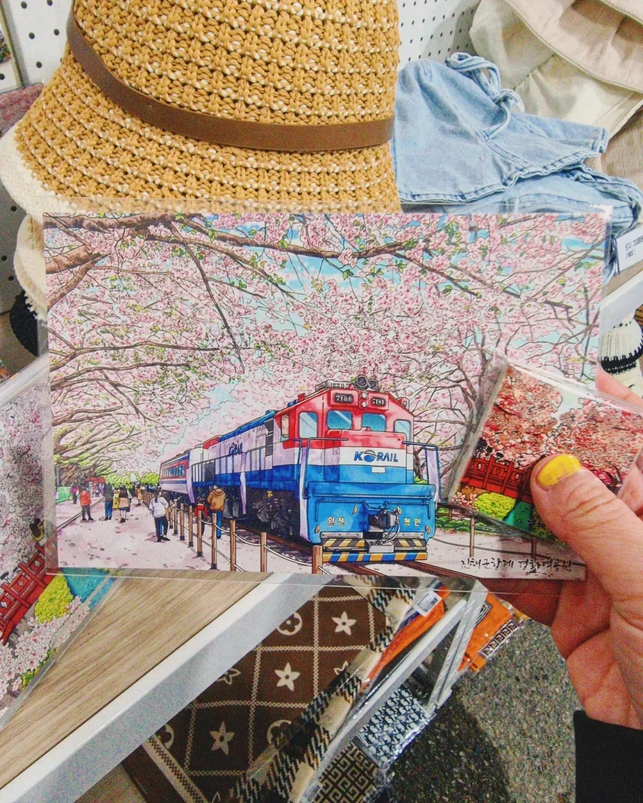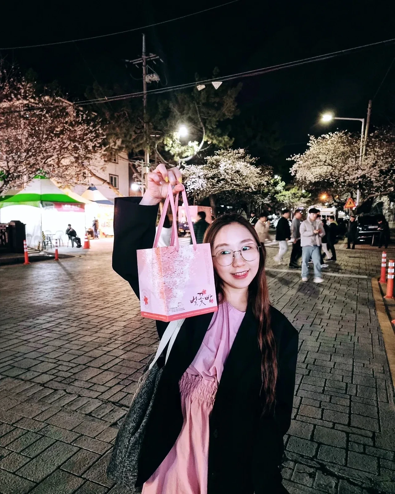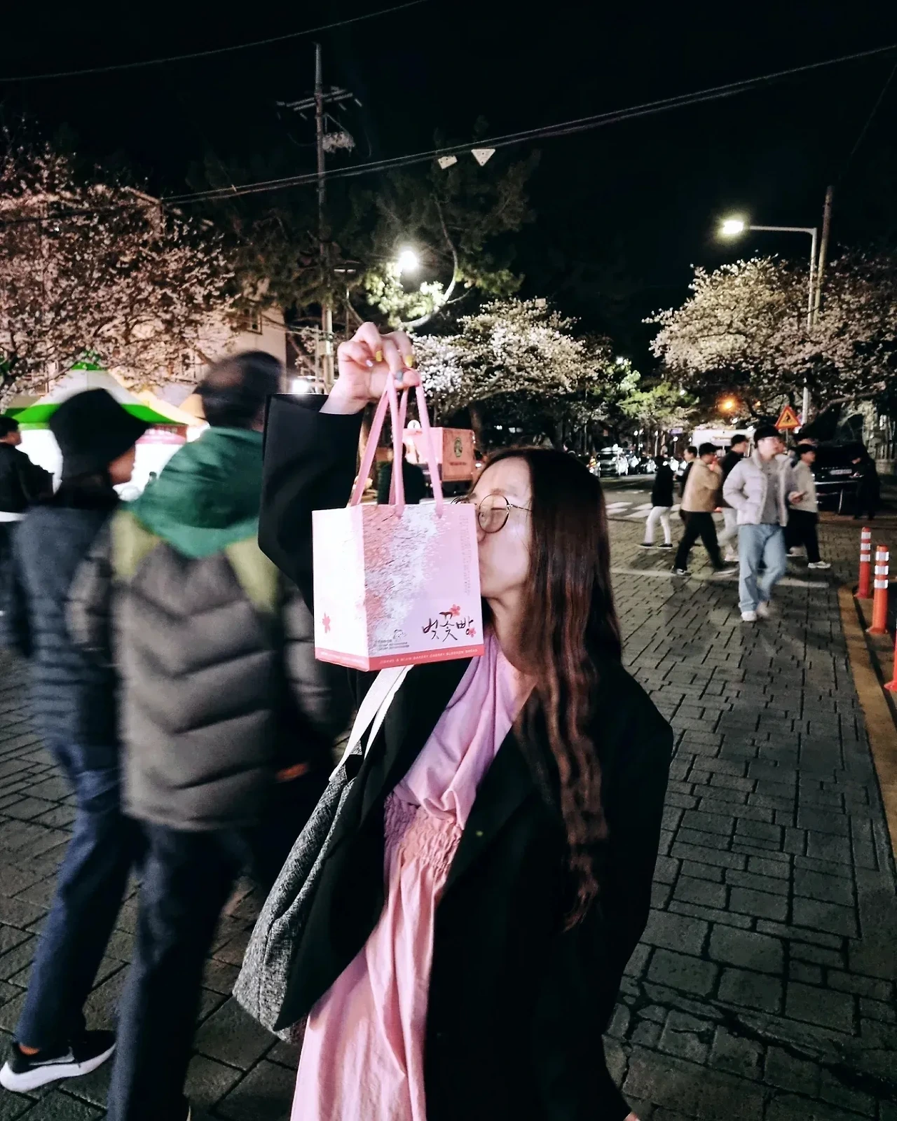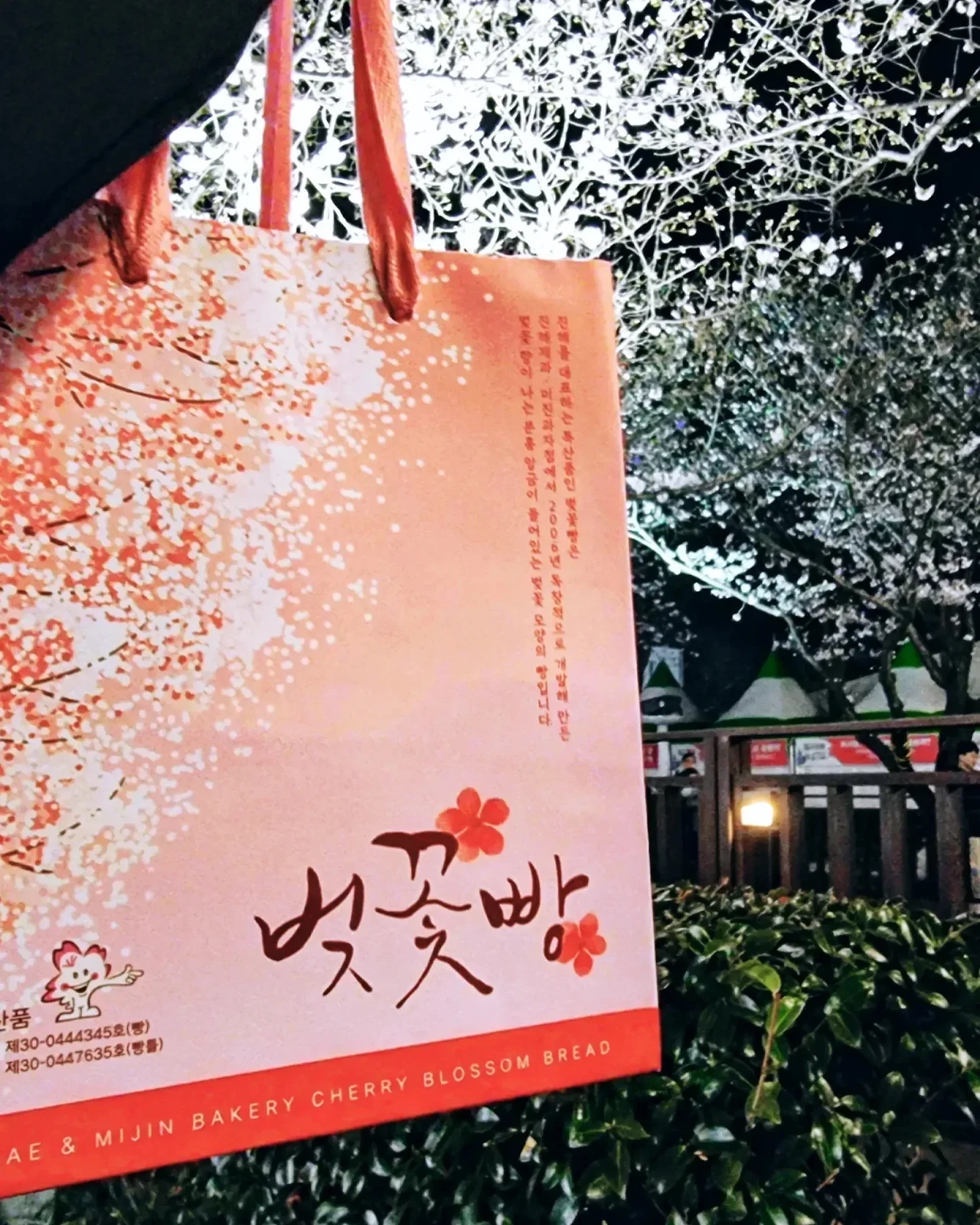 - 여행을 가면, 그 시간을 기념할 수 있는 맛과 멋을 담아온다. 예를 들어 광양매화마을에선 매화나무 묘목을 데리고 와서 심었고, 구례산수유마을에선 산수유찰떡모찌를 선물 받았다. 그리고 벚꽃이 가득한 진해에선 아름다운 경화역이 그려진 엽서와 여좌천 로망스거리의 연인이 담긴 자석, 그리고 진해의 별미, 벚꽃빵을 선물 받았다. 딱 벚꽃 모양의 빵인데, 여기서 포인트는 분홍빛 팥앙금이 벚꽃처럼 빵 속에 들어 있어서 꽃을 먹는 듯한 느낌이 난다. 많이 달지 않고 담백해서 고객의 건강을 생각하는 듯한 배려가 보였다. 결론적으로 벚꽃빵은 모양도 예쁘고, 맛도 좋아서 진해의 봄을 여행하는 이들에게는 꼭 추천하는 빵집이다.