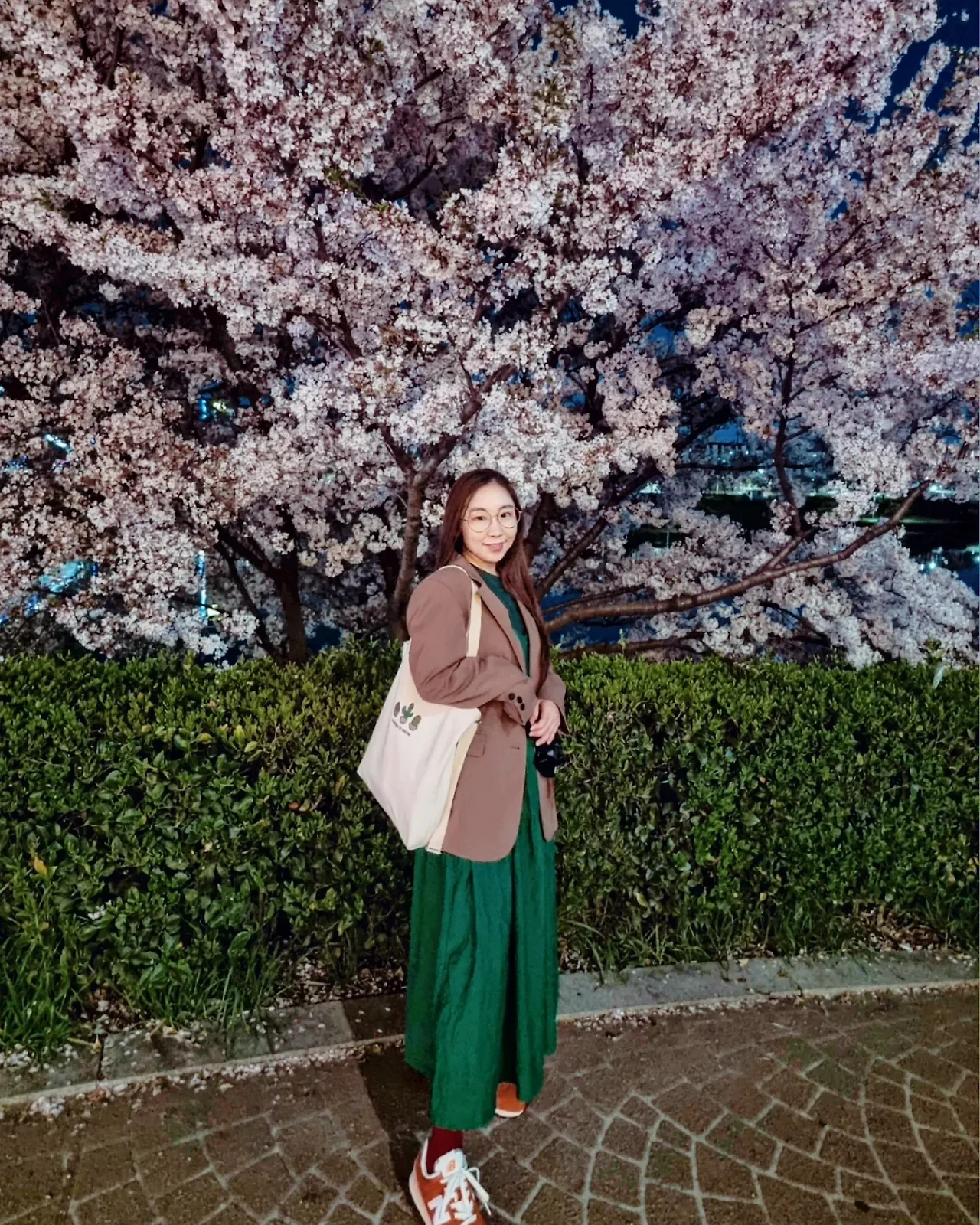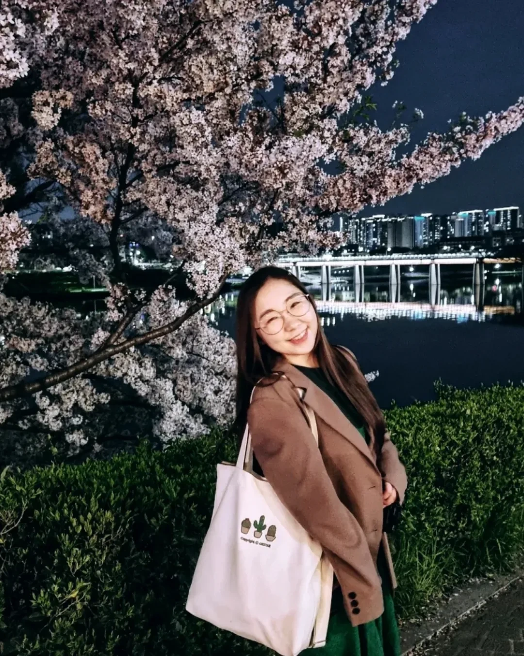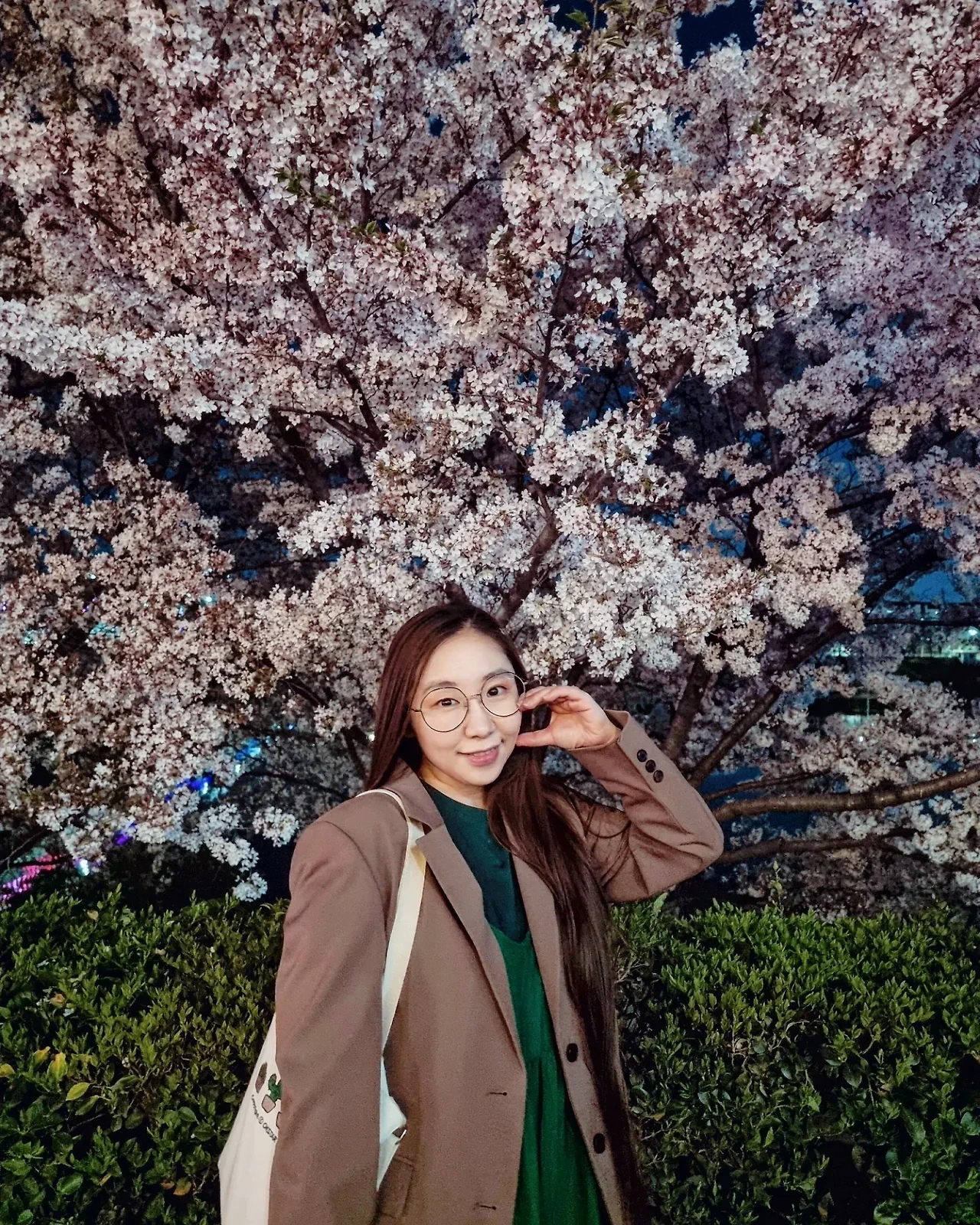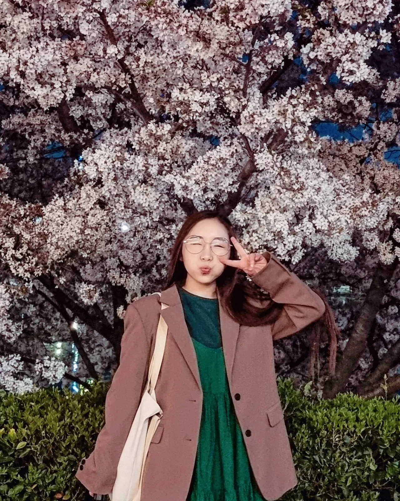 화장기 없는 그녀가 벚꽃을 바라볼 때