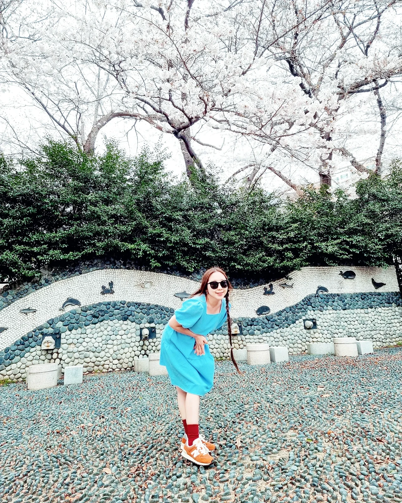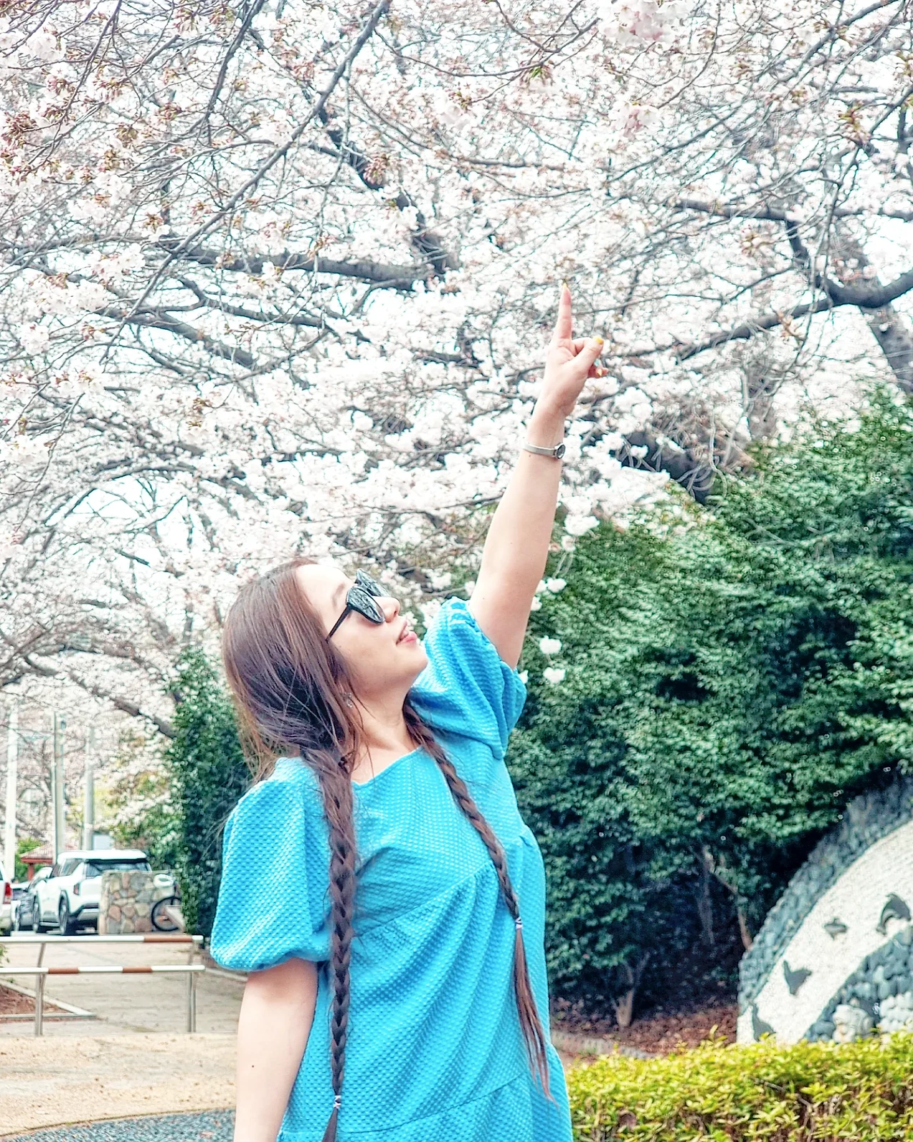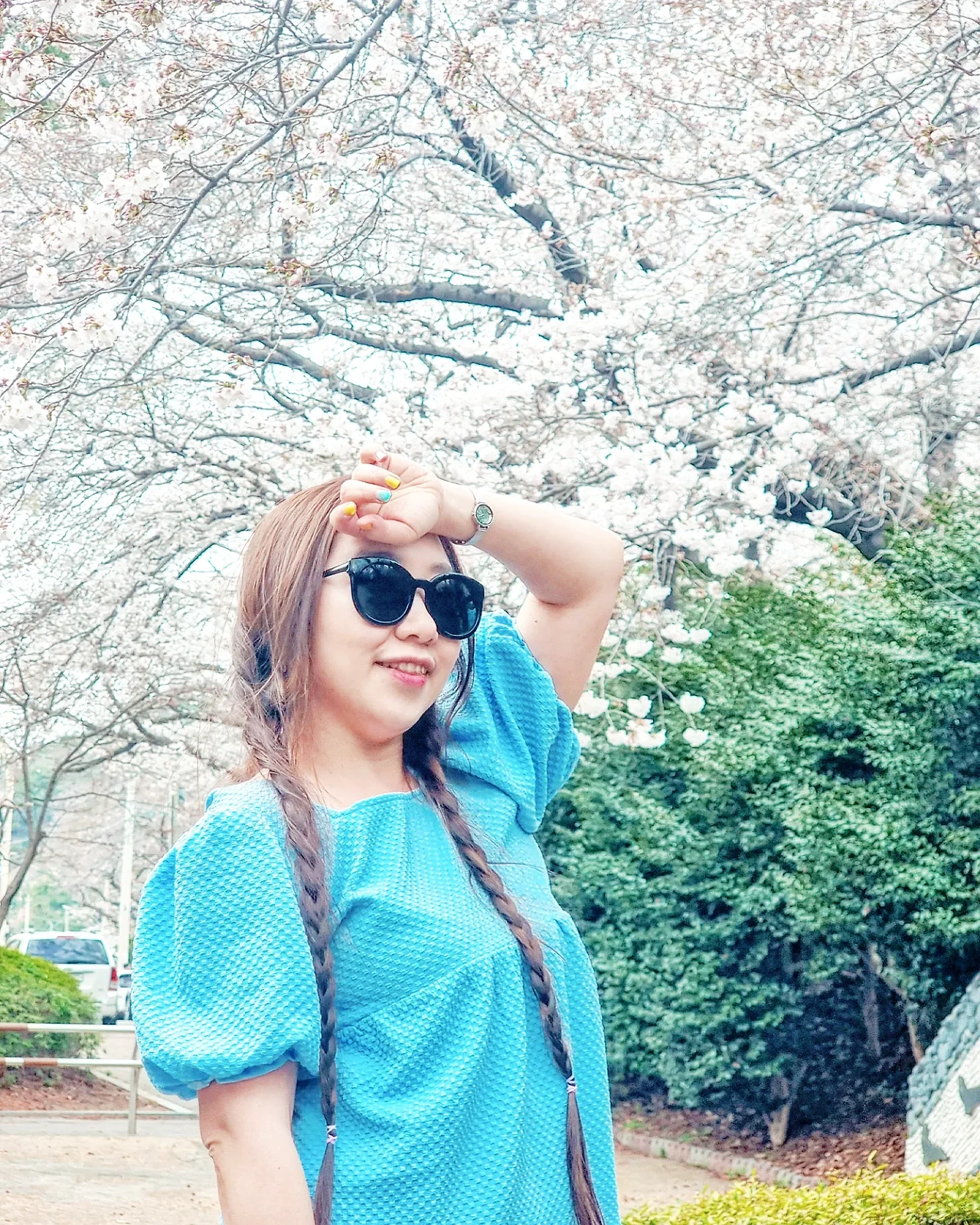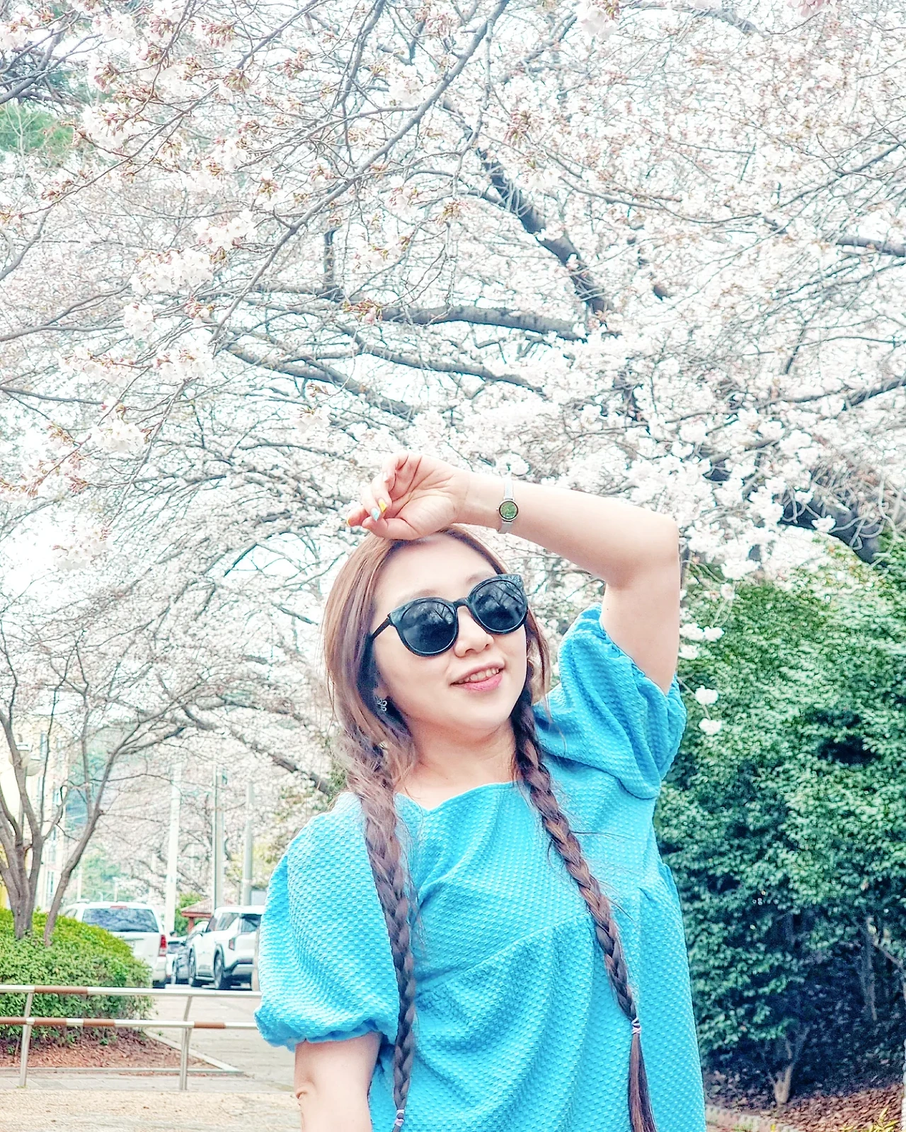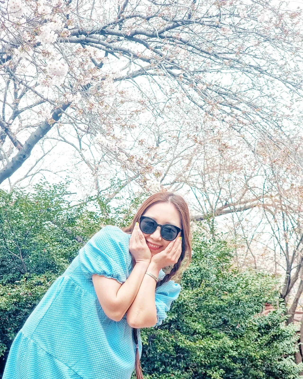 화장기 없는 그녀가 벚꽃을 바라볼 때