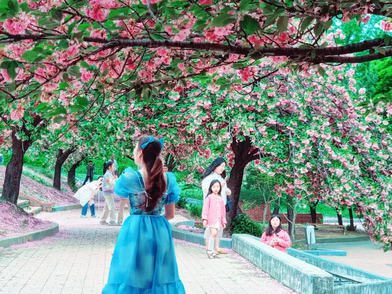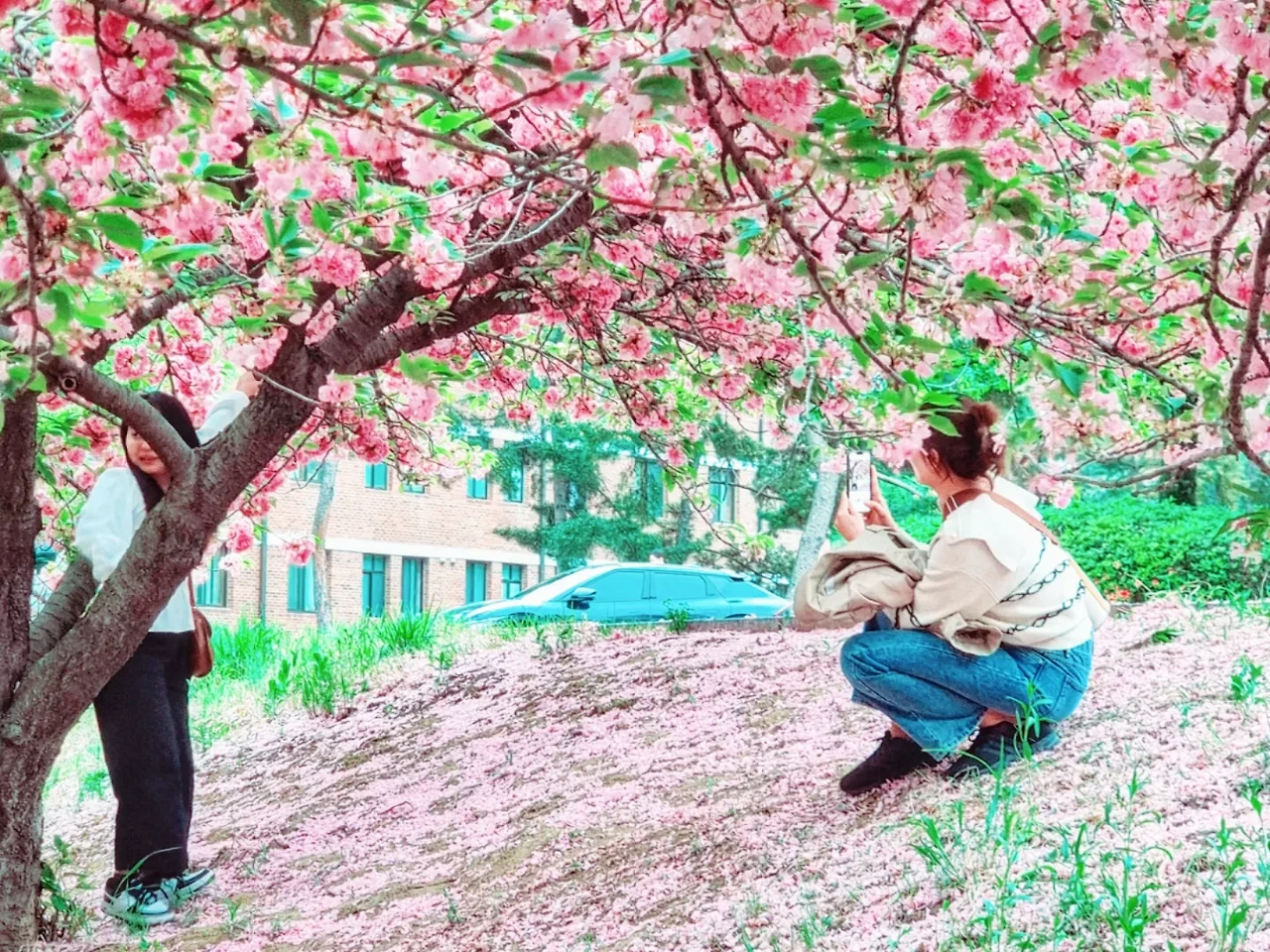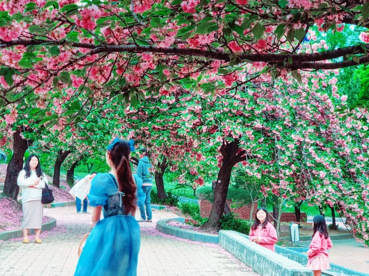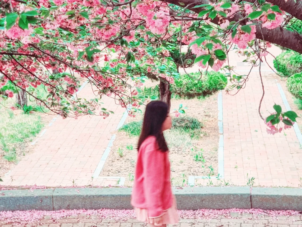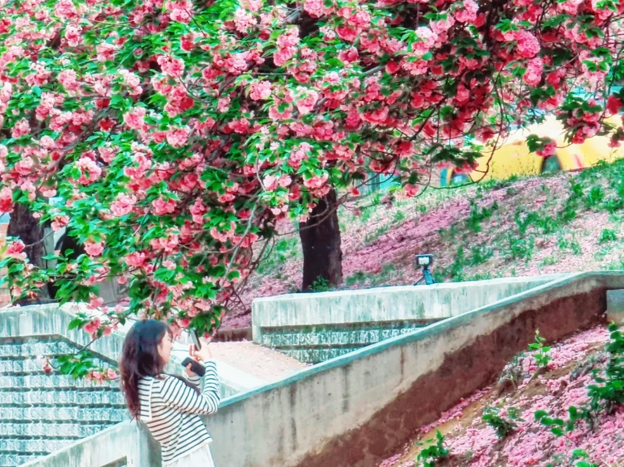 #어제 #참예뻤다 #분홍빛깔 #겹벚꽃 #꽃비 #대구대학교 #꽃을보듯너를본다 #웃음꽃 #사랑스러운 #she #her