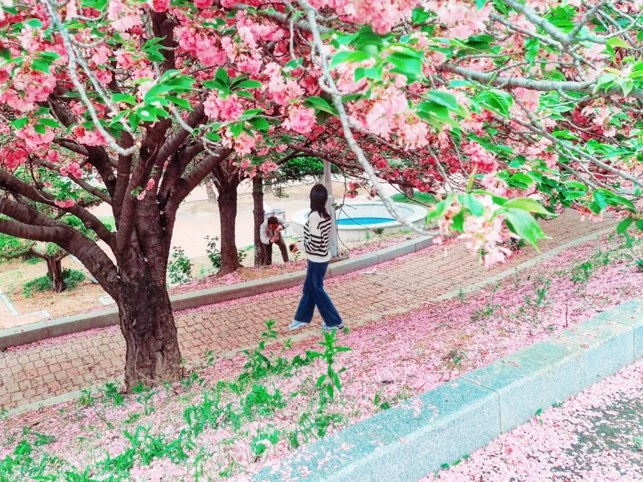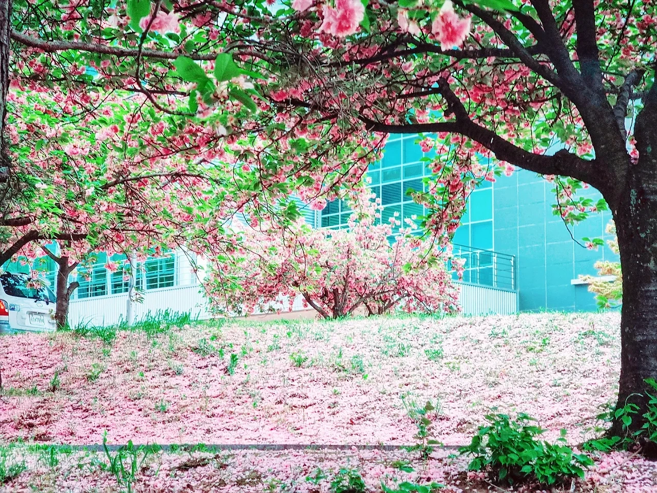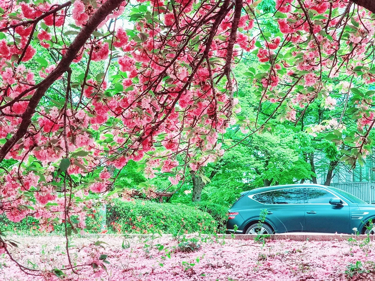 분홍빛 겹벚꽃이 꽃비처럼 내리던 날
