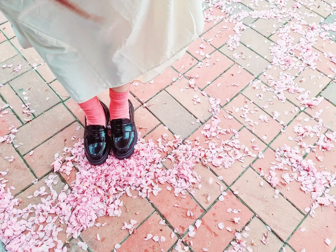 분홍빛 봄을 만끽하며 친구의 예쁜 미소를 담고