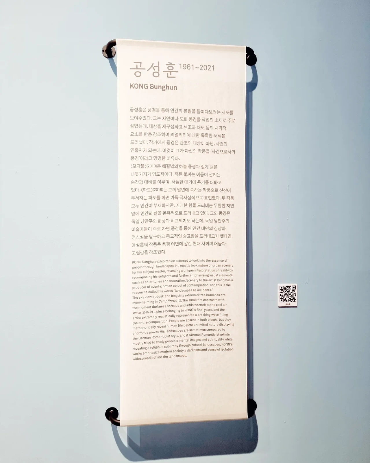 고요한 미술관에서 거센 파도를 만났다. 눈으로 보고, 눈을 감고 귀로 들려오는 듯한 파도 소리를 상상한다. 바다 한 가운데 서있는 듯한 무언의 감동을 느낀다. 사진과는 또다른 그림의 힘을 얻는다.