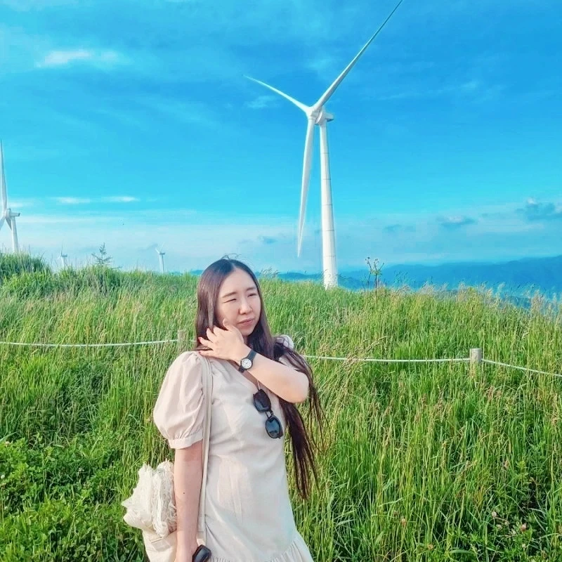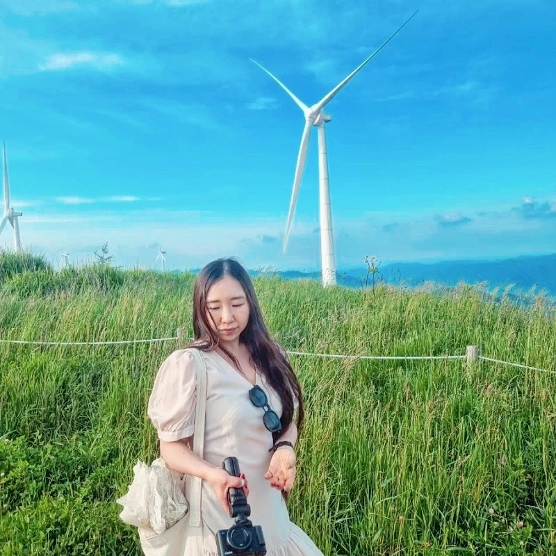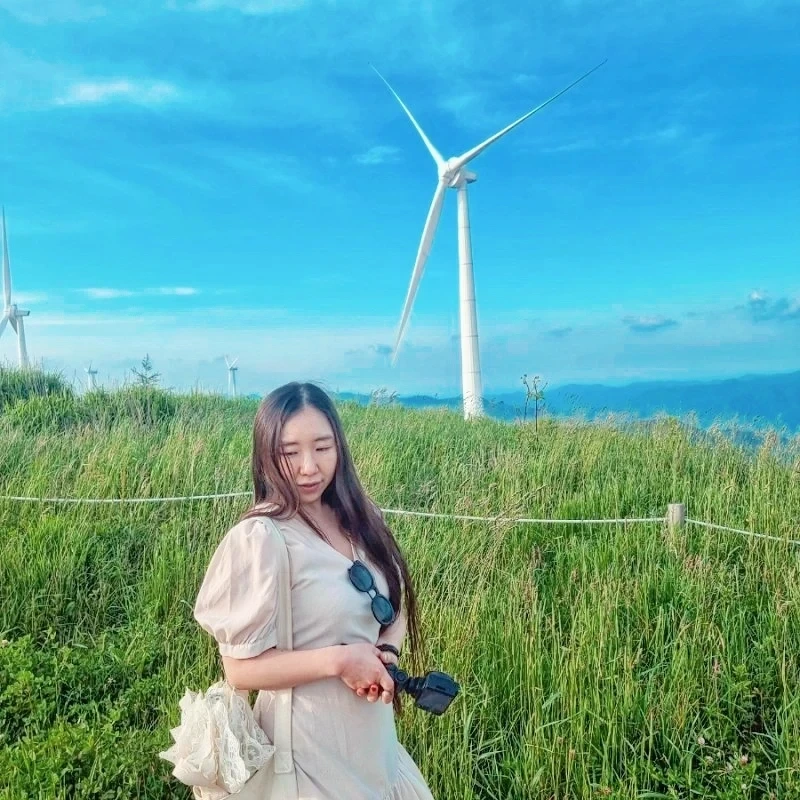 파란 하늘과 푸른 들판과 온통 산으로 둘러싸여 자연의 푸름이 빛날 때, 자연으로 불어오는 바람을 만날 때, 내가 좋아하는 것과 사랑하는 것들이 가득했던 그날애_ #태백 #매봉산 #바람의언덕