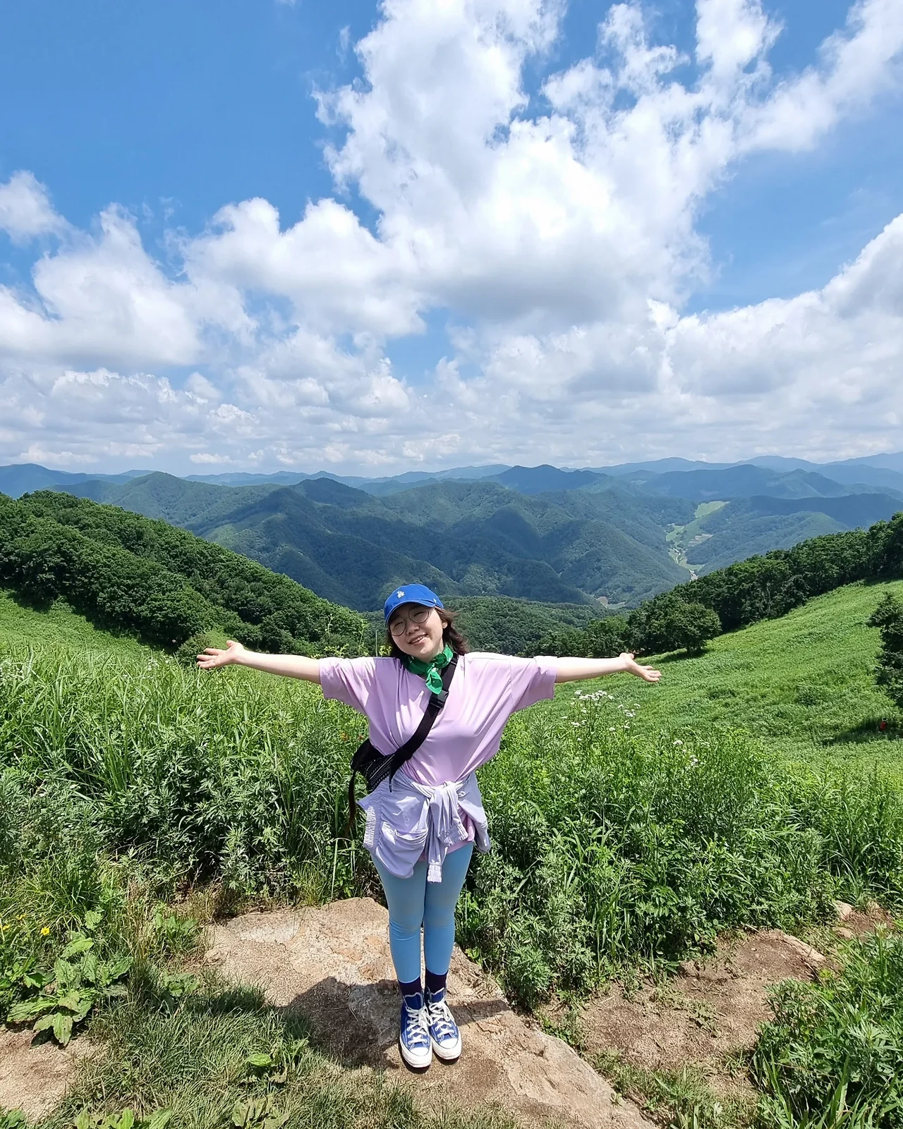 월요일 이었다. 하늘과 가까워지는 느낌이었나, 산의 기운을 받아서였던걸까, 무더움에서 비롯된 신체의 반응이었을까, 자연과 하나되는 인간의 감정 변화였을까 심장이 두근거렸던 그날의 순간을 떠올린다. 여름 바다를 좋아하지만, 여름 산이 좋아진 이유는 온통 푸른 그날의 풍광을 알게 되었으니까. 참 좋았어, 참 예뻤어. '야호' 만세가 절로 나왔던 산타는 여자의 고백이지.