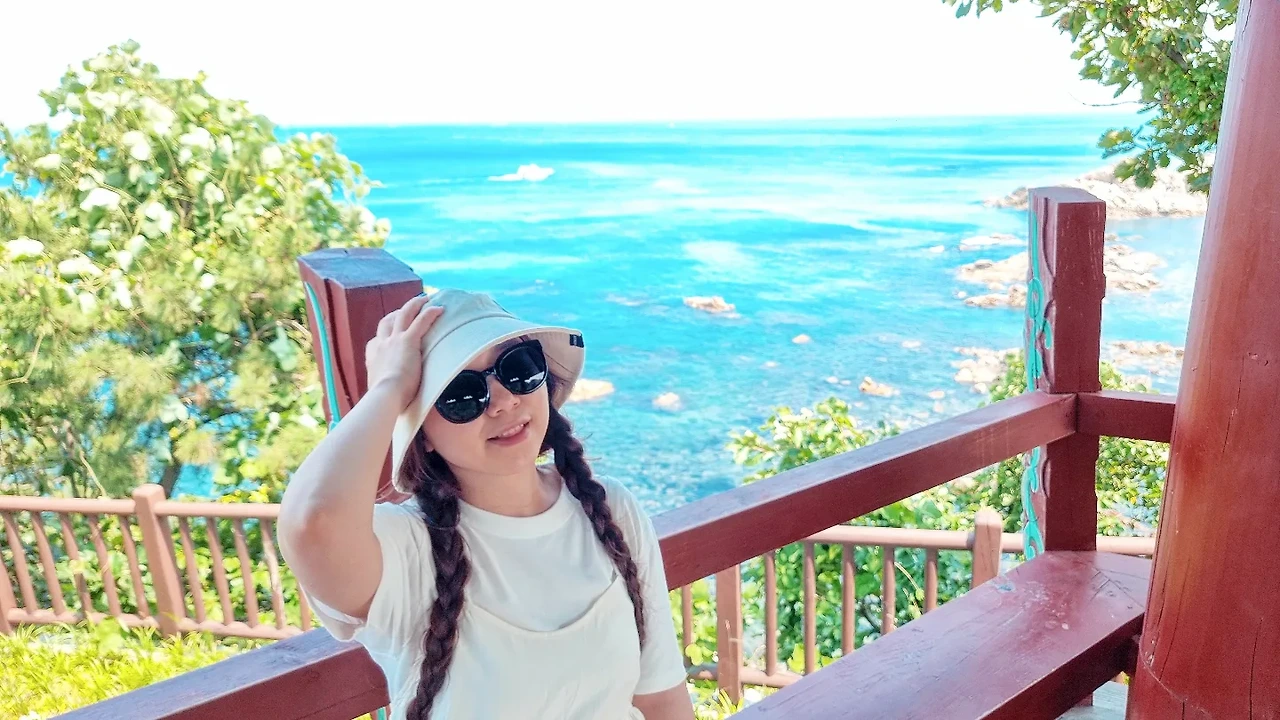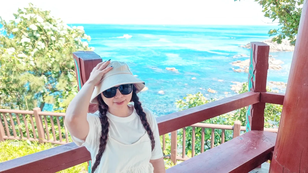 에메랄드빛 바다를 거울 삼아 내려다 보고