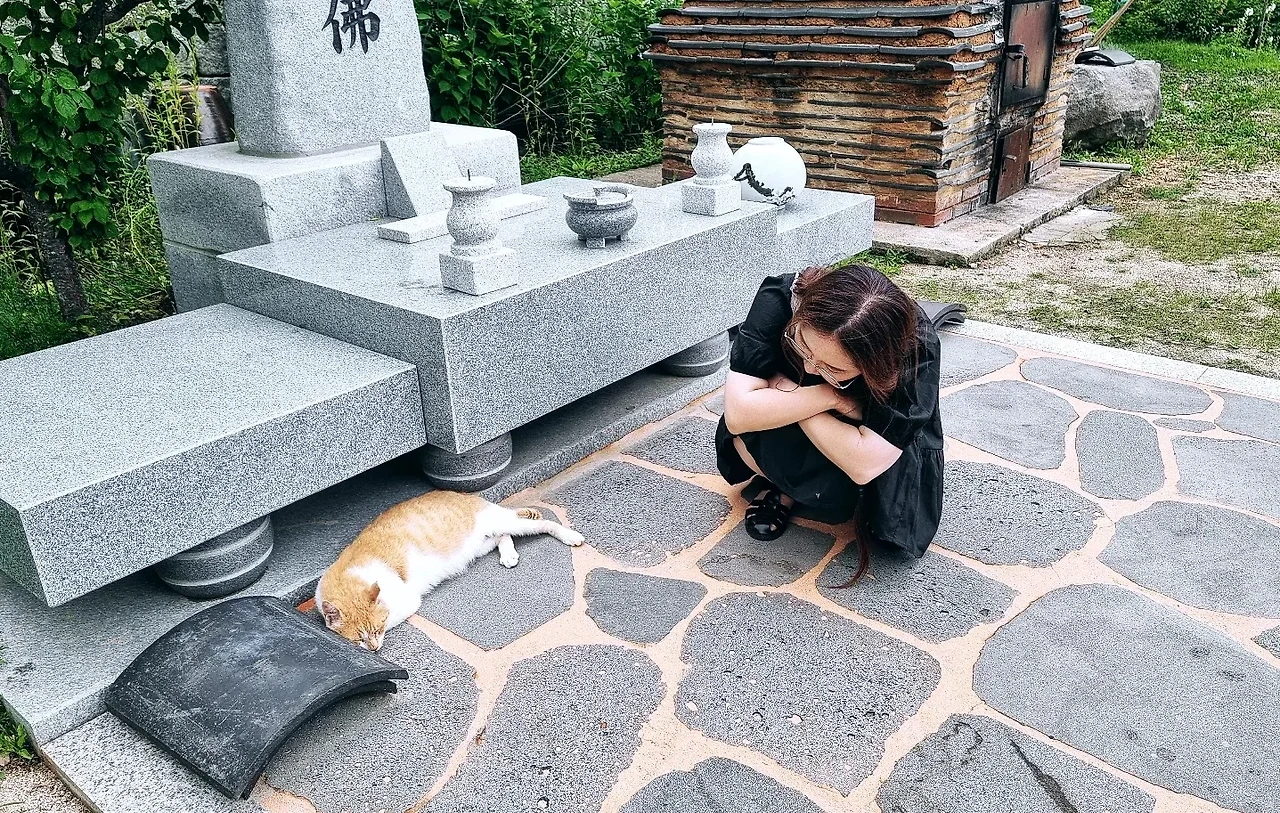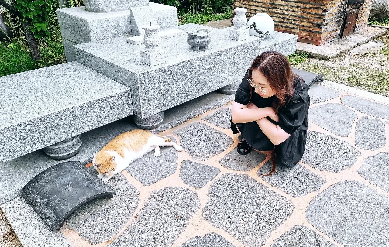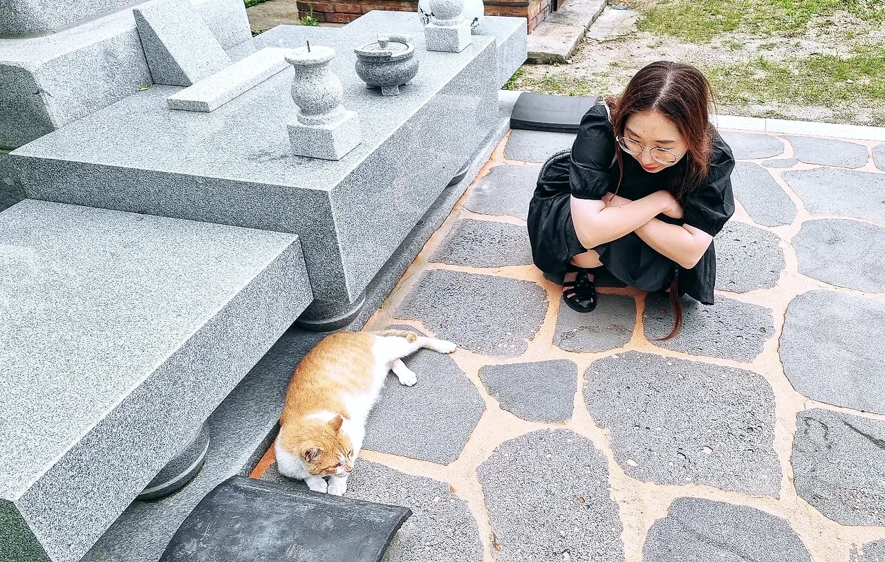 - 건봉사(乾鳳寺)에서 만난 노란 고양이, 노랑이. 금강산 줄기가 시작되는 건봉산 감로봉의 동남쪽 자락에 있어 흔히 '금강산 건봉사'라 부르는데 그 곳에서 만난 너는 특별했다. 고요한 사찰을 둘러 보다 바닥에 퍼질러져 눈을 감고 누워있는 너에게 아픈걸까, 쉬는걸까 거리를 두고 지켜보고 있었다. 그러다 문득 섬집 아기가 생각나서 너에게 불러주었는데 눈을 뜨는거였어. 너에게 가는 길에 불렀던 섬집 아기는 늘 내마음을 따뜻하고 포근하게 해. 너처럼 말이야. '잘 지내니? 노랑아' 너와 나의 만남을 따뜻한 시선으로 보고 있던 스님께서 알려주셨지. 몸통 색이 노래서 이름이 노랑이라고. 언젠가 다시 그곳으로 가면 널 보러가는 걸거야. 다시 만나는 그날까지 건강하렴.
