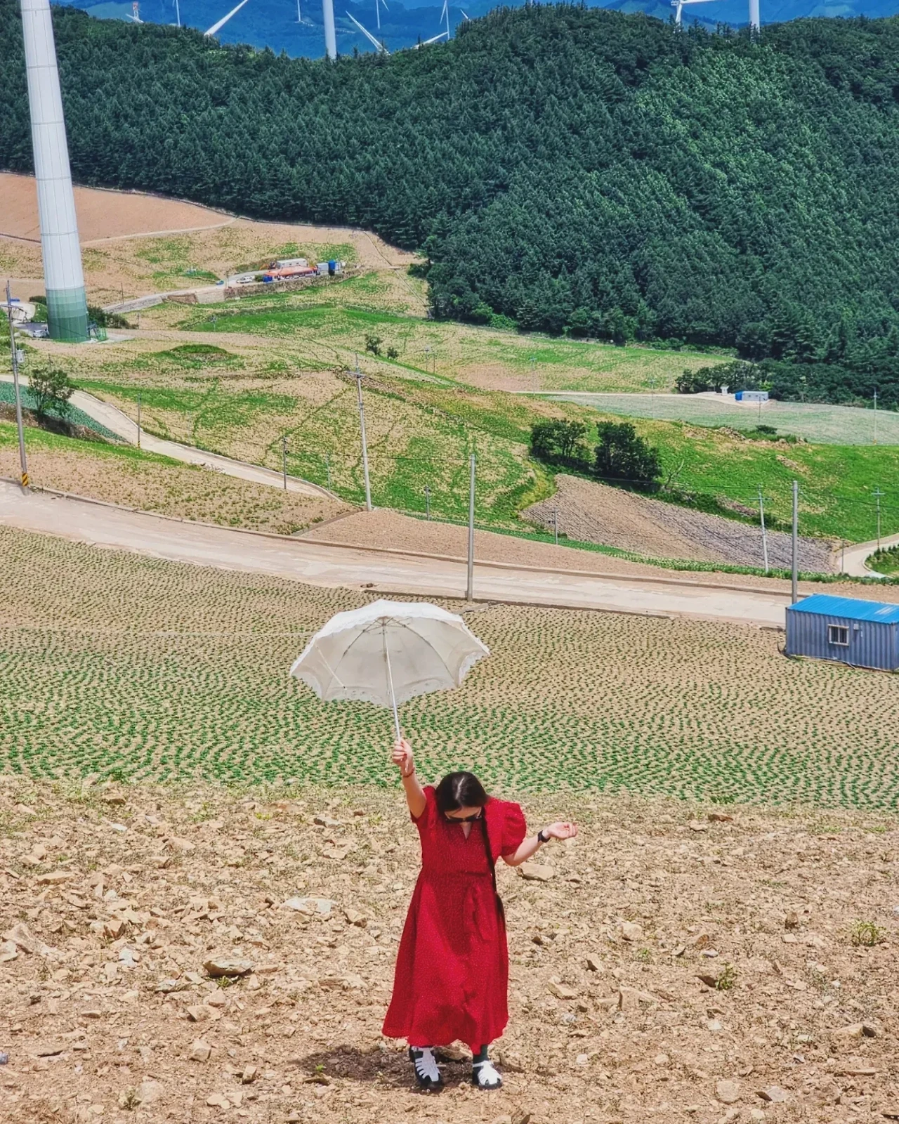 맑은 날씨에도 시원한 바람이 부는 태백의 바람의 언덕. 지금 쯤이면 싱싱하고 푸른 배추 수확이 한창일거다. 유월의 끝자락에서 만난 풍경과 지금의 풍경은 또 다르겠지. 몽환적인 그날의 시원한 매봉산을 떠올리면 오늘도 행복해진다.