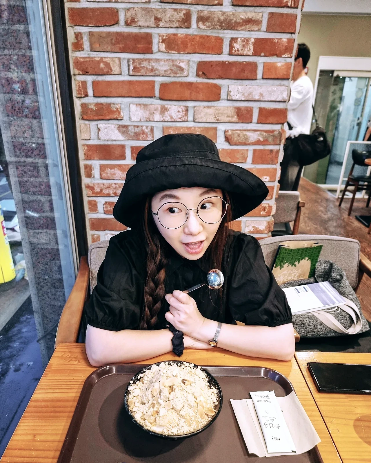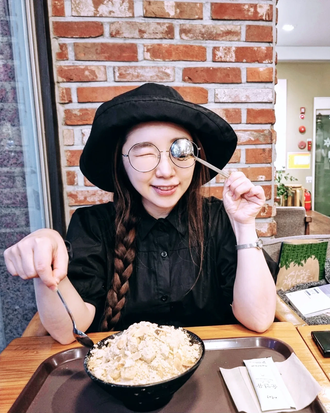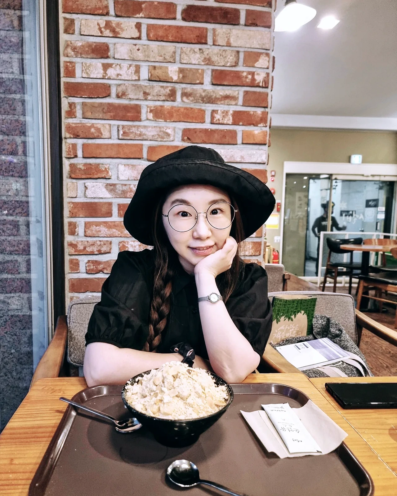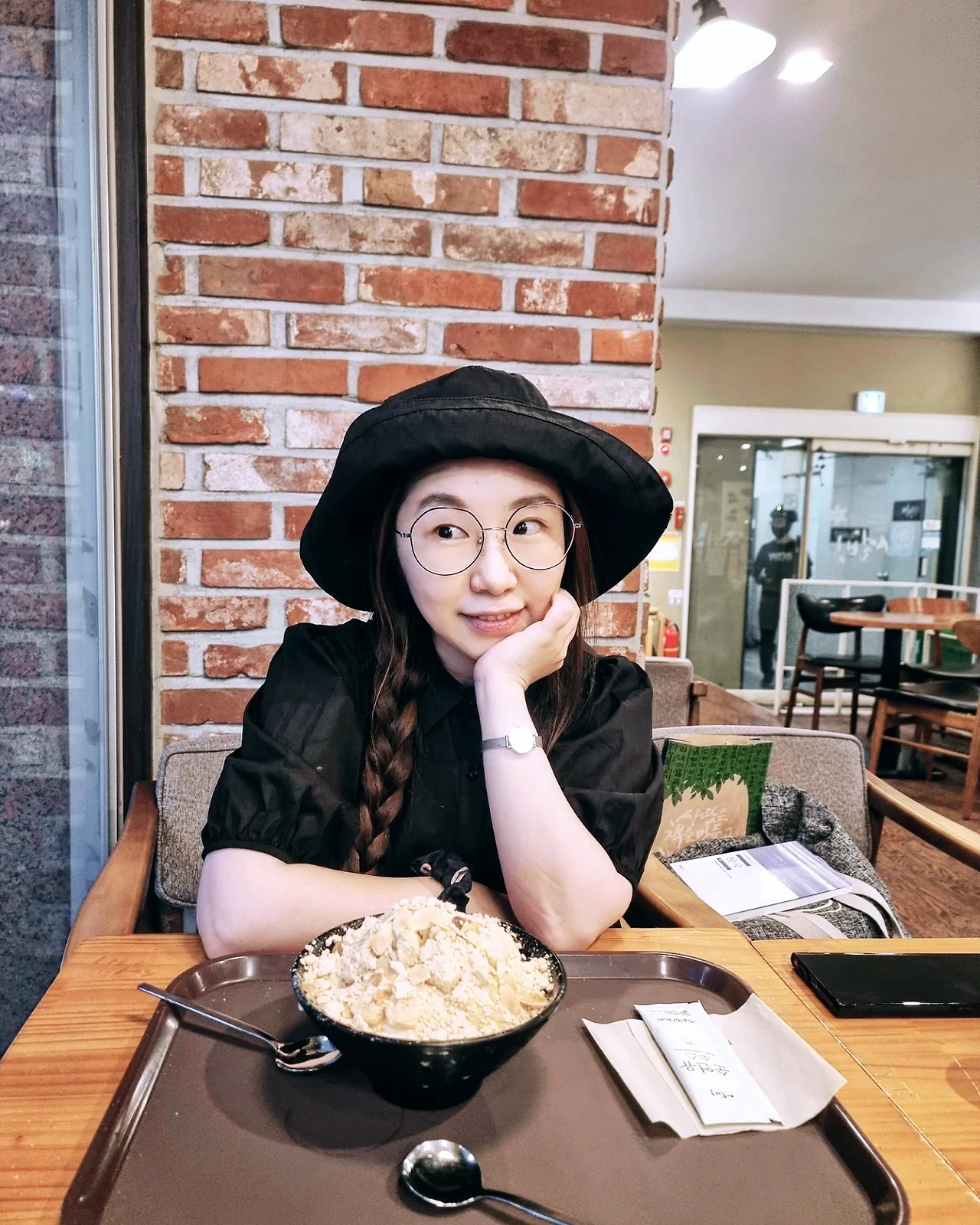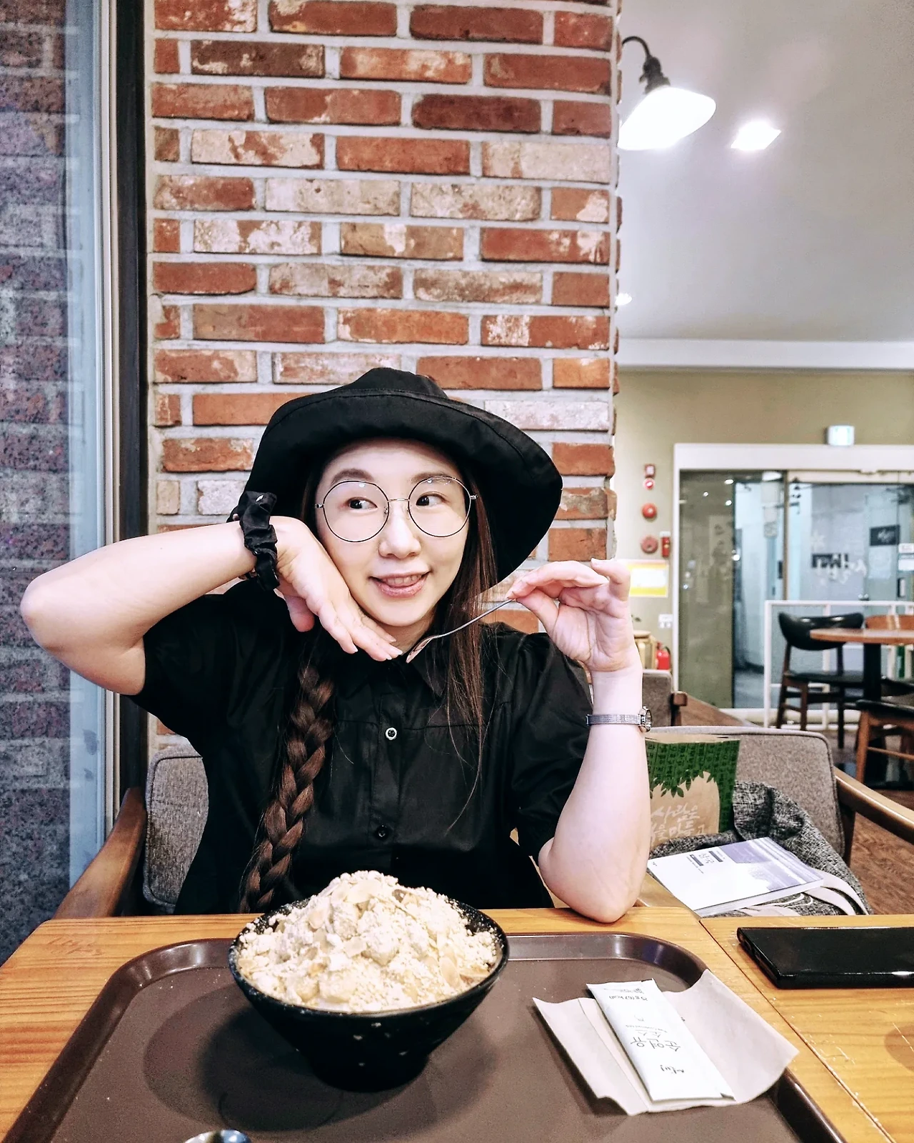 - 매번 과일이 첨가된 빙수를 먹다가 처음 맛보게 된 인절미 떡빙수. 기본적인 우유 빙수에 인절미 떡과 콩가루, 아몬드를 첨가해서 고소함을 주고 연유를 뿌여 단맛의 조화로움이 있다. 개인적으론 여름 날엔 망고나 블루베리, 메론이 첨가된 과일 빙수가 더 입맛에 맞는 듯 한데, 인절미 떡빙수는 먹으면 먹을수록 추억을 되새기게 하는 맛 인 것 같다. 아는 맛인데, 아련한 맛으로 표현하고 싶다. 엄마는 과일 빙수보다 팥빙수나 떡빙수 취향인데, 나는 과일이 들어간 빙수가 더 좋다. 이 또한 시대와 세대의 변화인건지, 빙수의 원조라고 할 수 있는 팥빙수는 이제 잘 찾아보기 힘들어서 약간은 아쉽기도 한데, 가을 날 부산에 가면 엄마가 좋아하는 보수동 책방골목의 팥빙수를 먹으러 가야지.
