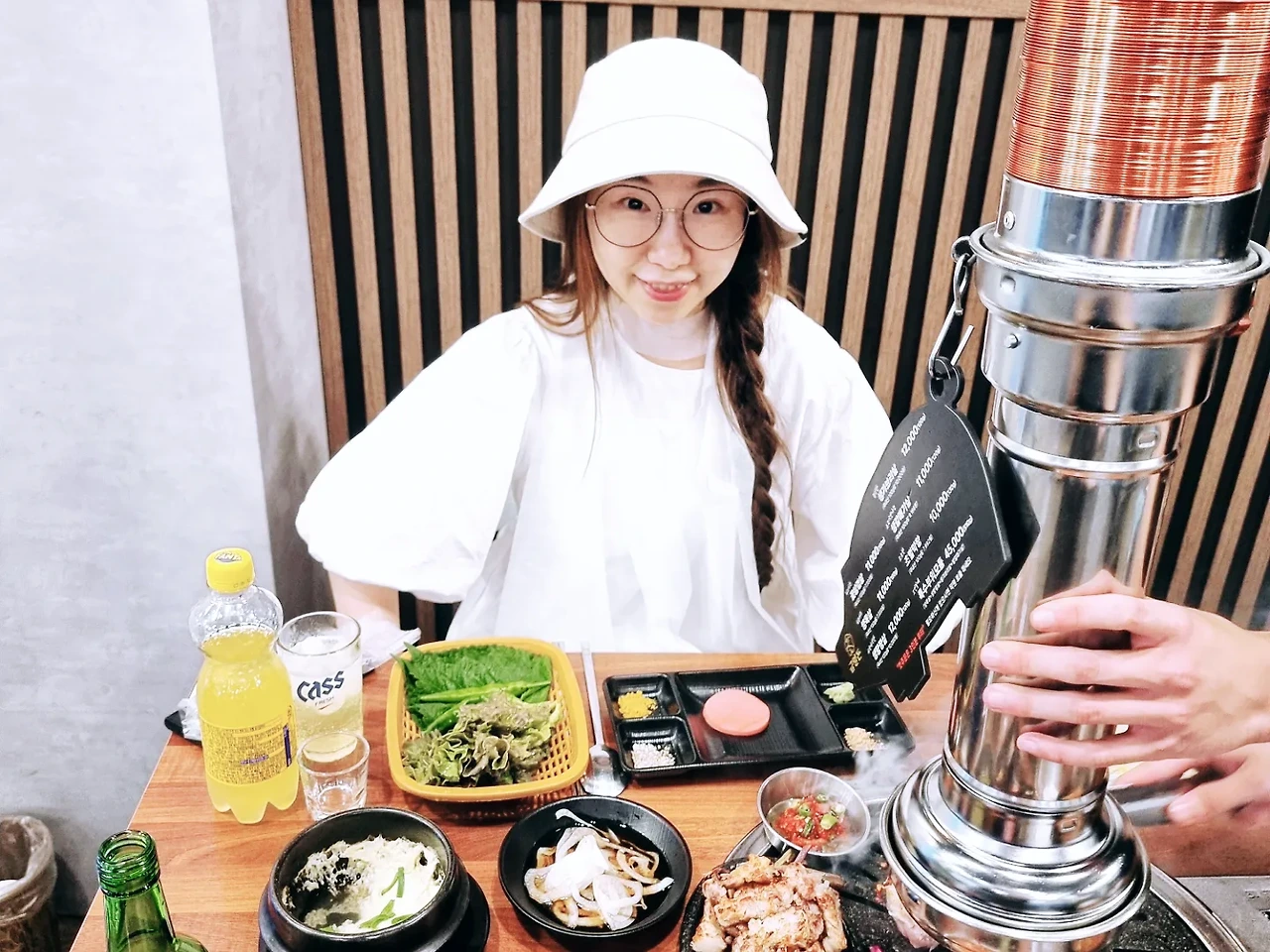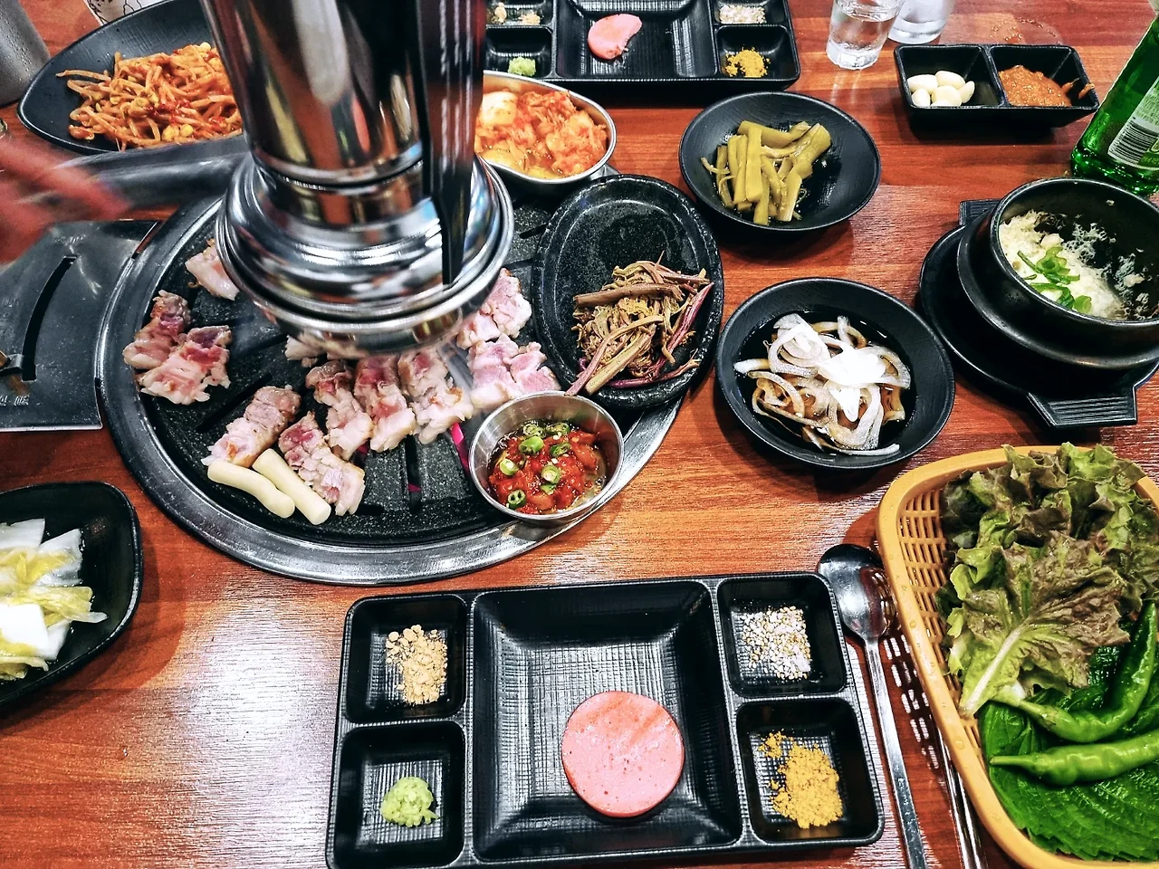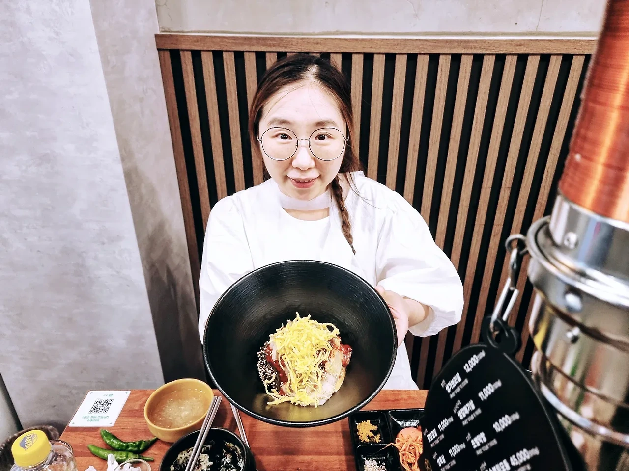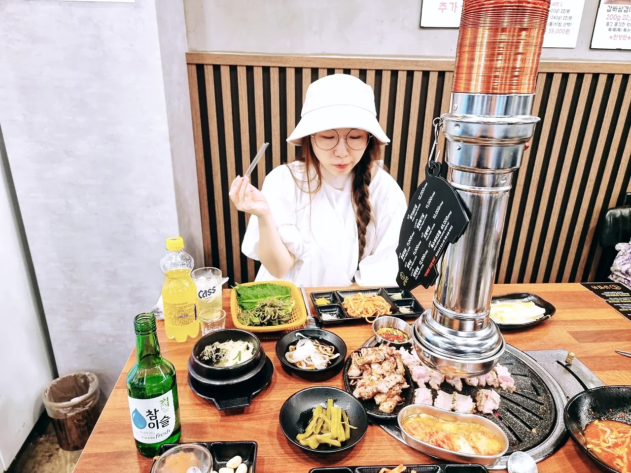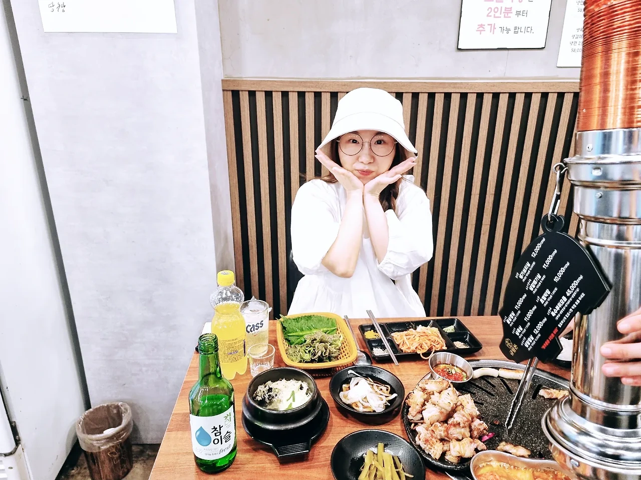 - 고기를 먹을 때는 어두운 색이나 편한 옷을 입는다. 그 날은 예상치 못한 상황이어서 몇년만에 흰색 옷을 입고 삼겹살을 먹었다. 화이트색 원피스에 기름이 튀면 노란 점이 되고, 양념이 튀기면 상상만 해도 찌릿한데, 그날은 앞치마로 무장하고 고기 만찬을 즐겼다. 요즘은 고기를 직접 구워 주는 곳이 곳곳에 생겨서 조금은 덜 부담을 갖고 갔는데, 이곳 또한 숨은 맛집이었다. 도톰한 돼지삼겹에 잘게 칼집이 된 통삼겹을 사장님이 구워주셨다. 구운 삼겹에 구운 고사리와 김치를 올리고, 거기다 와사비를 한점 해서 먹으면 생각만 해도 군침이 도는 맛_ 반찬 가지 수가 많은 편은 아니지만, 맛의 포인트는 있었다. 고기와 싸먹었던 젓갈은 이름이 가물한데, 기름진 삼겹살과 환상적인 궁합이었다. 더불어 여름에는 물냉면을 많이 먹지만, 그날은 왠일인지 비빔냉면이 당겨서 부캐는 비빔냉면으로 마무리 했는데 계란 지단과 매운 양념이 절묘하게 섞이고, 살얼음 냉육수가 최고의 조합을 이루어 맛있는 만찬이 완성되었던 날.