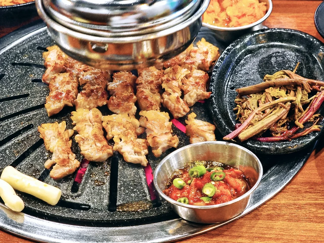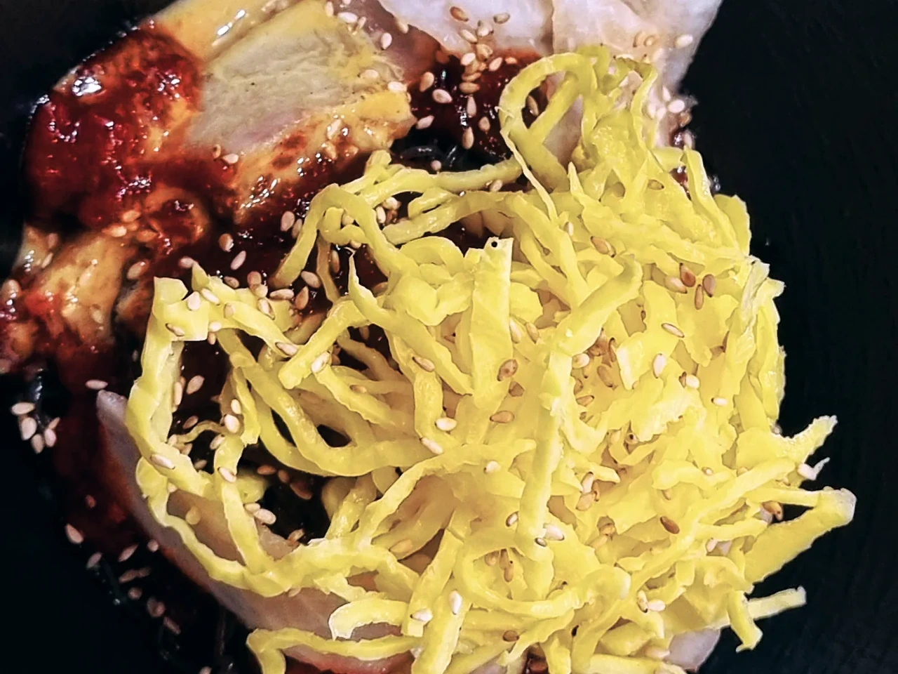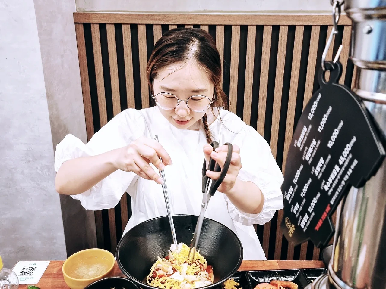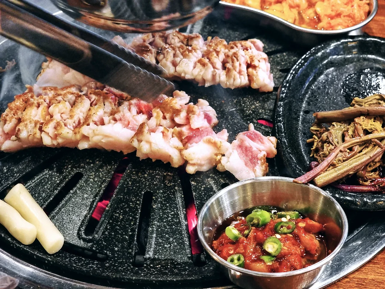 - 고기를 먹을 때는 어두운 색이나 편한 옷을 입는다. 그 날은 예상치 못한 상황이어서 몇년만에 흰색 옷을 입고 삼겹살을 먹었다. 화이트색 원피스에 기름이 튀면 노란 점이 되고, 양념이 튀기면 상상만 해도 찌릿한데, 그날은 앞치마로 무장하고 고기 만찬을 즐겼다. 요즘은 고기를 직접 구워 주는 곳이 곳곳에 생겨서 조금은 덜 부담을 갖고 갔는데, 이곳 또한 숨은 맛집이었다. 도톰한 돼지삼겹에 잘게 칼집이 된 통삼겹을 사장님이 구워주셨다. 구운 삼겹에 구운 고사리와 김치를 올리고, 거기다 와사비를 한점 해서 먹으면 생각만 해도 군침이 도는 맛_ 반찬 가지 수가 많은 편은 아니지만, 맛의 포인트는 있었다. 고기와 싸먹었던 젓갈은 이름이 가물한데, 기름진 삼겹살과 환상적인 궁합이었다. 더불어 여름에는 물냉면을 많이 먹지만, 그날은 왠일인지 비빔냉면이 당겨서 부캐는 비빔냉면으로 마무리 했는데 계란 지단과 매운 양념이 절묘하게 섞이고, 살얼음 냉육수가 최고의 조합을 이루어 맛있는 만찬이 완성되었던 날.