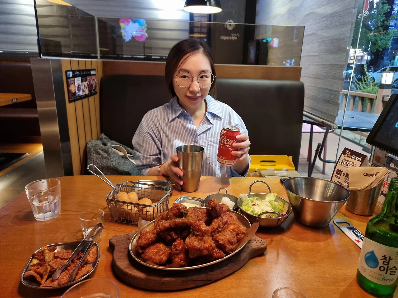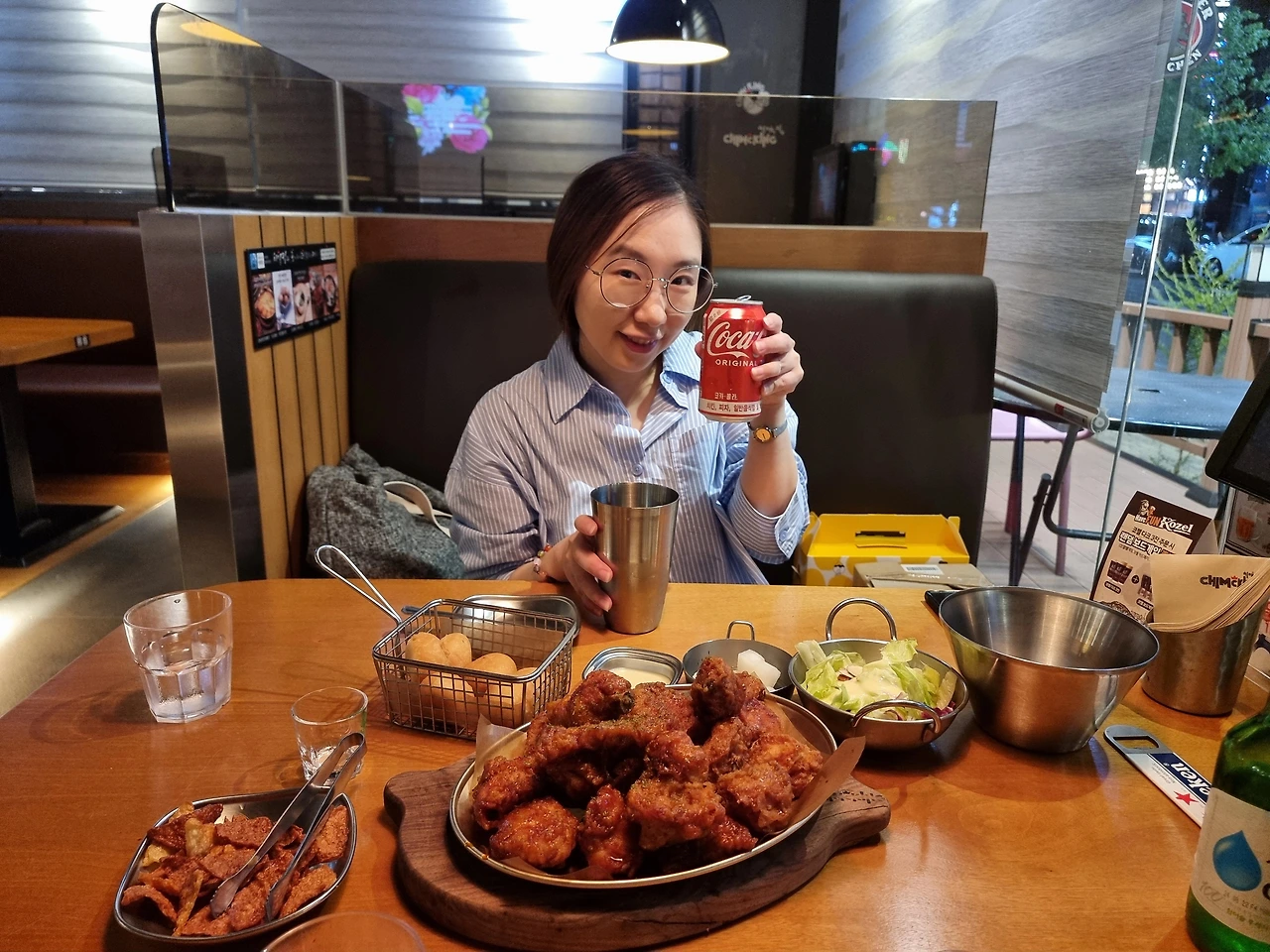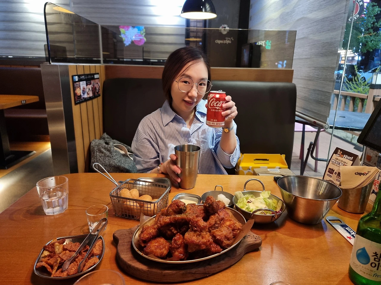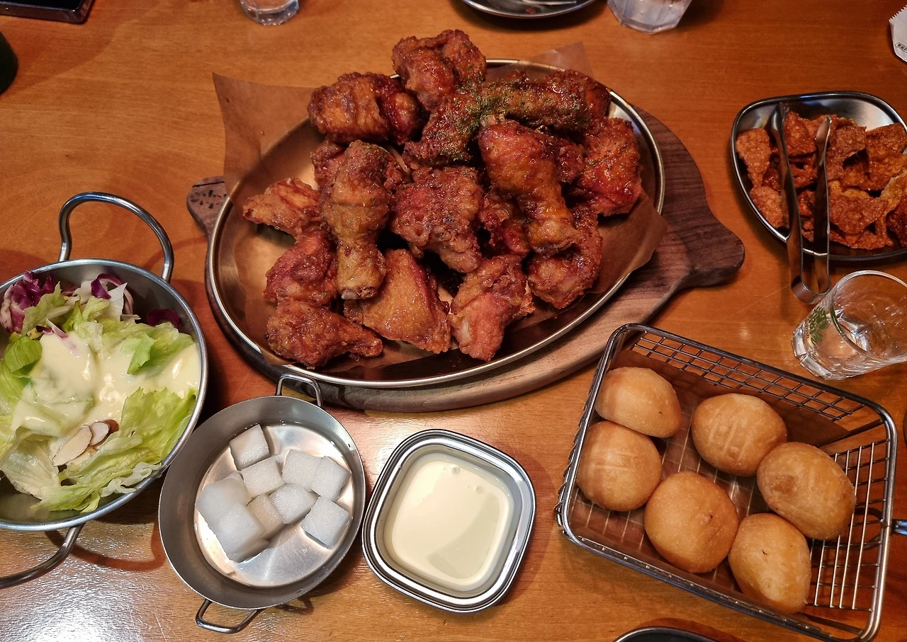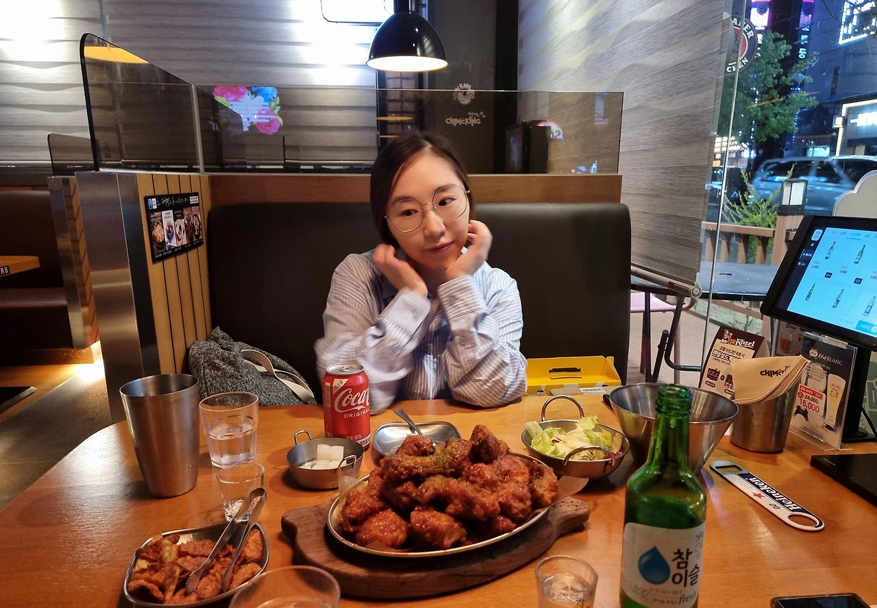 - 축구 경기를 볼 때 치킨과 맥주(혹은 코카콜라)는 국룰이다. 영화 극한 직업에서 치킨은 서민의 음식이라고 말했지만, 어느덧 국민의 음식으로 다달았다. 남녀노소 치킨을 싫어하는 사람은 찾기 어려울 정도로 닭을 튀기면 맛이 없을 수 없다는 생각으로 모든 치킨은 맛있다. 많은 치킨 프랜차이즈 브랜드 중에 딱 손꼽아서 맛있다고 하기란 쉽지않다. 배달로 먹는다면 되도록 빨리 먹어야 맛있고, 매장에서 먹는다해도 바로 먹어야 가장 맛있는 법. 그랬는데 요즘은 하나가 더 생겼다. 치킨을 먹을 때는 스포츠 경기를 보는 재미다. 특히 국민 스포츠 축구를 볼 때는 치킨이 빠질 수 없다. 경기의 승패를 떠나 먹고 마시고 응원하고 환호하는 행위가 치킨의 맛을 더욱 최고조로 만든다. 그래서인지 처음 방문한 치킨 매장이었지만, 치킨 양념 맛과 바삭함이 좋았다. 하루가 지나도 다시 생각나는 맛, 치맥킹 다음엔 후라이드를 먹어봐야겠다.