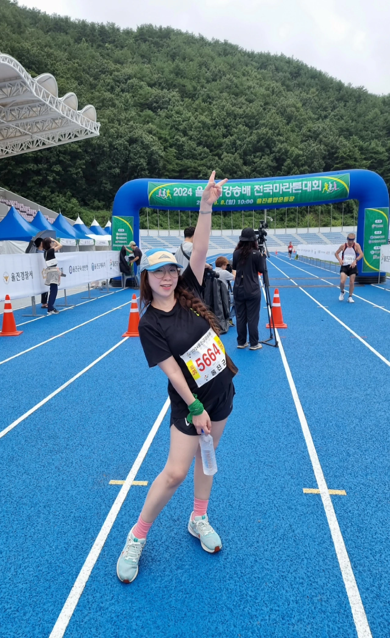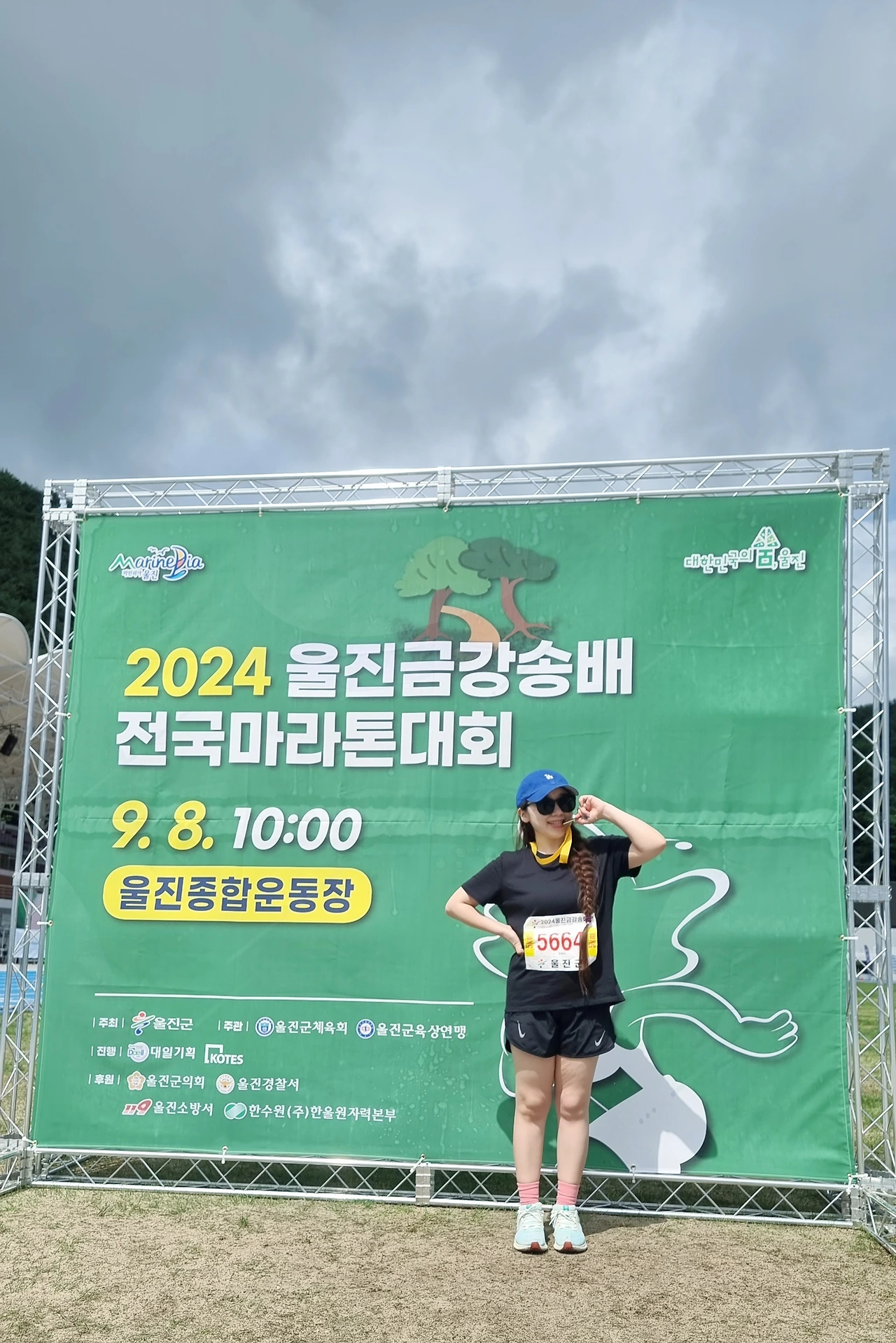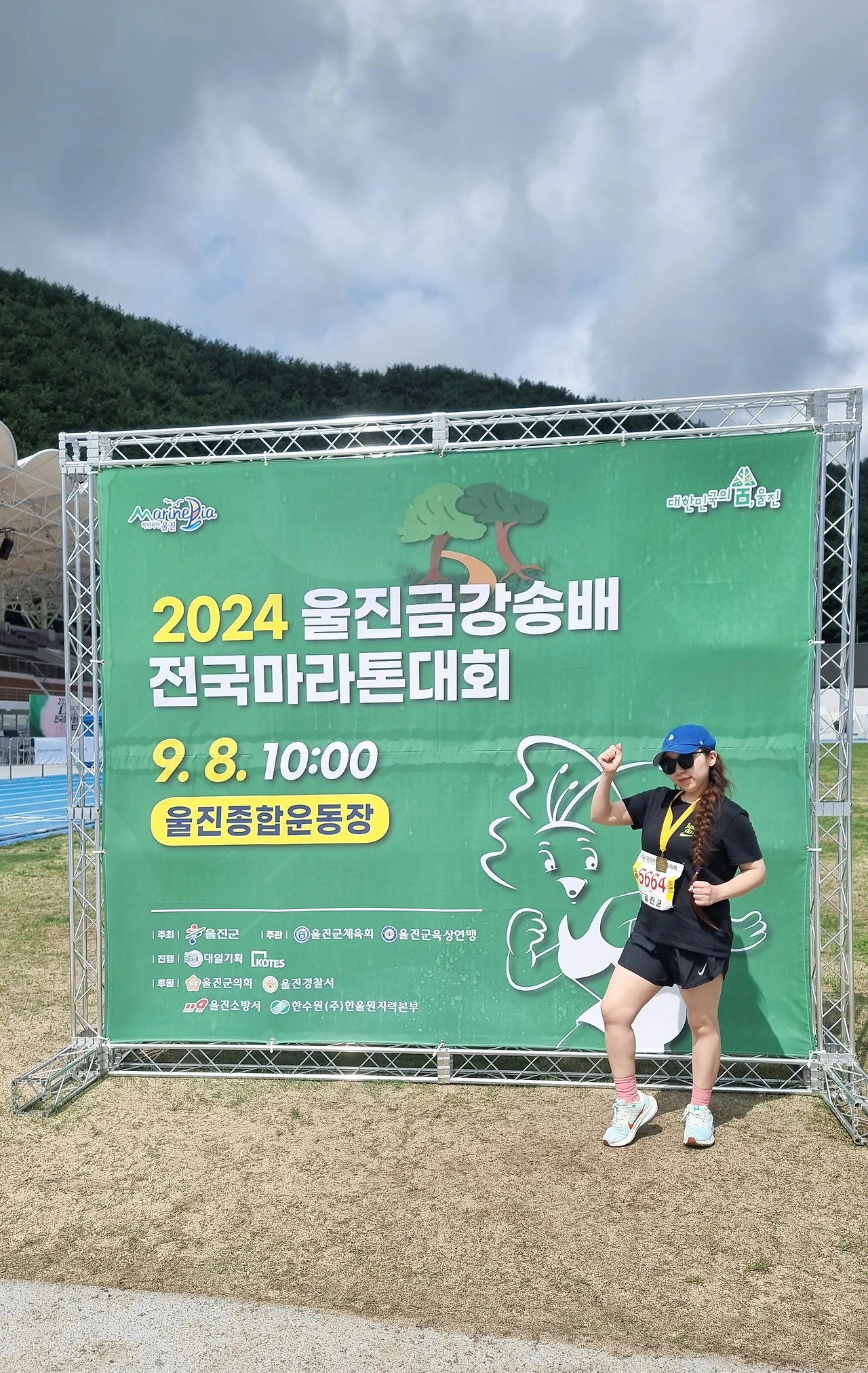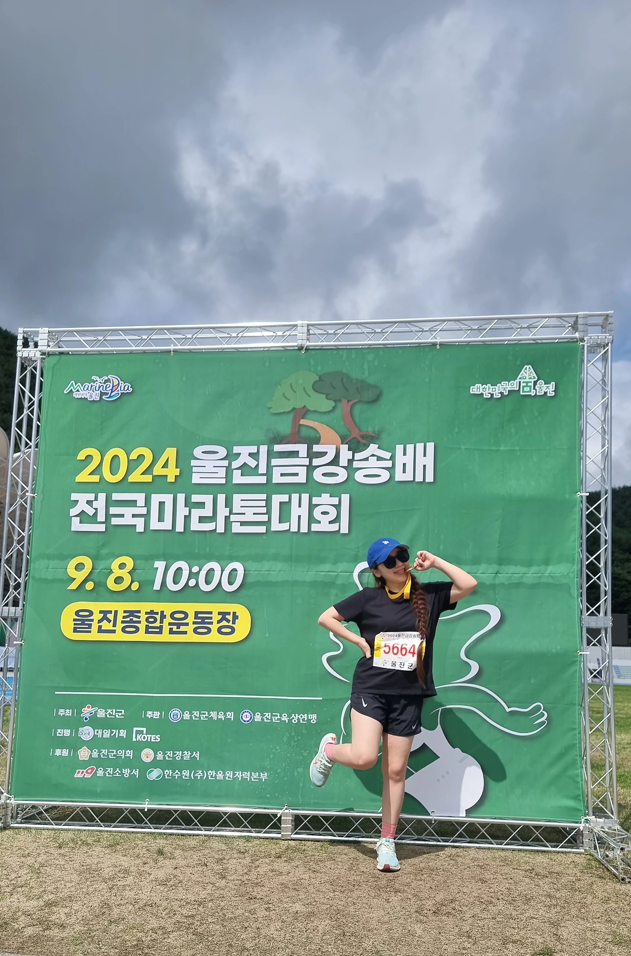 - 가을 휴가 3일차, 오늘 아침 6시에 기상해서 7시 40분쯤 울진종합운동장에 도착했다. 늘 약속 시간보다 일찍 가는 편인데 갑자기 비가 내렸다. 폭우가 쏟아질까 걱정했지만 마라톤을 시작할 무렵에는 비가 그쳤다. 달리는 순간만큼은 잡 생각을 비우고 단순하게 달린다. 'Just do it, 그냥해.' 나이키의 문구를 좋아한다. 달리기를 하면서 일상의 스트레스를 해소하고, 건강한 마음을 배운다. 즐겁고, 기쁘고, 혹은 뭉클하고, 도전하는 매순간의 경험들이 행복이 된다. 9월 22일은 공주백제마라톤대회 10km에 도전한다. 나날이 꾸준히 달리는 사람이 되자.