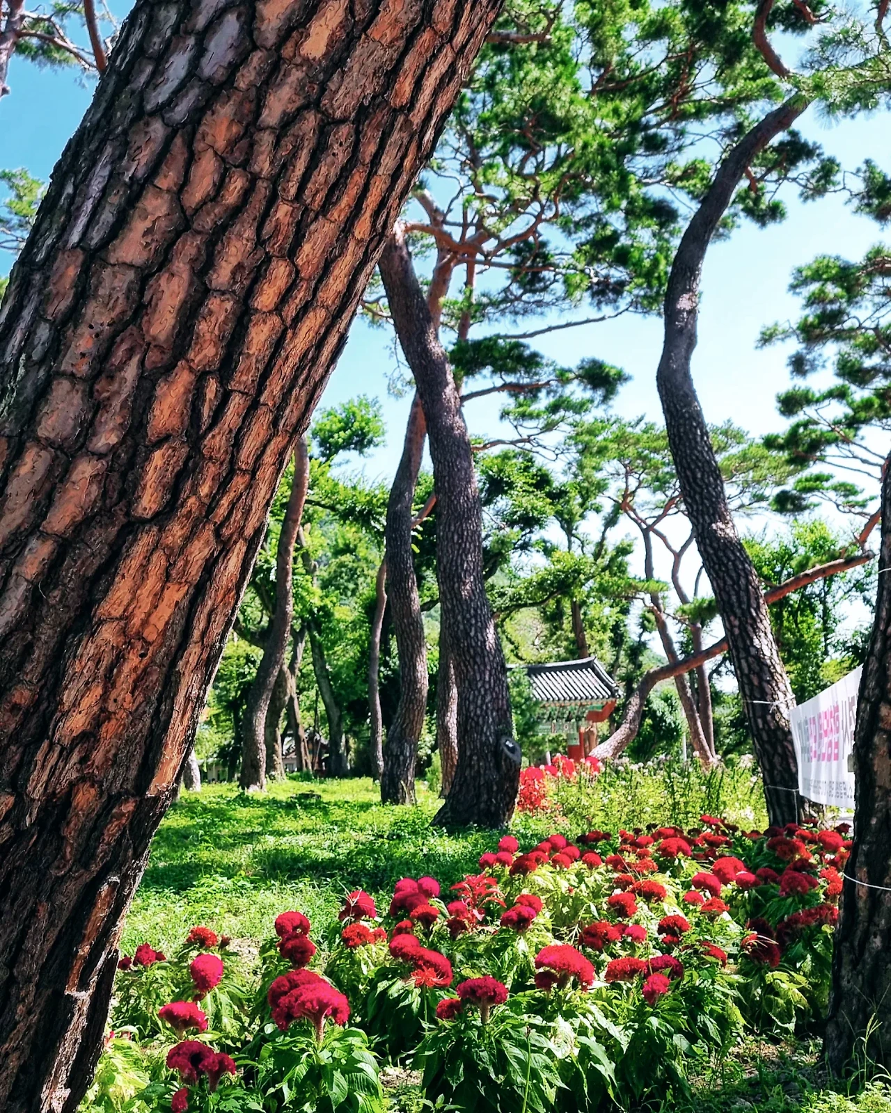 - 여름과 가을 사이에서 무덥다가도 시원하고, 시원하다가도 무더움에 지쳐 있었던 찰나 시원한 바람에 종이 울린다. 혹은 울렸다가 멈춘다. 보경사 5층 석탑은 웅장한 느낌보다 아늑한 느낌이 강했다. 멈춰버린 제야의 종은 언젠가 다시 새해가 시작되면 힘차게 울리겠지. 붉은 맨드라미 꽃이 소나무 숲속에서 아름다움을 뽐내고 있었다. 그 이후 대웅전에서 부처님께 절을 올리고 고요한 소나무 숲길을 걸었지. 참 평화로웠던 어제의 순간.