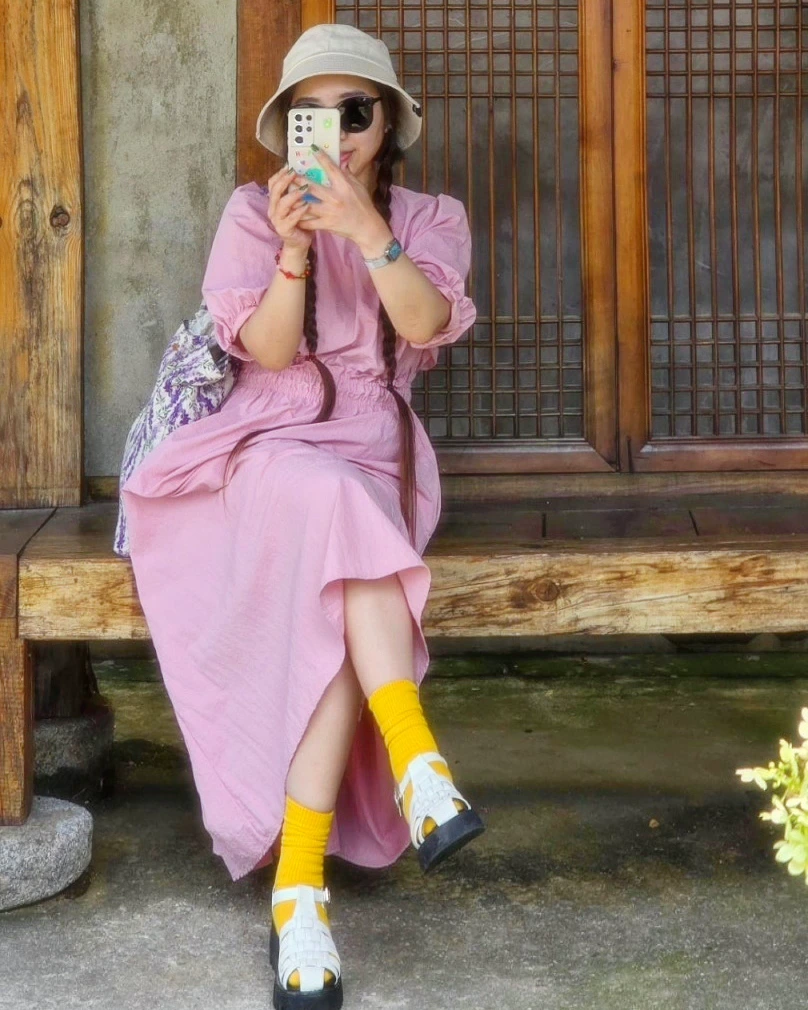 그녀가 사진을 담을 때