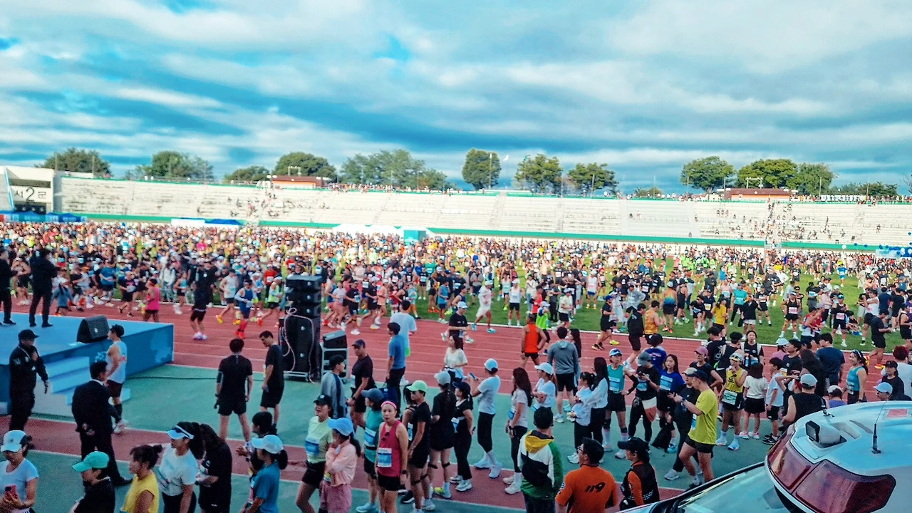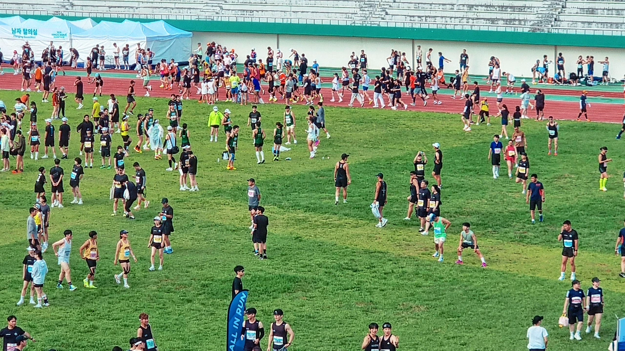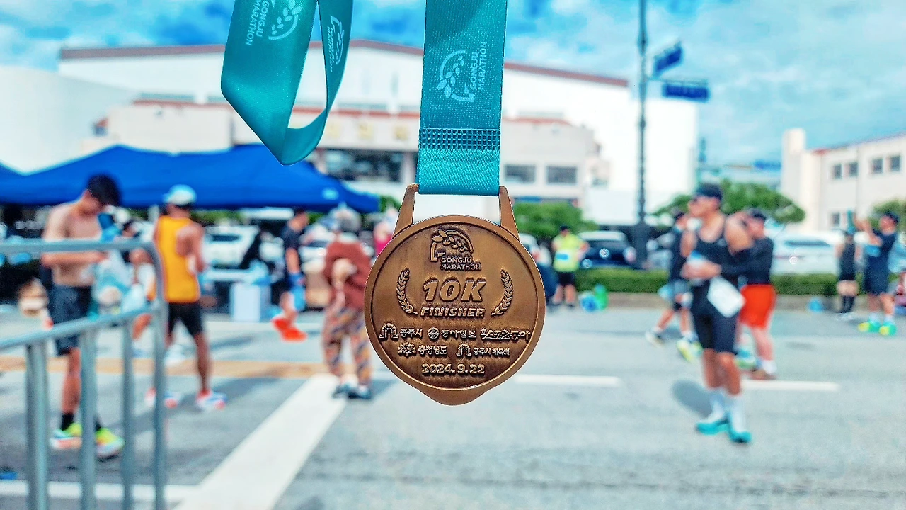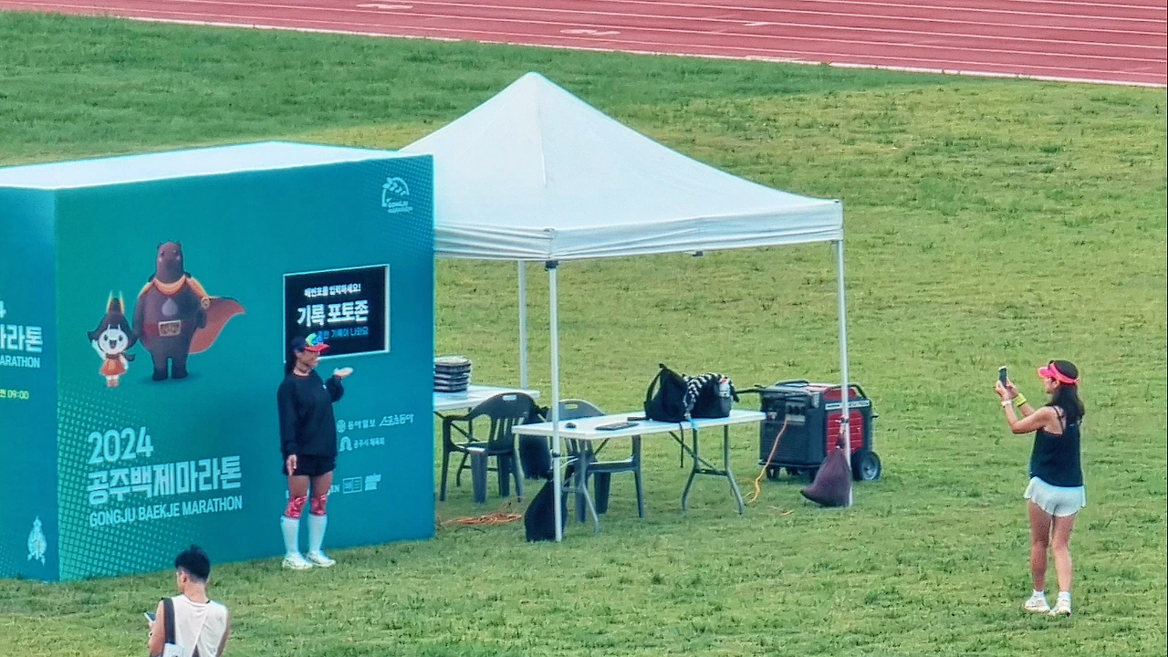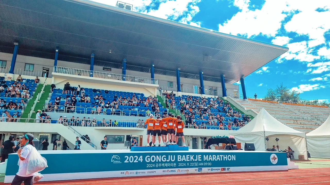 - 이른 아침, 텅빈 시민운동장을 바라볼 때 나는 어느 정도 예상은 했지만 생각보다 더 많은 사람들이 마라톤에 출전해서 놀랐고, 그 중에는 어린 아이와 고령이신 어른들도 많았다. 운동장 잔디에서 워밍업 운동을 하고, 함께하는 러닝크루들과 으샤으샤 하는 모습이 참 아름답다. 어느 마라톤이든 포토존은 중앙에 위치하고 있는데, 런린이들에게 가장 인기가 맗다. 달리는 사람, 달리는 사람의 가족, 연인, 친구들은 런린이들을 응원하기위해 최선을 다한다. 달리기 시작 전과 달리는 시점, 결승점에 골인하는 순간의 뿌듯함과 깨달음은 삶의 자신감 복돋아 주었다. 그리고 마침내 생애 첫 10km 마라톤을 공주에서 완주했다.