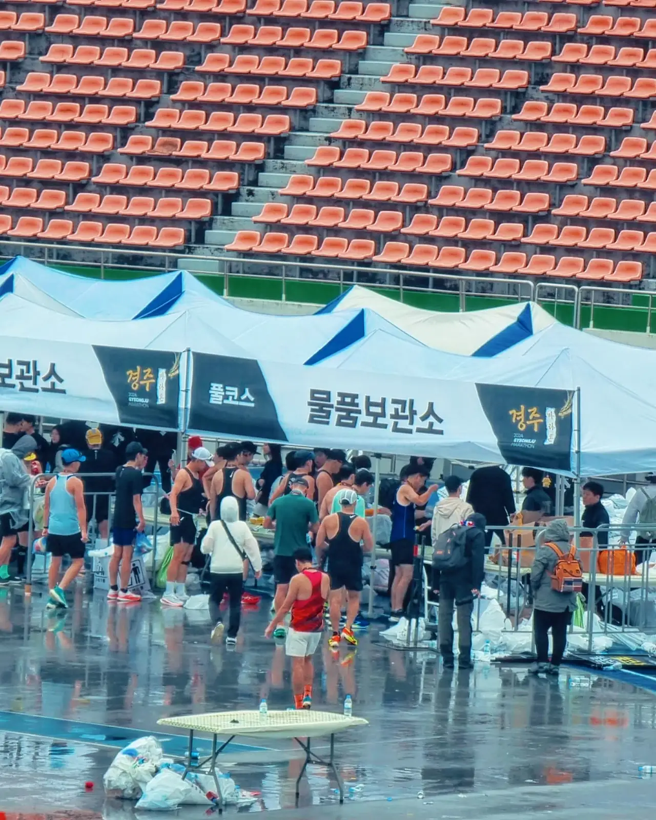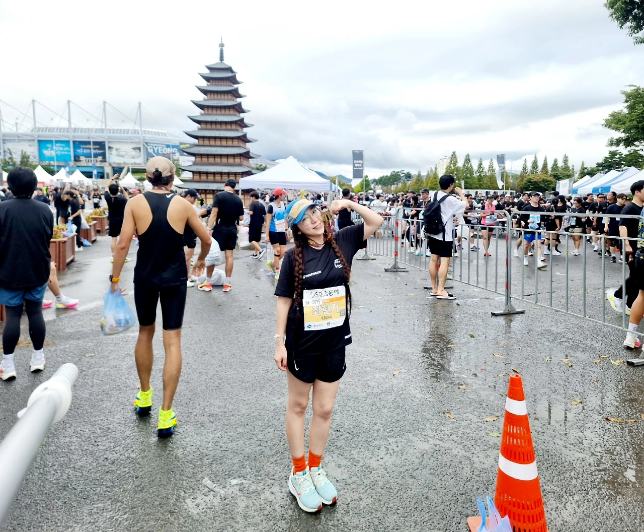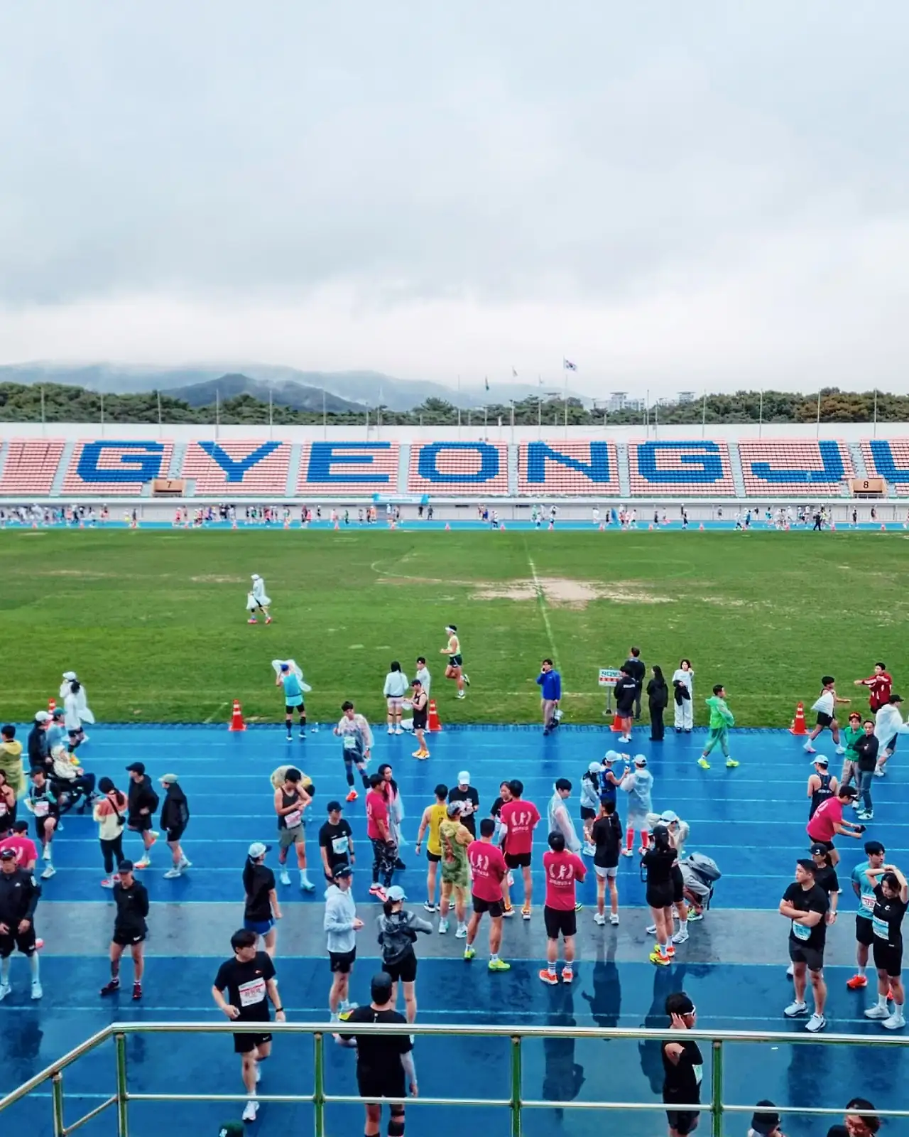 - 이른 새벽 6시, 경주시민운동장에 도착했다. 오늘은 경주국제마라톤 대회 날, 작년에 이어서 또 다시 경주에서 달리게 되었다. 작년보다 더욱 많은 인파들이 경주로 향했다. 그래서인지 달리기 외의 발견되는 사람들의 마찰도 있었고, 그 속에서 서로 배려하고 이해하려고 하는 모습도 보았다. 마라톤 대회를 참여하다보면 공동체 의식, 양심, 질서, 배려의 중요성을, 시민의식의 필요성을 느끼게 되었다. 한 사람 한 사람의 열정과 노력이 모여 하나의 공동체를 만들게 된다. 각기 다른 목표와 이유로 모인 사람들이 하나의 길을 달린다는 것은 그 순간만큼은 친구가 된다는 것이기도 하다. 새로운 친구를 만나고, 좋아하는 것을 함께 하는 것_ 나날이 달리기와 마라톤의 즐거움을 알게 되어 기쁘다. 오늘 천년의 도시, 경주는 달리는 동안 폭우가 쏟아졌지만, 누구하나 포기하는 이가 없었다. 비를 맞으면서도 끝까지 최선을 다해 달렸다. 5km을 뛰는 나 또한 그랬고, 10km, 하프코스, 풀코스에 도전하는 모든 이들이 포기하지 않고 달렸다. 스스로와의 싸움이자, 약속이니까 우리는 오늘도 최선을 다해 달렸고, 달릴 것이다. #경주국제마라톤