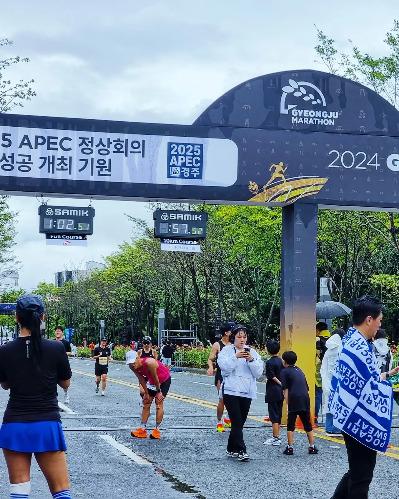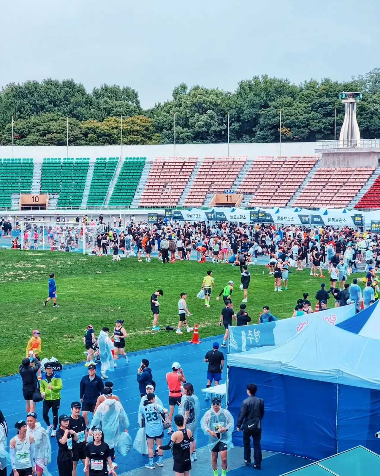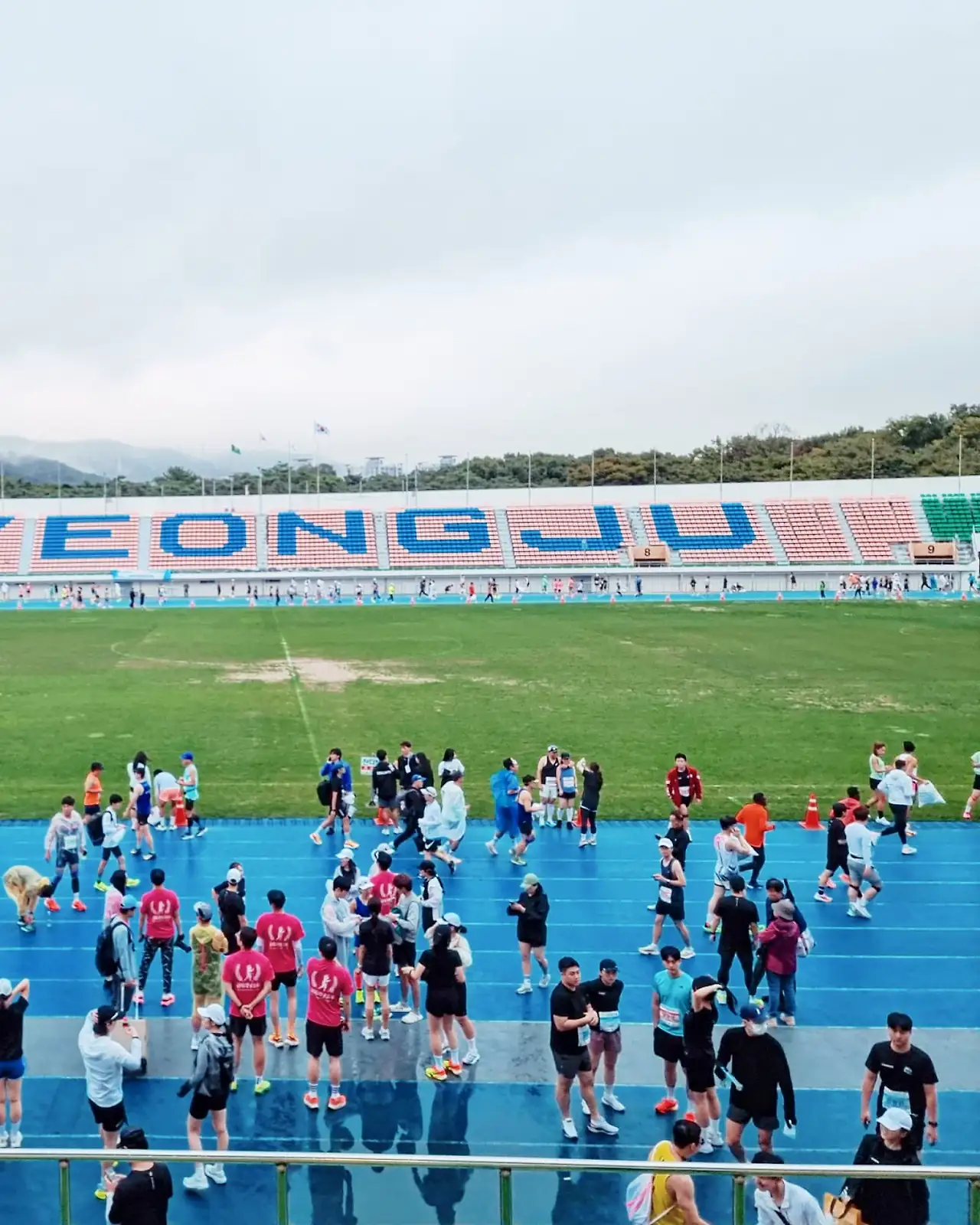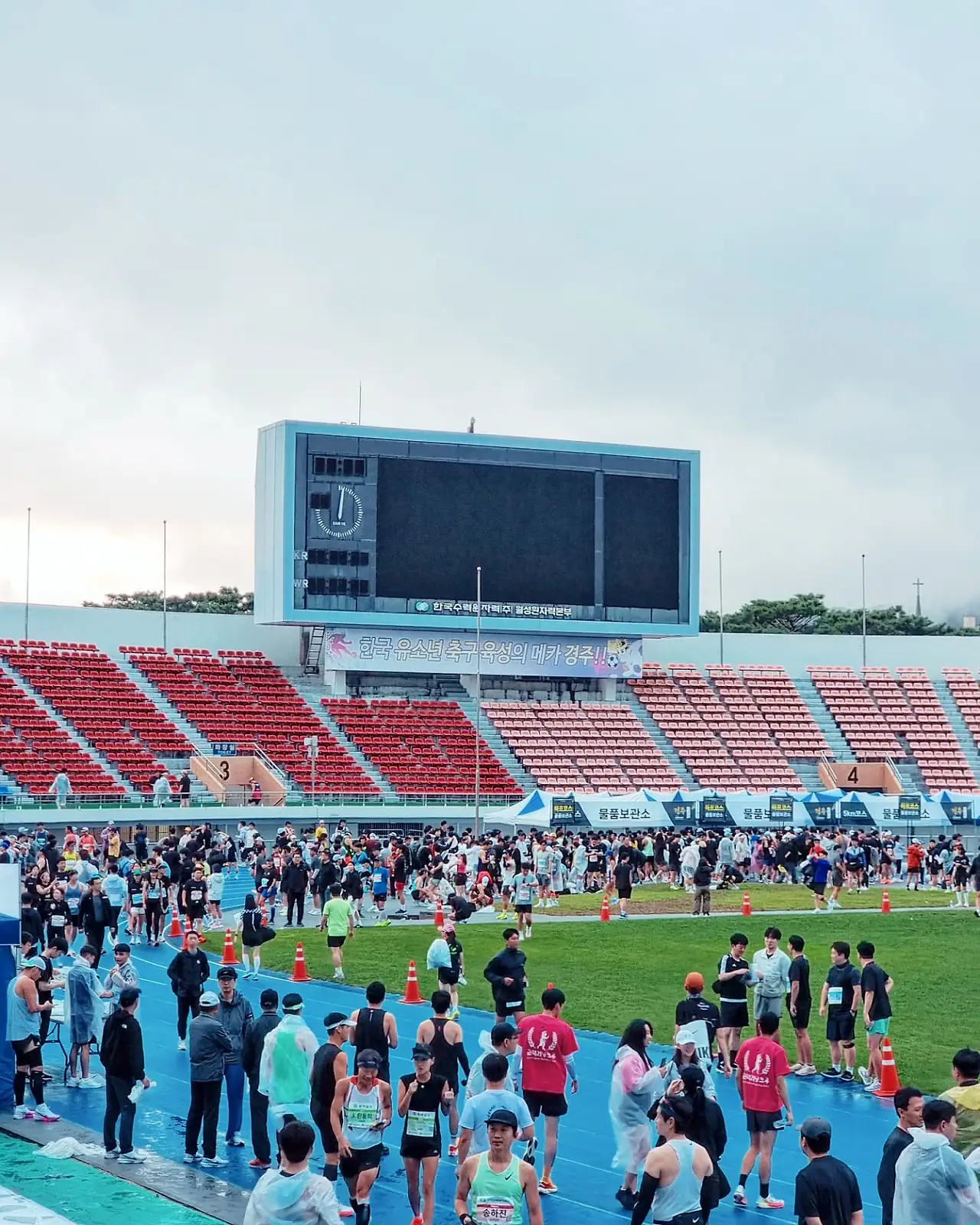 - 이른 새벽 6시, 경주시민운동장에 도착했다. 오늘은 경주국제마라톤 대회 날, 작년에 이어서 또 다시 경주에서 달리게 되었다. 작년보다 더욱 많은 인파들이 경주로 향했다. 그래서인지 달리기 외의 발견되는 사람들의 마찰도 있었고, 그 속에서 서로 배려하고 이해하려고 하는 모습도 보았다. 마라톤 대회를 참여하다보면 공동체 의식, 양심, 질서, 배려의 중요성을, 시민의식의 필요성을 느끼게 되었다. 한 사람 한 사람의 열정과 노력이 모여 하나의 공동체를 만들게 된다. 각기 다른 목표와 이유로 모인 사람들이 하나의 길을 달린다는 것은 그 순간만큼은 친구가 된다는 것이기도 하다. 새로운 친구를 만나고, 좋아하는 것을 함께 하는 것_ 나날이 달리기와 마라톤의 즐거움을 알게 되어 기쁘다. 오늘 천년의 도시, 경주는 달리는 동안 폭우가 쏟아졌지만, 누구하나 포기하는 이가 없었다. 비를 맞으면서도 끝까지 최선을 다해 달렸다. 5km을 뛰는 나 또한 그랬고, 10km, 하프코스, 풀코스에 도전하는 모든 이들이 포기하지 않고 달렸다. 스스로와의 싸움이자, 약속이니까 우리는 오늘도 최선을 다해 달렸고, 달릴 것이다. #경주국제마라톤