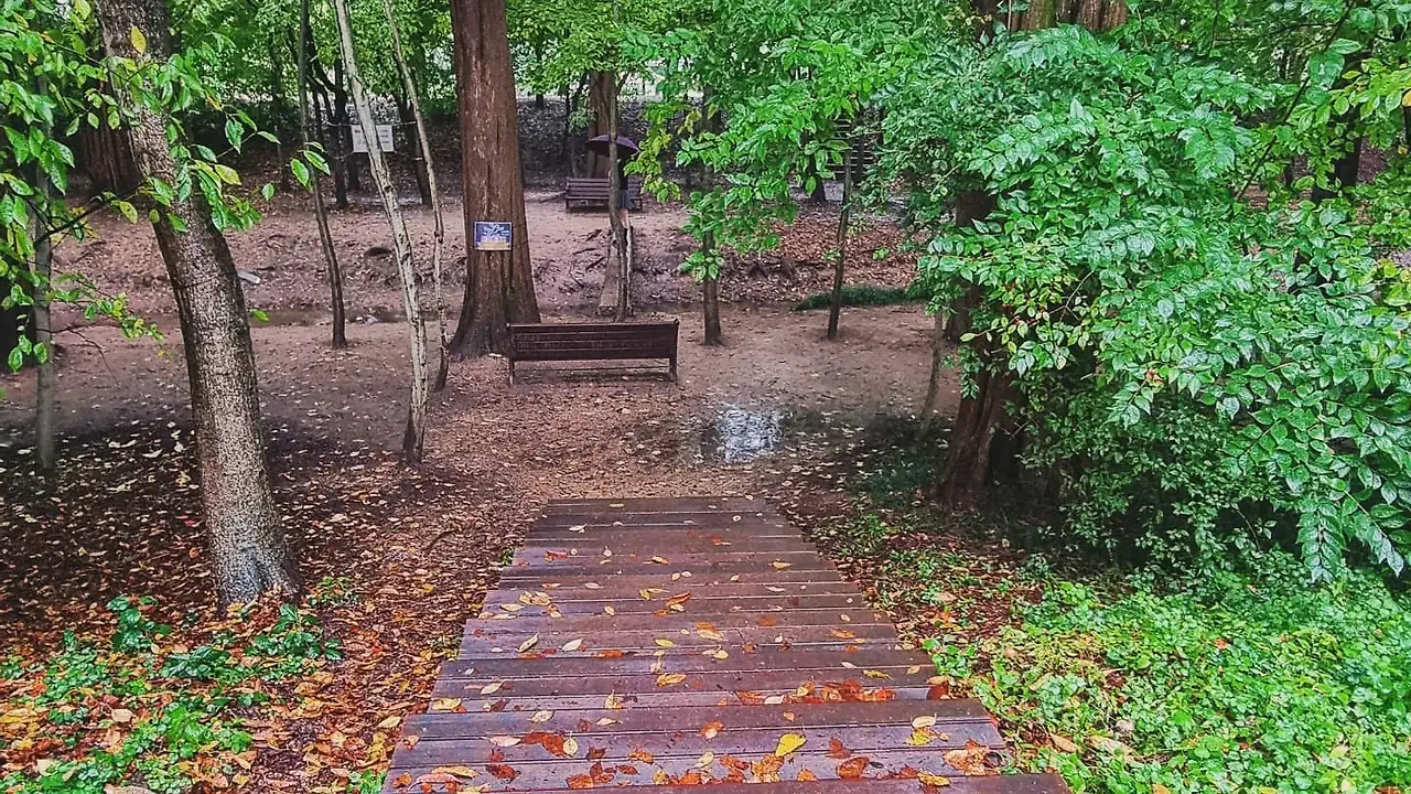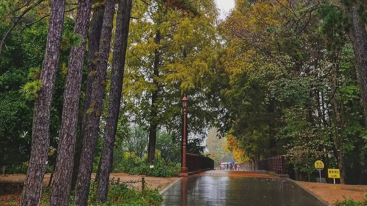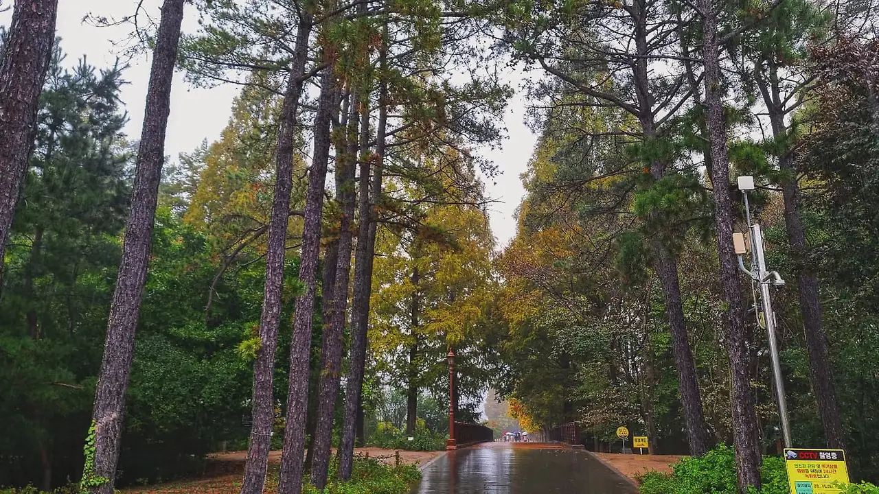 - 가을비가 내리던 날에 고요한 숲속으로 걸어 들어간다. 푸른 메타세콰이어 길을 걷다가 사람이 없는 나무 다리를 건너 또다른 미지의 세계로 걸어간다. 그날의 가을 비를 만나 푸르른 숲속으로 나는 행복해진다.