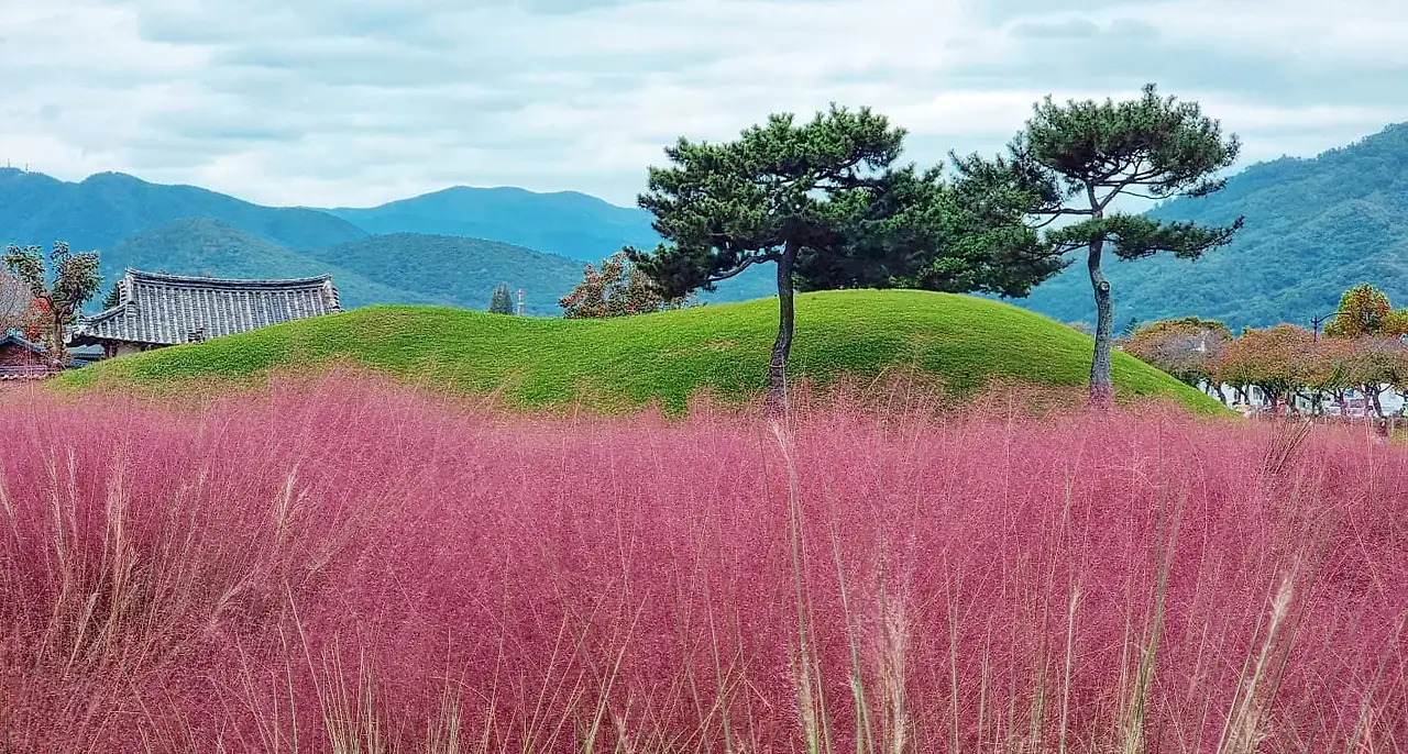 경주 첨성대 옆에 핑크뮬리
