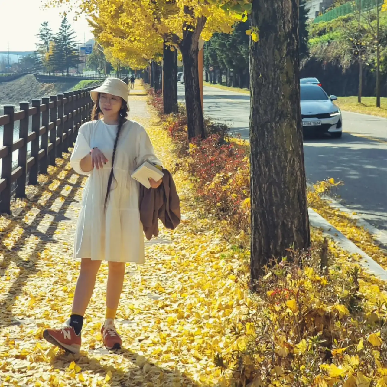 노란 은행나무 길을 원없이 걷고 또 걸었어. 십일월의 햇살과 하늘과 바람과 가을의 색을 잊고 싶지 않아서, 하나씩 꺼내어 보니 이리도 아름다울수가 없었다. 반짝반짝 빛나는 가을 길을 걸으며 내 마음 속 가을 낭만을 그려낸다. 가을 바람에 은행나무 잎이 우수수 떨어진다. 마지막 잎새를 떠올리며 책 속에 은행나무 잎을 꽂아둔다. 그렇게 시간을 두고 기다리면 예쁜 은행나무 잎이 내 책속의 책갈피가 될거야. 참 예쁜 가을이 가고 있어.