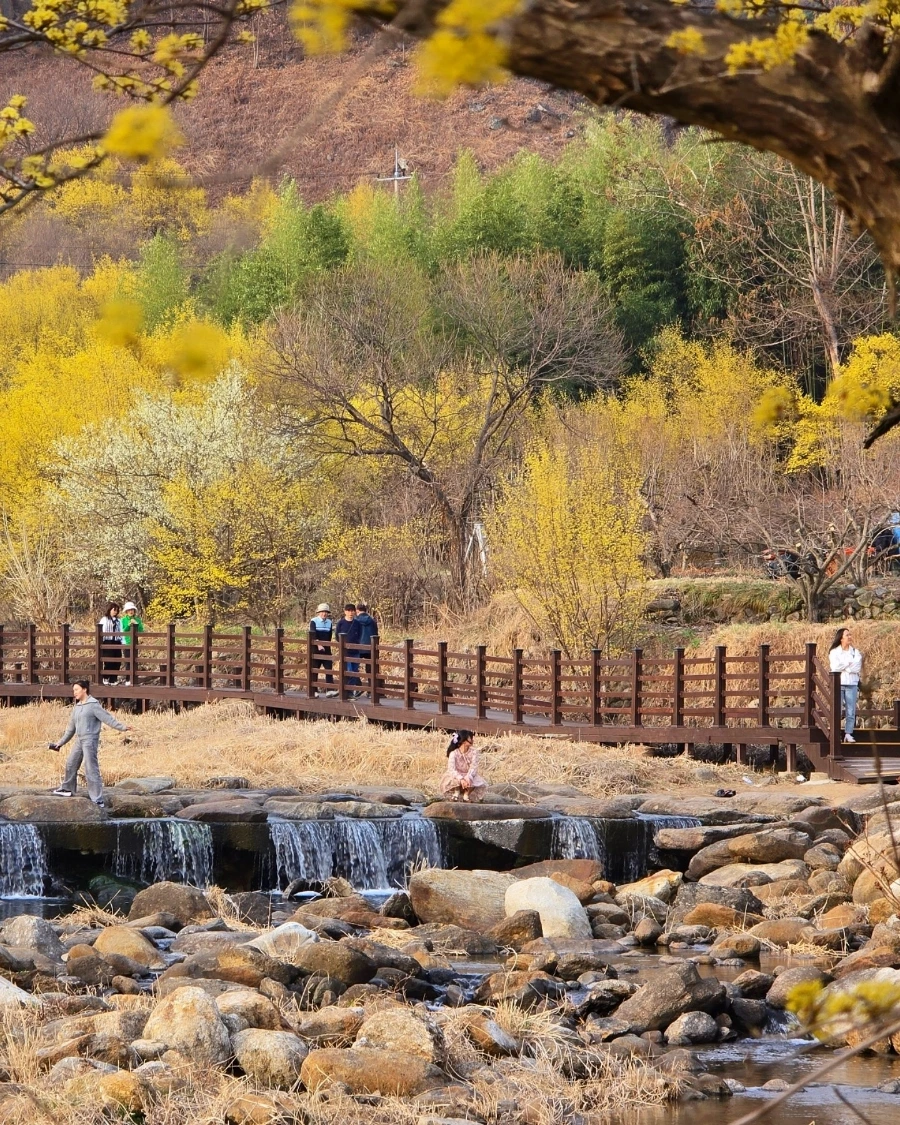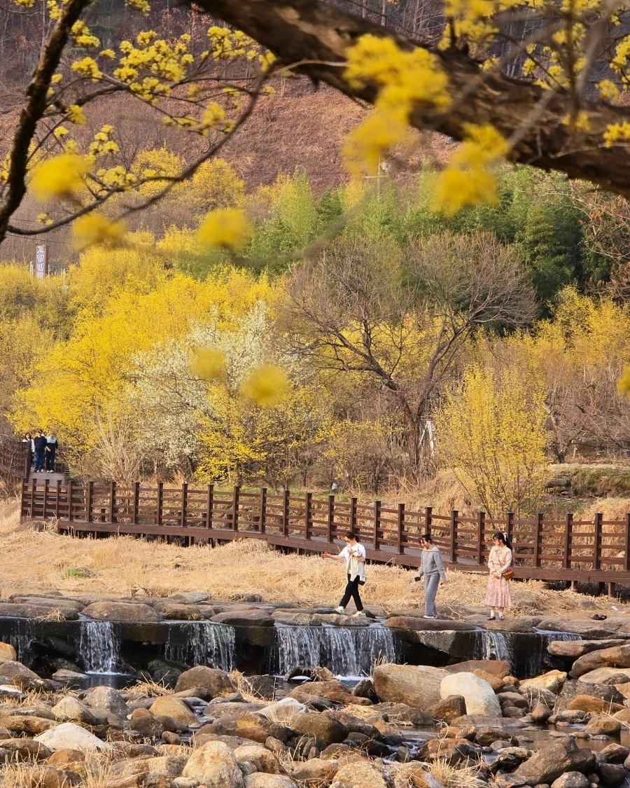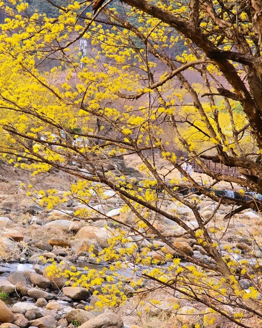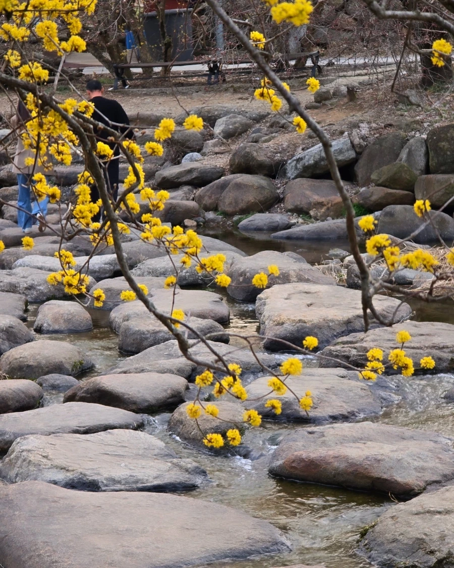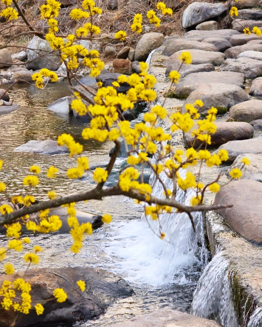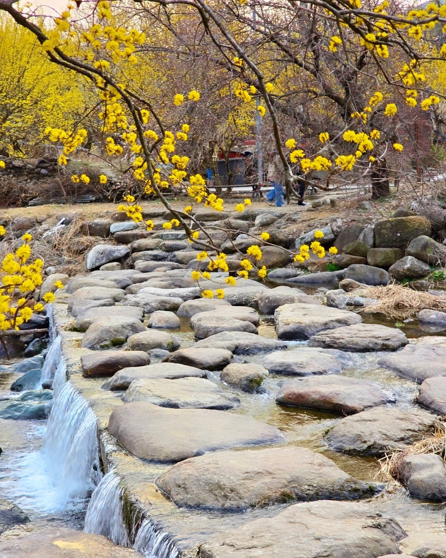 온 세상이 노랗게 산수유 꽃으로 물든 지리산 자락 구례의 봄징검다리를 건너면서 온 세상이 노란 산수유 꽃으로 물든 봄날애사랑이 가득한 순간들을 포착한다.