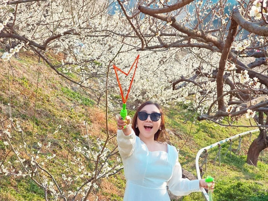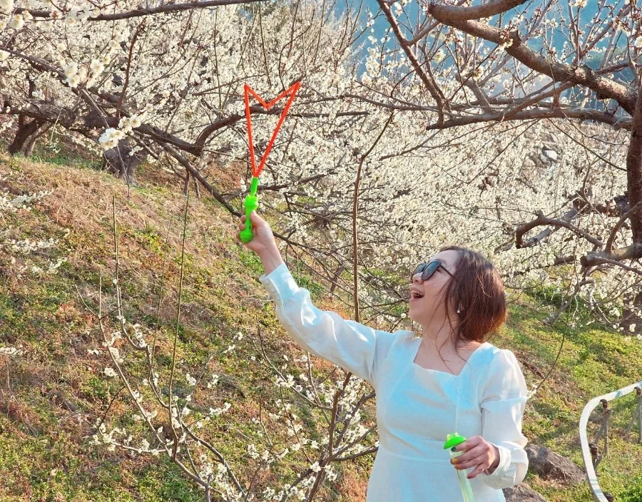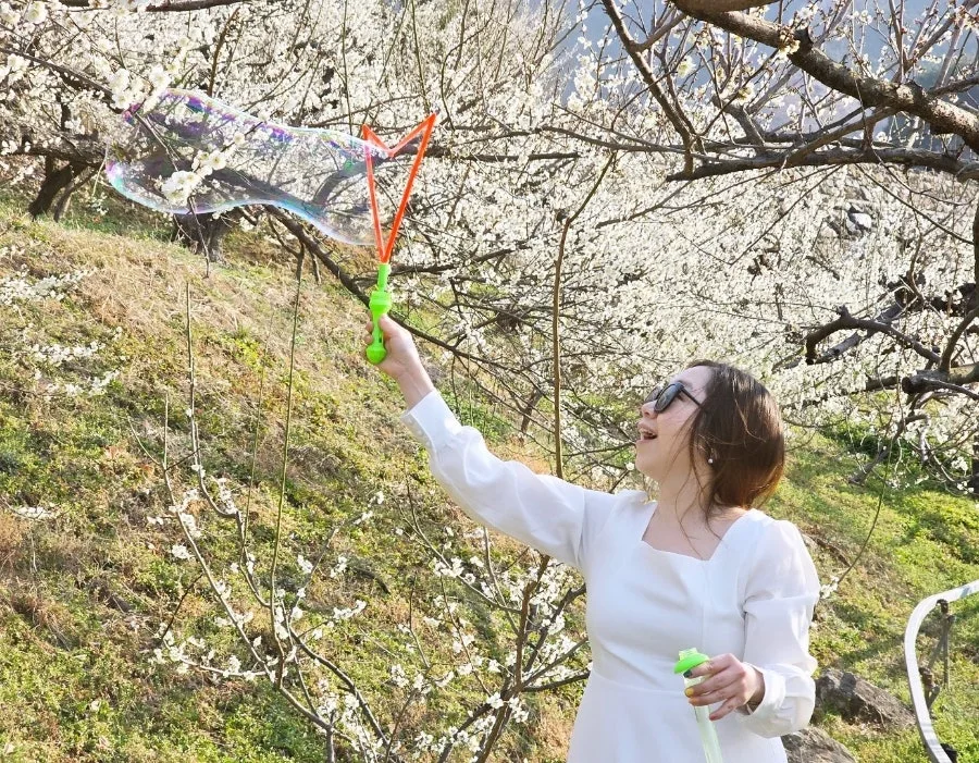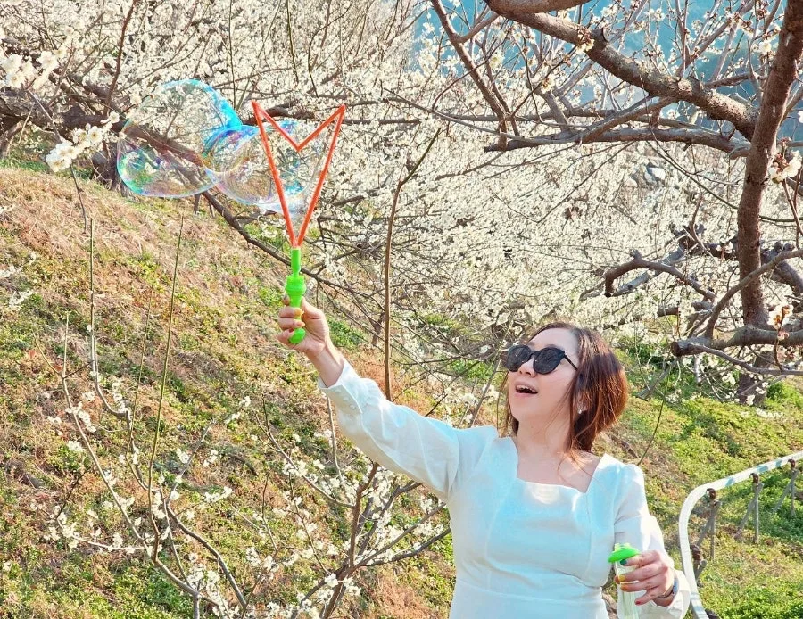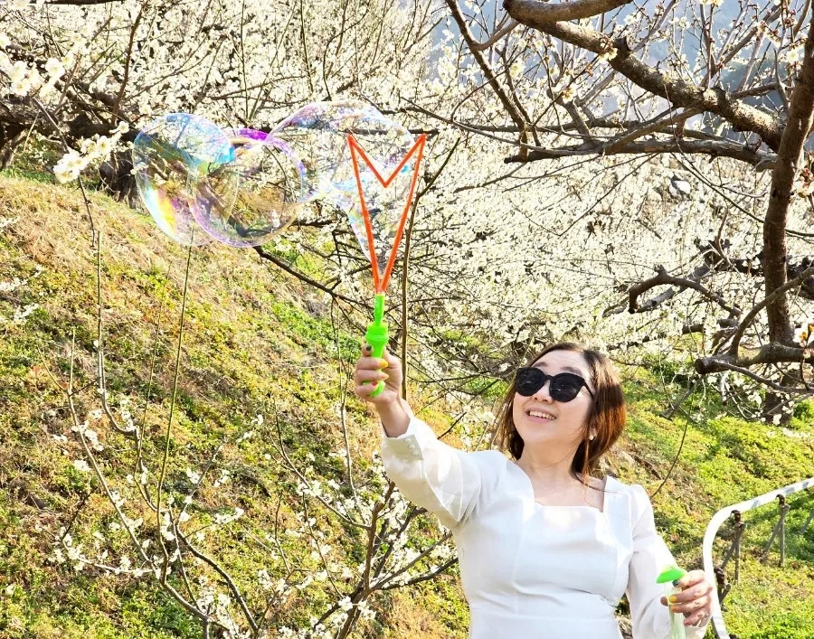- 어릴 적에 친구들과 하던 비누방울 놀이가 생각났다. 어렴풋한 기억으로 화창한 봄날에 놀이공원에서 했던 것 같은데, 어른이의 동심에서도 비누방울은 예뻤다. 거대하게 큰 비누방울을 만들며 푸른 언덕을 달리는 기분, 행복 그 자체. 몽글몽글하게 하늘로 피어나는 비누방울 꽃을 보며 또 한번의 봄의 추억을 만든다.섬진강매화마을전라남도 광양시 다압면 섬진강매화로 1563-1