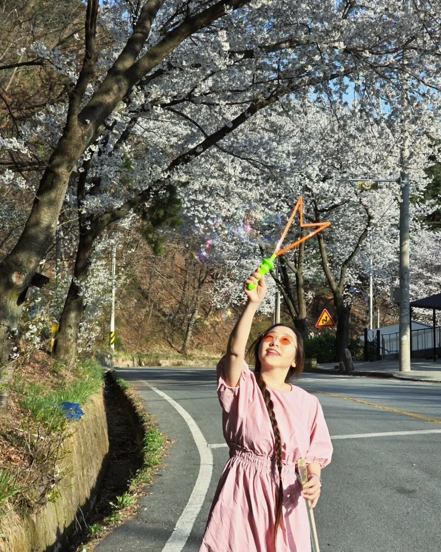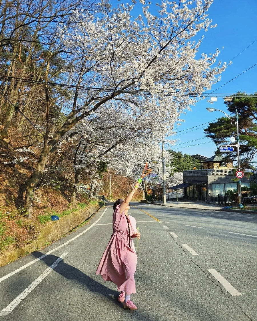 하늘로 날아 오르는 비누 방울 처럼, 벚꽃길을 걸어요