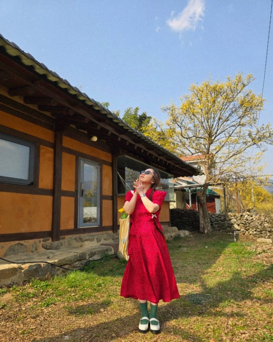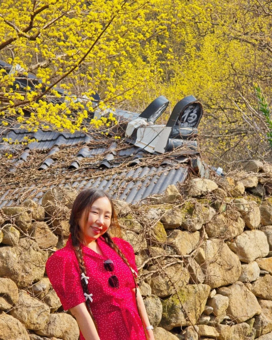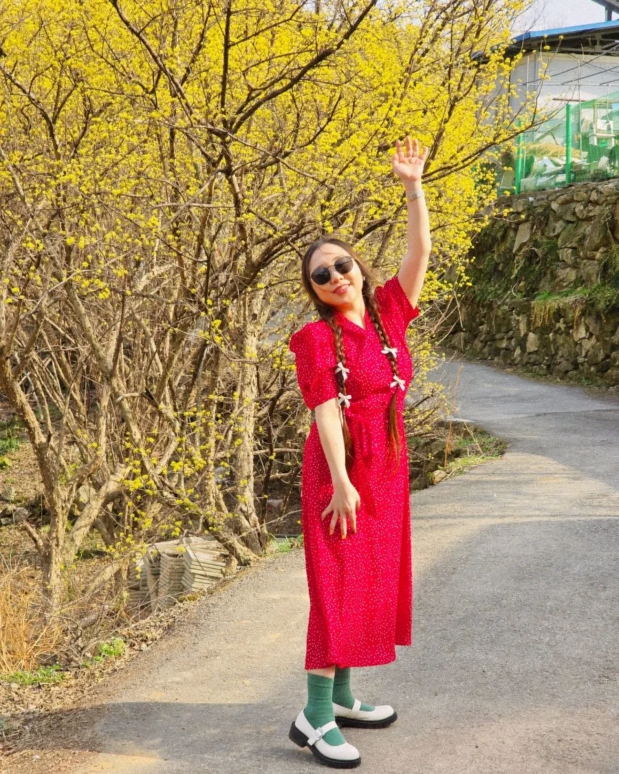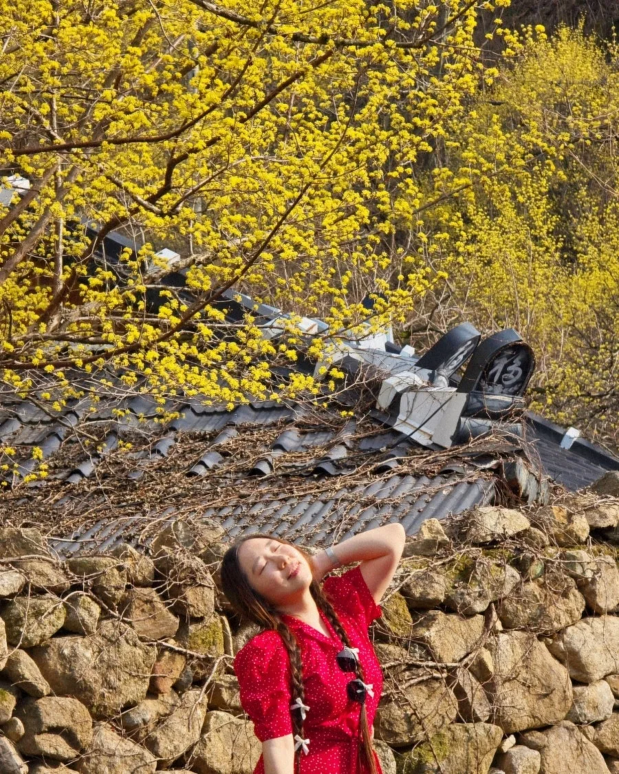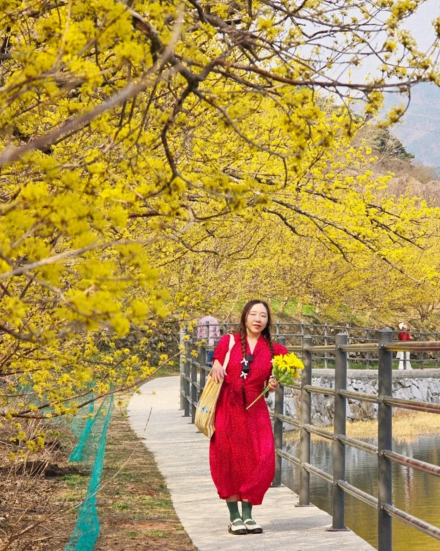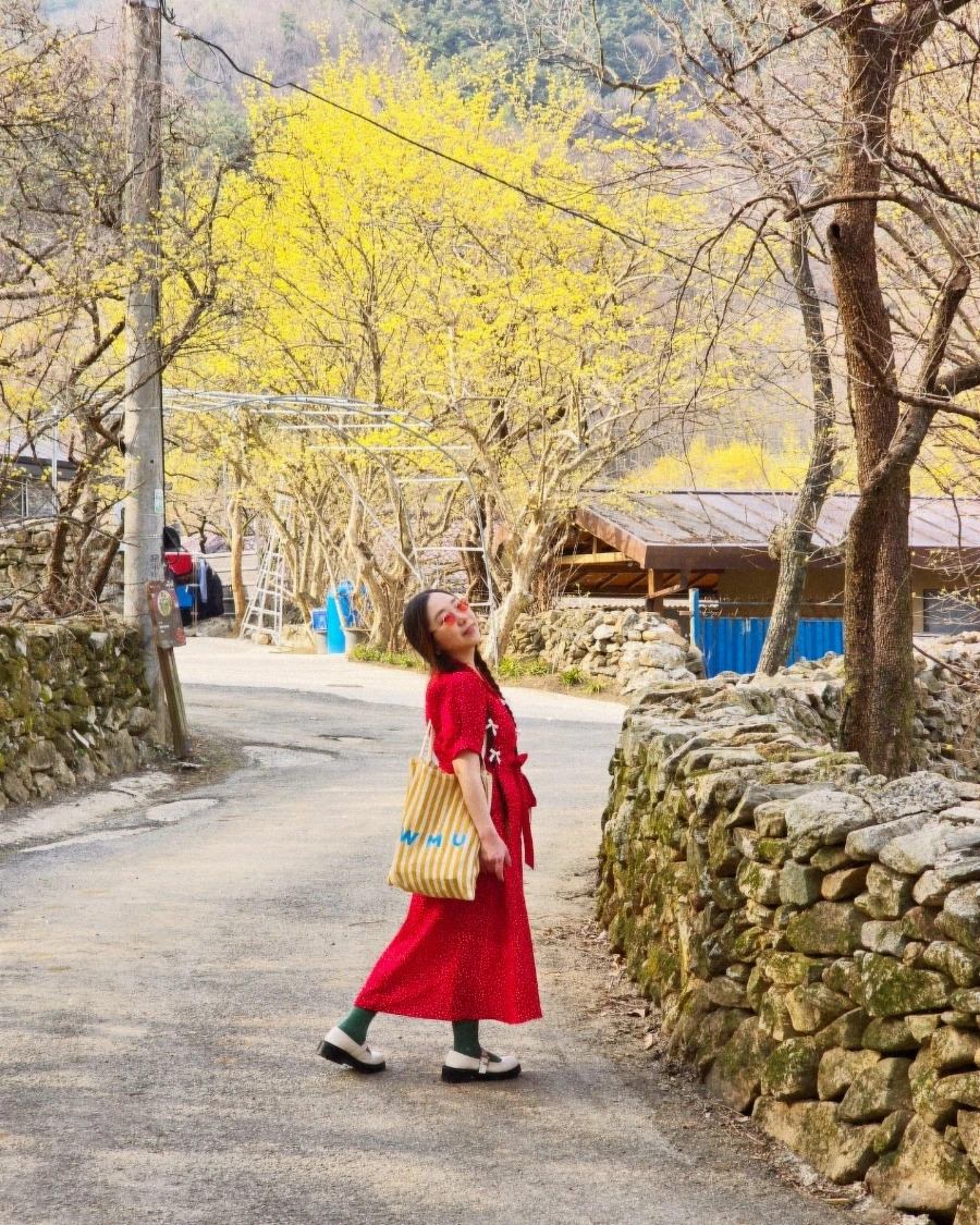 노란 해바라기 조화 꽃다발을 들고 노란 산수유 꽃길을 걸었어. 활짝 피어난 산수유 꽃들을 보며 멍하니 하늘도 보고, 하얀 구두를 신고 걷고 걸었어. 파란 대문이 있는 집은 매년 한 컷씩 담아 오곤해. 색깔있는 선글라스를 쓰고 온 동네를 누비며 설레었던 그날의 봄, 구례를 기억해. #전남 #구례 #현천마을 #구례의봄 #꽃을보듯너를본다 #꽃길을걸어요 #산수유꽃 #아름다운날