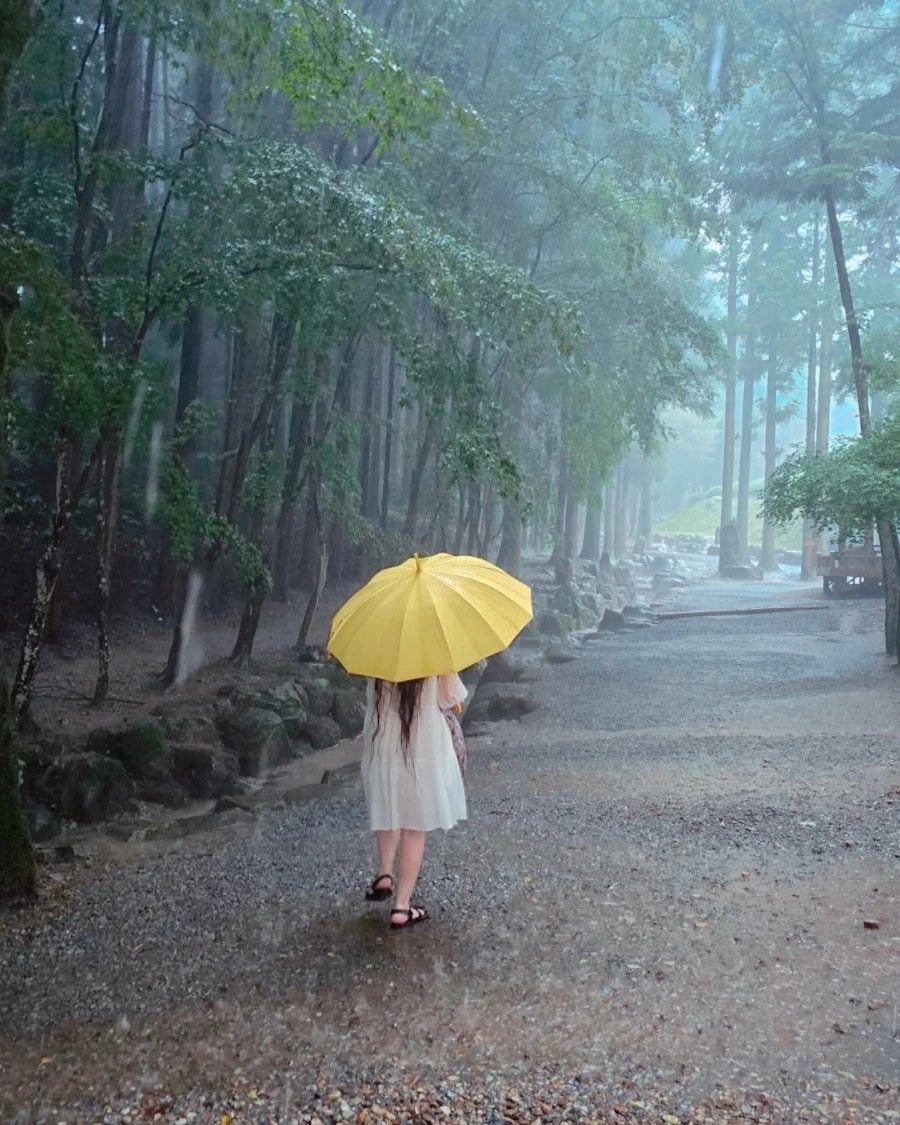 일년 전 그날도 오늘처럼 비가 내렸다. 맑은 날씨를 예상했지만, 예상치 못한 폭우였다. 다행이 노란 우산을 챙겼다. 그리고 그렇게 시원한 비를 맞았다. 우산을 쓰고 있지만, 비를 피하지 않았다. 여름 날, 여행자의 즐거움 중 하나. 무더운 날씨에 시원하게 비를 맞을 수 있는 여름의 낭만을 사랑한다. #그녀가사랑하는순간