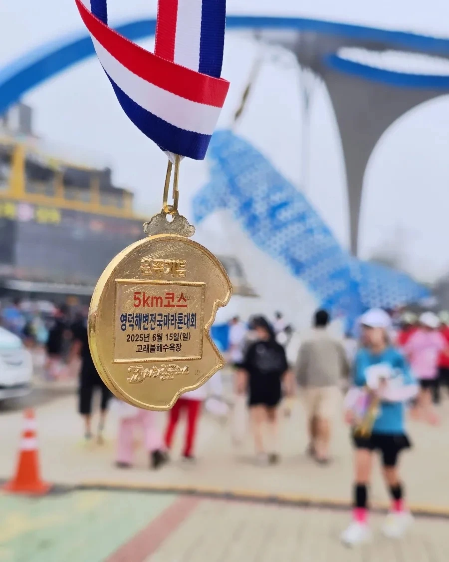 하늘을 날아 오르는 듯한 느낌이 들었다. 속도보다 방향이 중요하기에, 강함 보다 선함을 지향하기에 욕심 내지 않고 나 자신의 페이스에 맞추어 달리는데 오늘은 지금껏 출전해본 5km 중 가장 습하고 더운 날이었다. 해변 마라톤이라서 해변을 달리고 싶었지만 현실은 아스팔트 길을 보며 달려야한다. 그러나 마지막 1km이 남아있을 때 바다가 보일까 말까하는 지점이 있었다. 평소 기록으론 30분 내외로 완주하지만, 첫 영덕마라톤 출전이어서인지 약간은 긴장감을 두고 달려 38분에 5km 완주했다. 여름 마라톤은 속도를 올리기 쉽지않아 기대하지말라 라는 친구의 말이 떠올랐고 공감이 되었다. 하지만 포기하지 않았다. 걷지 않고 달렸다. 멈추지않고 달리는 방법을 터득했다. 꾸준히 달리면 적응이 되고 적당한 승부욕이 생긴다. 오늘의 이 복받치는 감정은 오랜만에 느낀 감정이었다. 완주하기 전 생글하게 웃던 내가 열기를 가지고 끝까지 달렸다. 5km, 10km, 하프를 달렸던 지인과 친구들의 이야기를 들어보면 대부분 쉽지않았던 코스라고 말한다. 그럼에도 불구하고 매년 도전하고 싶은 이유라면, 영덕을 사랑하는 마음이라고 생각한다. 그 마음 깊숙히 간직하고 내년에 또 영덕 마라톤에 도전할 참이다. 달리는 삶은 계속될거라고 스스로의 건강한 인생을 약속한다.