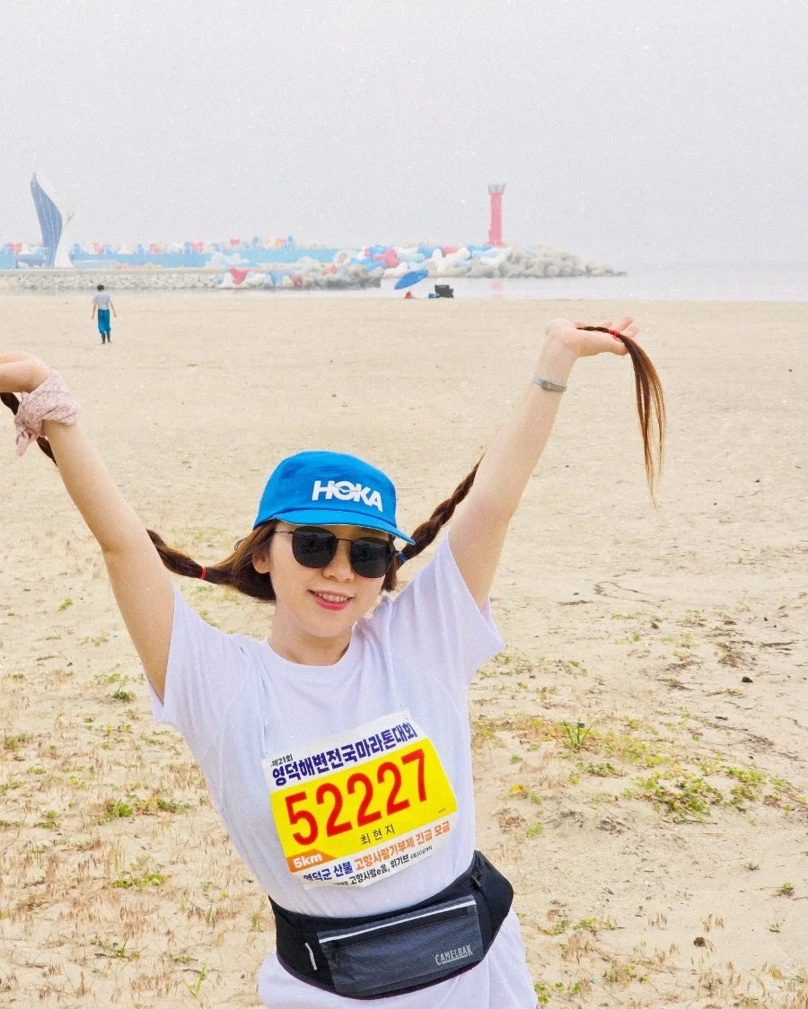 '바다를 보는 것도 좋지만, 바다를 달리는 것도 좋아.' 영덕 고래불해수욕장에서 시작되는 영덕해변마라톤. 5km에선 바다를 볼 수 없었지만, 마라톤 시작 전에는 해수욕장을 달리면서 준비 운동을 했다. 멀리서 보이는 고래 등대가 하늘을 헤엄치는 듯 하고 해변가 모래사장을 달리는 기분도 좋았다. 달리기 전부터 달리는 시각, 달리고 난 후까지 늘 체육관에서 시작되던 마라톤이 바다에서 시작된다는 자체만으로도 신선하고 즐거웠다. 여름 마라톤은 쉽지 않지만, 해변 마라톤은 흥미로워. 울진금강송 마라톤에 3년째 출전 중인데(울진은 체육관에서부터 시작) 올해도 휴가를 빼서 도전해볼 참이다. 다행이 9월 초가을 무렵이라, 영덕보단 덜 더울거라 믿는다. 영덕해변마라톤에 출전해보고 또 하나의 꿈이 생겼다. 올 여름엔 푸른 바다를 보며 맨발의 청춘으로 해변 위를 달려 봐야지. 생각만 해도 신난다.