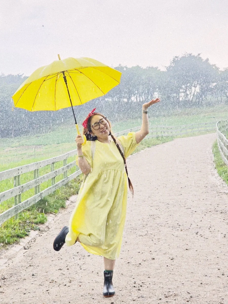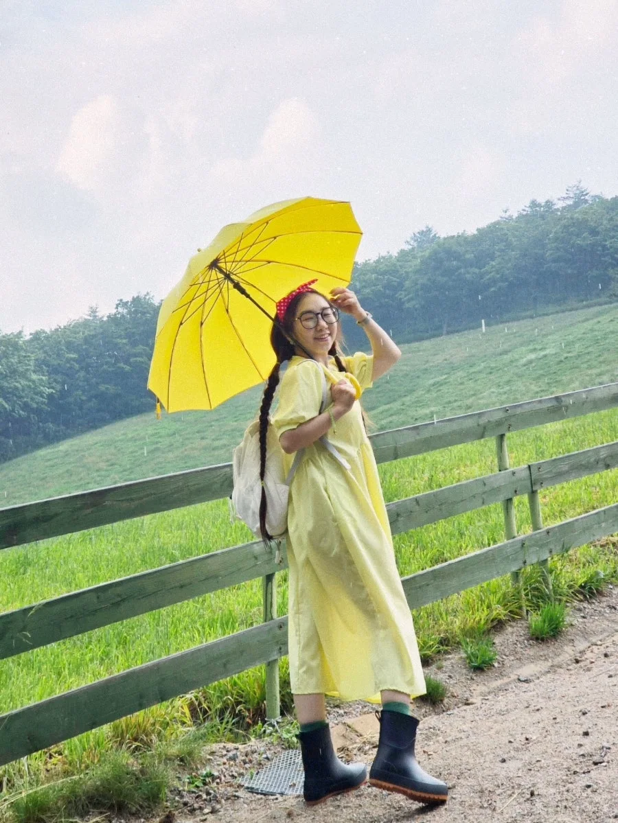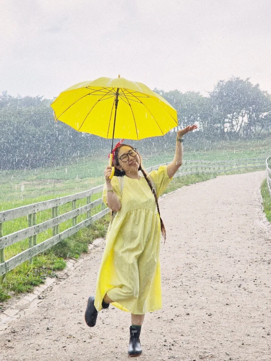 나는 기꺼이 여름 비를 맞는다. 무더운 더위를 식혀주고, 잔잔하던 마음을 설레게 한다. 이맘 때면 내가 이곳을 찾는 이유도, 여름 방학처럼 여름 휴가를 상큼하게 보내는 이유도, 말이 필요없는 자연의 힘이다. 재앙보다 힘이라는 걸 믿고 나는 기꺼이 여름 비를 맞는다. 밝은 색깔 우산을 쓰고 어두운 레인 부츠를 신고 폭우가 쏟아지는 그 길을 마음껏 걷고 달렸다. 그러다 쉴틈에 포착된 여름비를 만난 소녀. 우연히 지나가던 할머니께서 '알프스 소녀' 같다고 환하게 웃어주셨다. 그 마음이 참 따뜻해서, 이른 새벽임에도 또 다시 생각이 나네. 오래 오래 사세요. 한번 뿐인 청춘을 사랑합니다.
