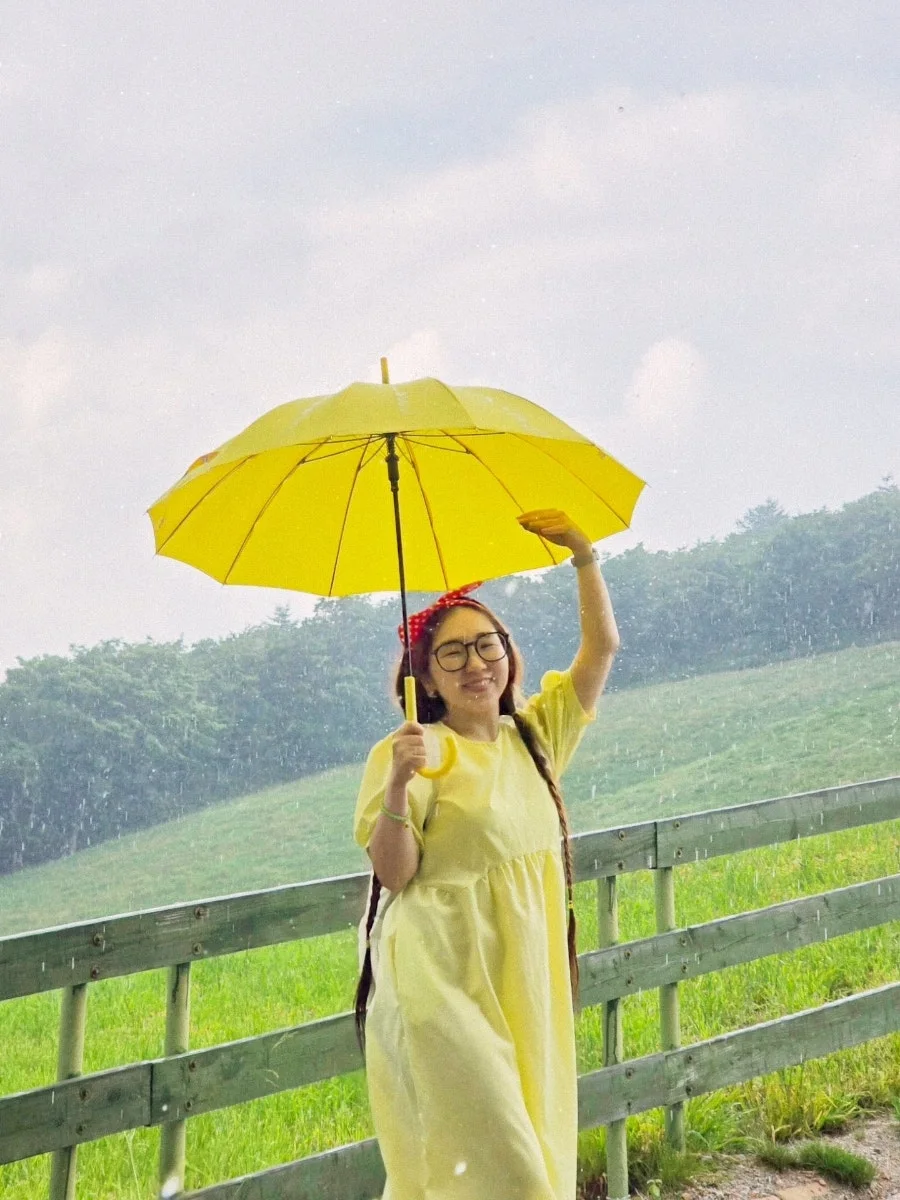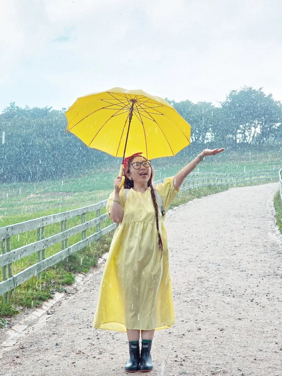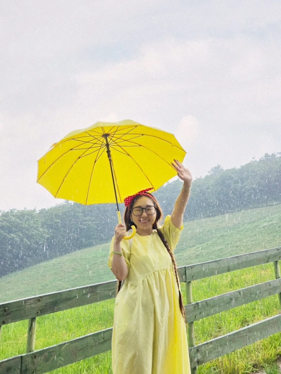 나는 기꺼이 여름 비를 맞는다. 무더운 더위를 식혀주고, 잔잔하던 마음을 설레게 한다. 이맘 때면 내가 이곳을 찾는 이유도, 여름 방학처럼 여름 휴가를 상큼하게 보내는 이유도, 말이 필요없는 자연의 힘이다. 재앙보다 힘이라는 걸 믿고 나는 기꺼이 여름 비를 맞는다. 밝은 색깔 우산을 쓰고 어두운 레인 부츠를 신고 폭우가 쏟아지는 그 길을 마음껏 걷고 달렸다. 그러다 쉴틈에 포착된 여름비를 만난 소녀. 우연히 지나가던 할머니께서 '알프스 소녀' 같다고 환하게 웃어주셨다. 그 마음이 참 따뜻해서, 이른 새벽임에도 또 다시 생각이 나네. 오래 오래 사세요. 한번 뿐인 청춘을 사랑합니다.