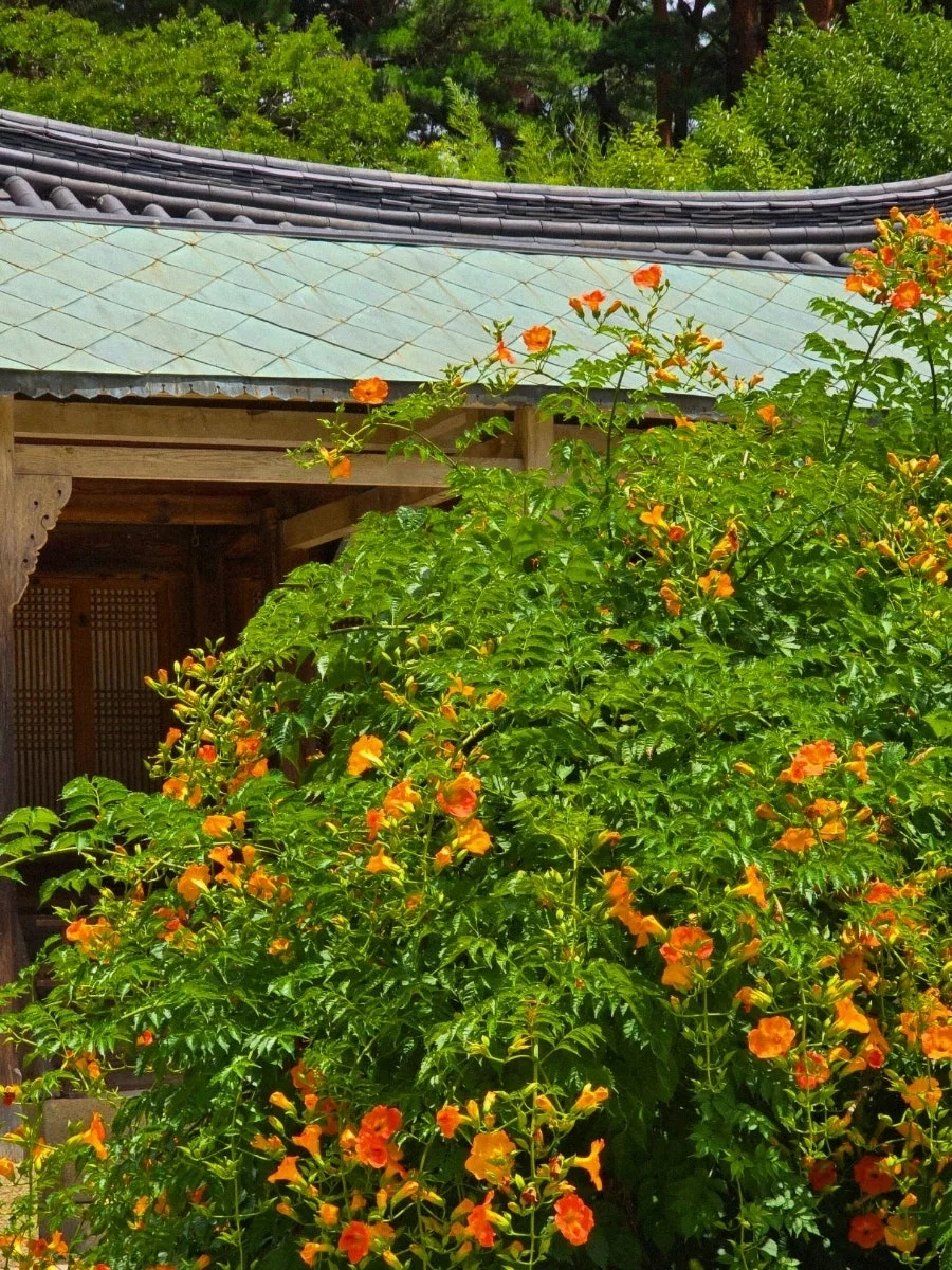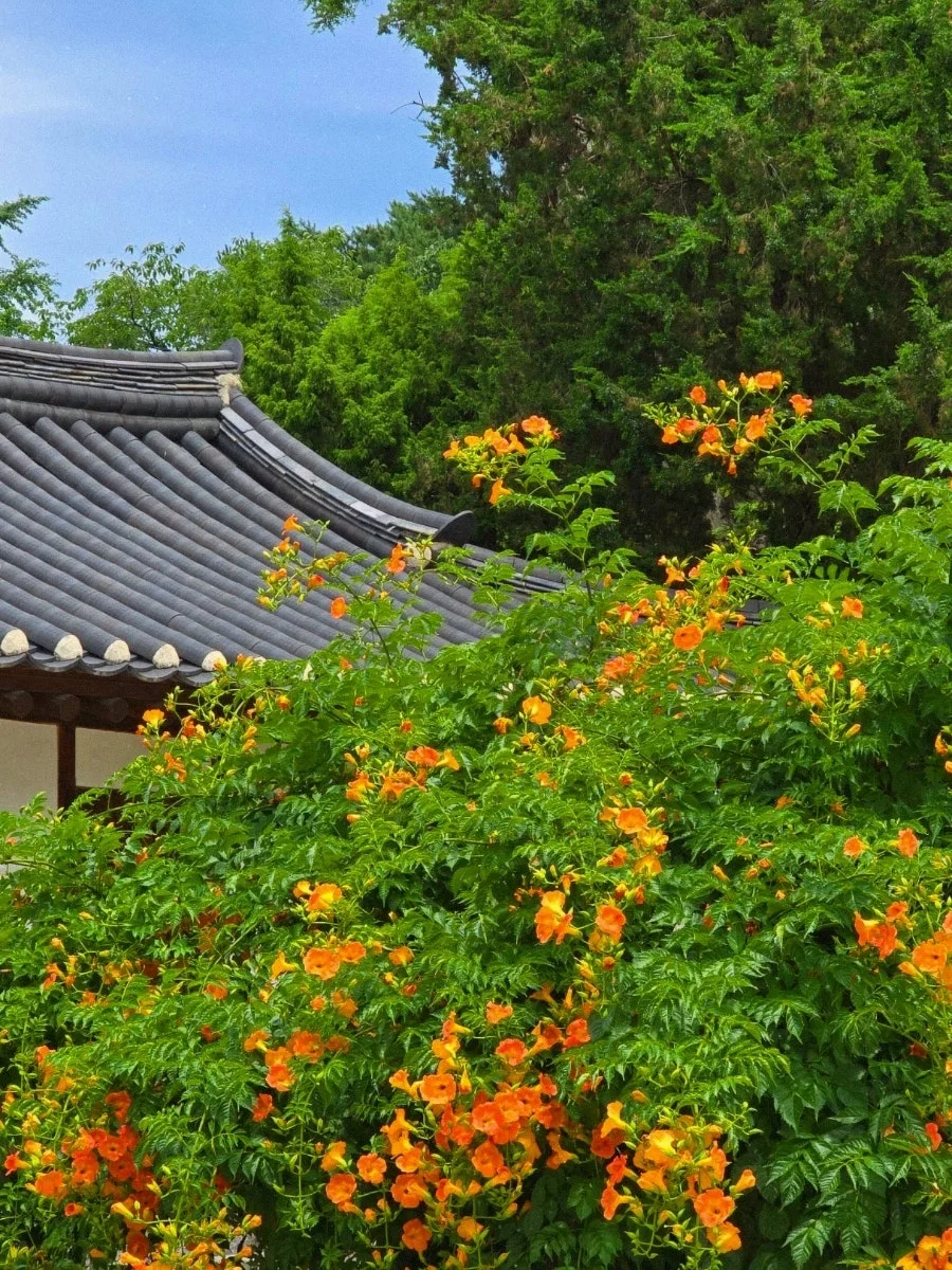 어느덧 칠월, 유월의 끝자락에서 떠난 3박 4일의 여름 휴가를 마치고 일상으로 복귀했다. 어제의 이 시간엔, 강릉 선교장에 있었다. 대프리카의 더위만은 못하지만, 강릉의 날씨도 대단했는데, 그러한 무더위 속에서도 한옥의 정교한 멋과 선교장 특유의 고풍스러운 분위기에 눈을 뗄 수 없었는데, 특히나 한옥 집 가운데에 활짝 핀 능소화가 아름다웠다. 낮의 별과 달이 뜬 것 처럼 말이다. 한옥 마루에 앉아 맑은 하늘을 올려다보는 행동 자체로도 마음이 힐링되었던 순간, 과연 나는 전생에 어떤 집에서 살았을까 궁금해지기도 했다. 양반이었을까, 서민이었을까, 청렴한 선비였을까, 마님이었을까 생각해보니 궁금해졌다. 어떤 시대의 어떤 계급에서 어떤 집과 가족과 직업을 가지고 살았을지. 몇백년의 세월이 지나도 사라지지 않는 것들에 대해 생각하면서 또 한번 우리나라 문화유산의 가치를 되새기는 시간이었고, 길다면 길고 짧다면 짧은 3박 4일 강원도 여행에서 강릉 선교장은 또 하나의 아지트가 되었다.