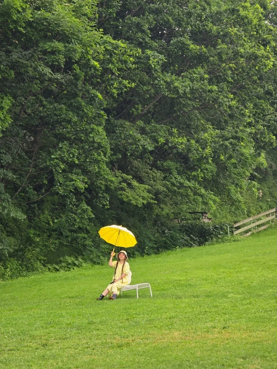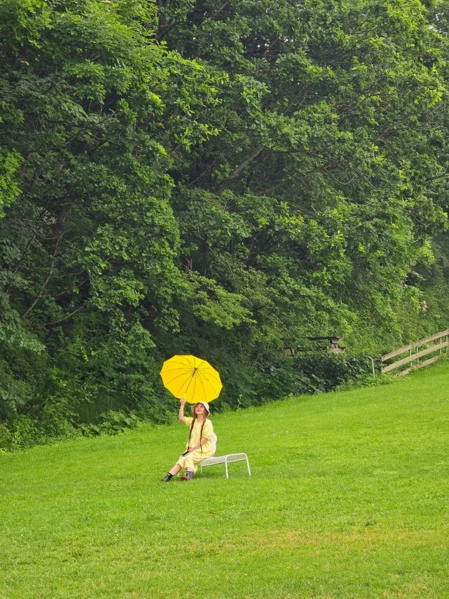비오는 날이면 선명해지는 순간들이 있다. 푸른 초원과 나무들의 풍경과 색이 짙어져 그날의 기억까지도 선명해지는 날. 시간이 흐를수록 보통의 기억들은 희미해지지만 여행의 기억은 선명해진다. 노란 우산을 쓰고 한마리의 양이 된 마냥 자유로이 뛰어 다녔던 푸르던 날, 비가 오던 그날.