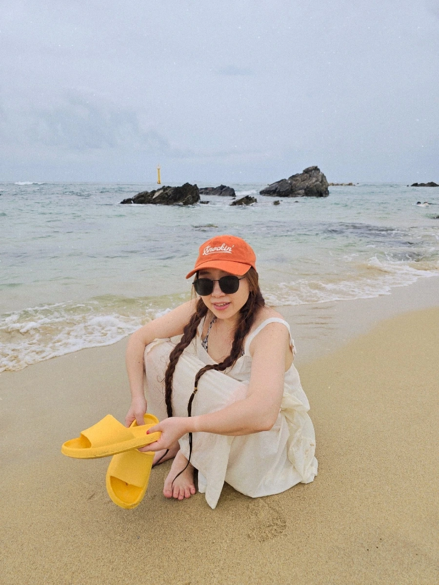 칠월, 뜨거운 땡볕 아래 짙은 파랑 하늘이 눈 앞에 펼쳐진 속초도 좋았지만, 구월, 비가 올듯 말듯한 선선한 가을 바람 부는 흐린 날의 동해도 좋았어. 여름은 뜨겁고, 가을은 선선한데 바다의 온도는 늘 체온의 중간을 유지해 주는 듯 한데, 어쩌면 바다와 내가 마음이 통한 게 아닐까. 바닷물에 발을 담그고 파도를 맞고 그렇게 바다와 친해지려 노력하는 인간의 마음을 알아주는거지.