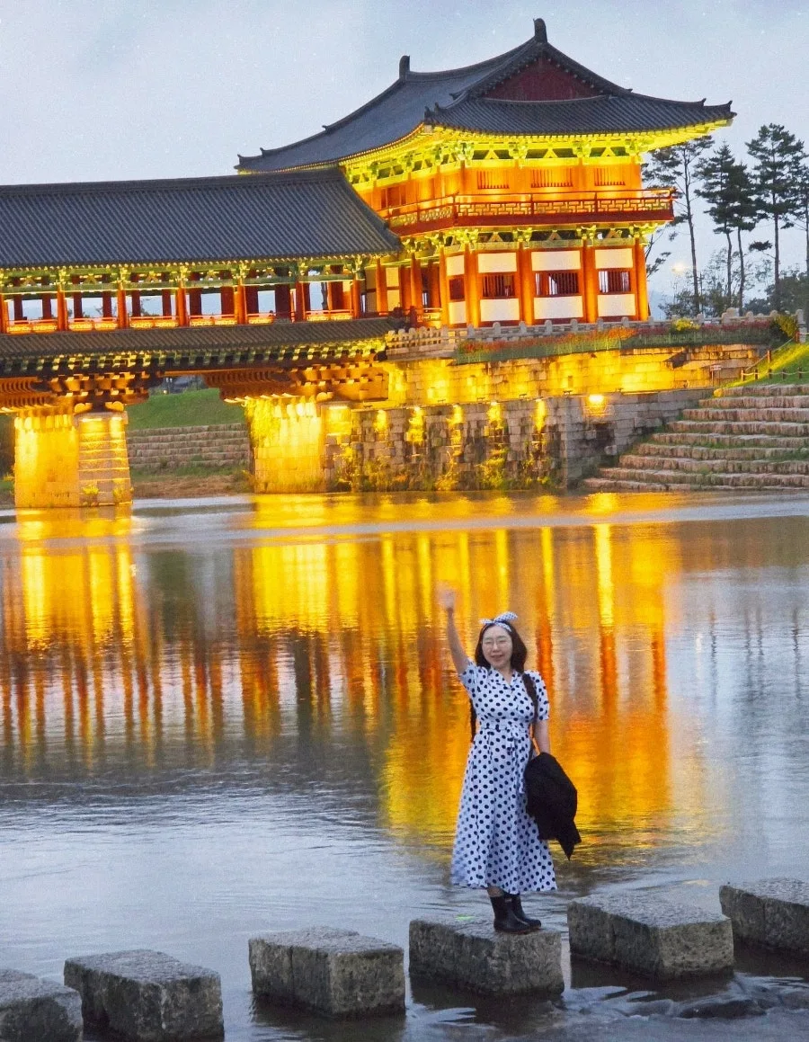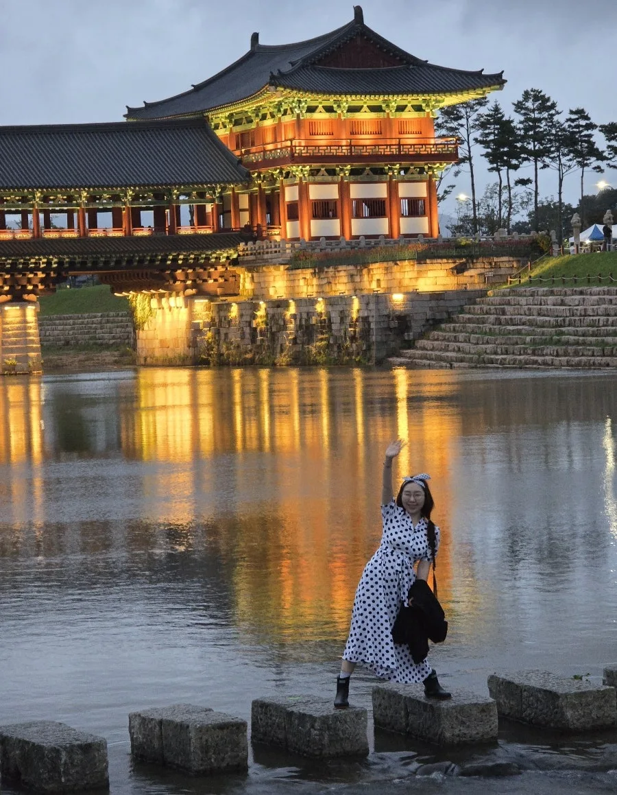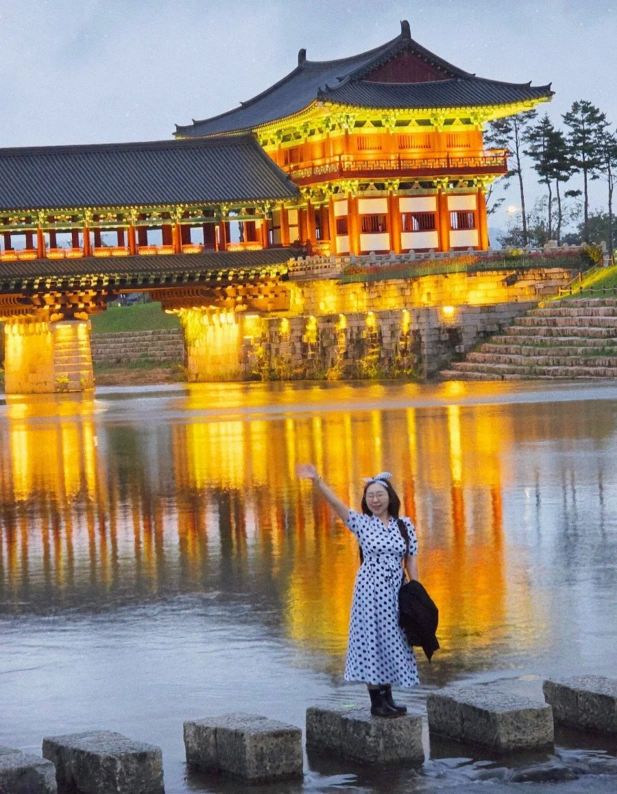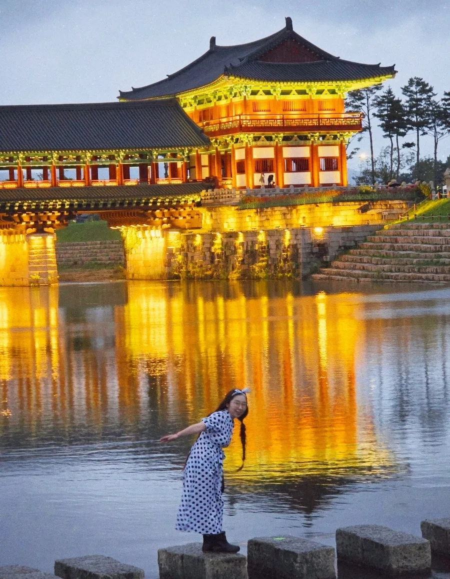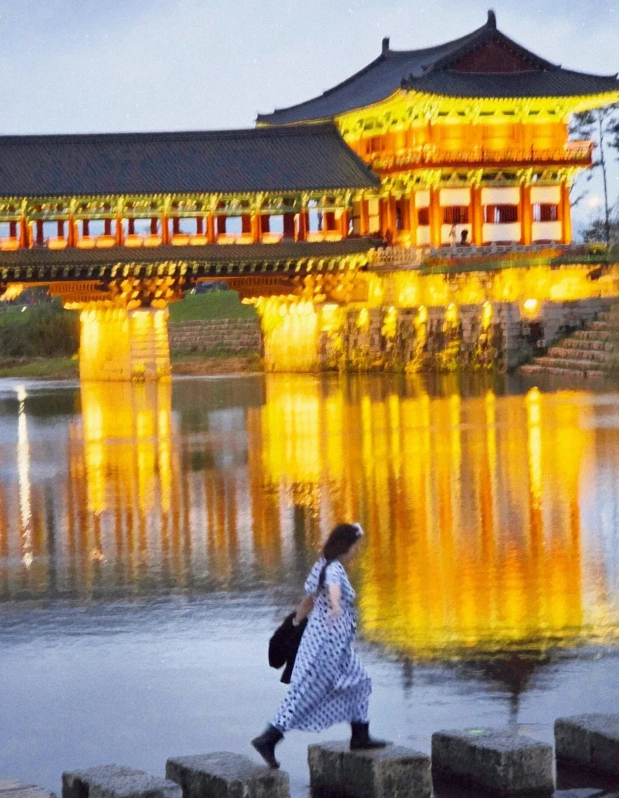 경주의 밤은 찬란하게 빛난다. 월정교 아래 강물에 비친 경주의 밤은 한폭의 동양화 처럼 그려진다. 폴짝이며 징검다리를 걷는다. 강물이 흐르듯 가을바람 따라 내 마음도 흔들이며 가을을 타나봐. 모름지기 가을밤의 낭만은 경주의 밤이니까.