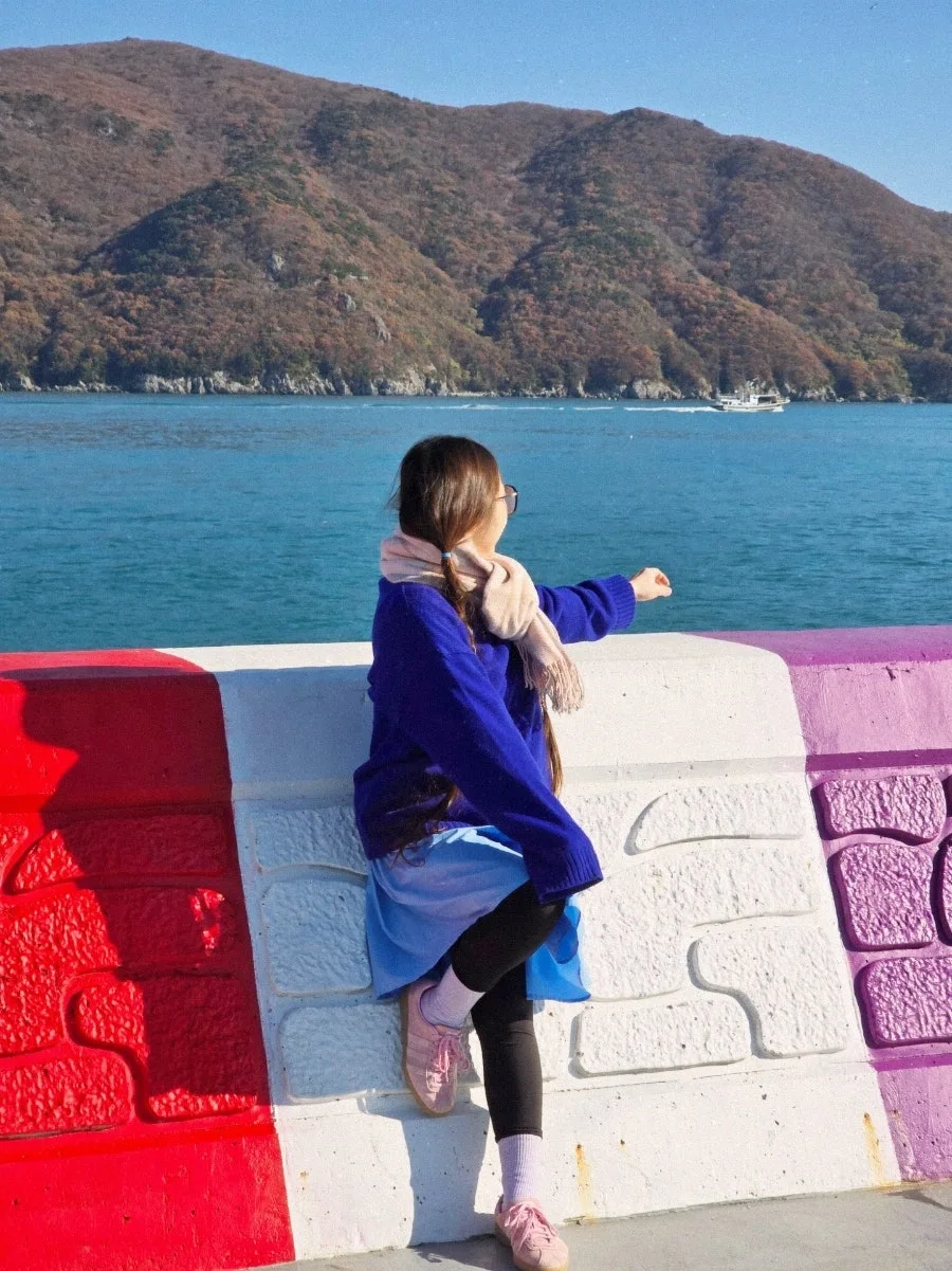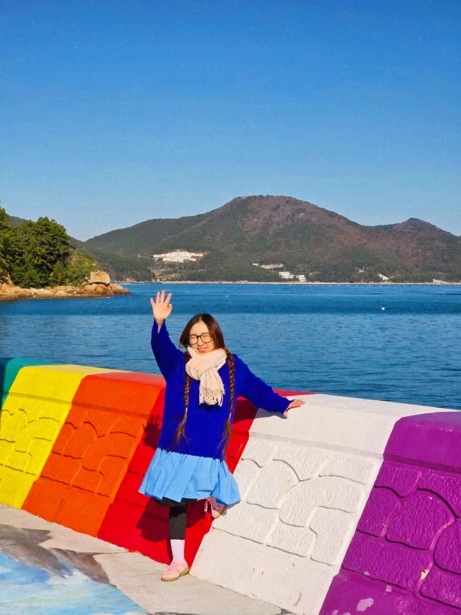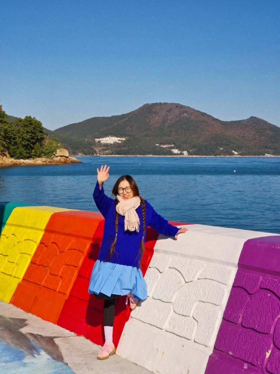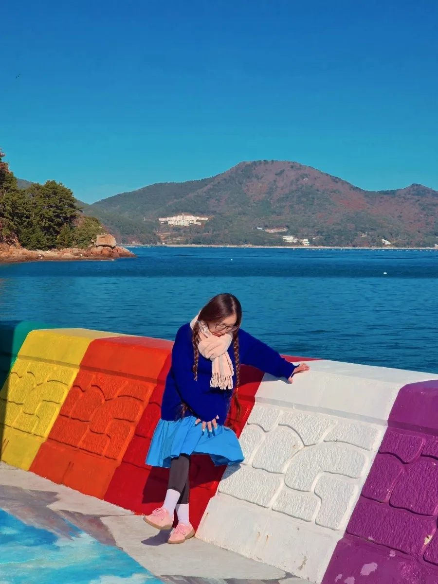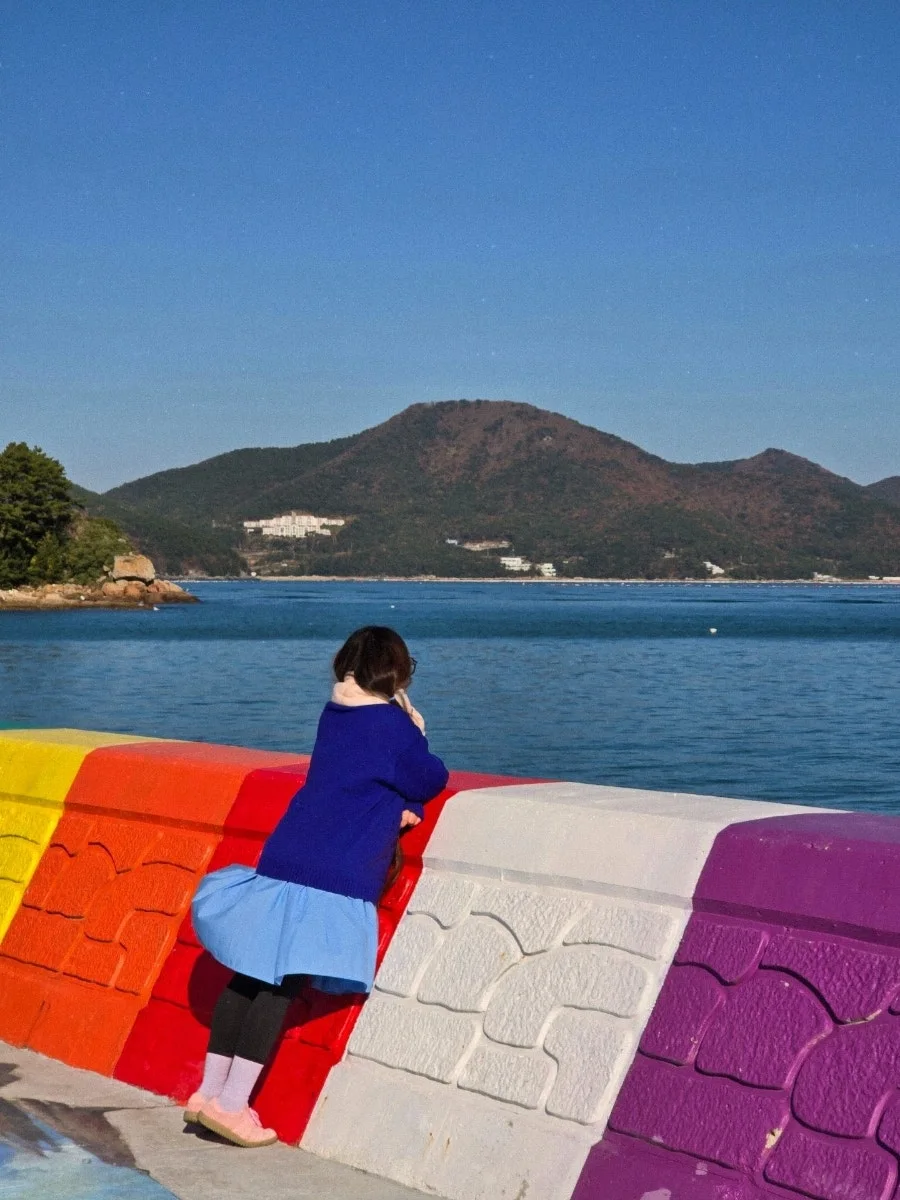 비온 후, 바다 한 가운데서 무지개를 보았다. 차 안에서 차창 밖으로 한 순간 지나가는 무지개가 눈에 들어 왔는데 말이야. 자연에서 만나는 무지개도 예쁘지만, 그대들이 그려둔 무지개도 예뻤어. #빨주노초파남보 #무지개 빛 벽화가 한 폭의 바다 풍경을 만들었지. 색을 입히지 않았다면 하나의 회색으로 남아있었다면 그리 설레는 마음으로 길을 걸었을 수 있었을까. 어쩜 인간의 재능은 이리도 아름다울까. 글이든, 그림이든, 간접이든, 직접이든 창작하는 삶이 참 좋아. 언젠가 재능을 기부할 수 있는 기회가 생긴다면 바다로 가고 싶어. #바라던바다