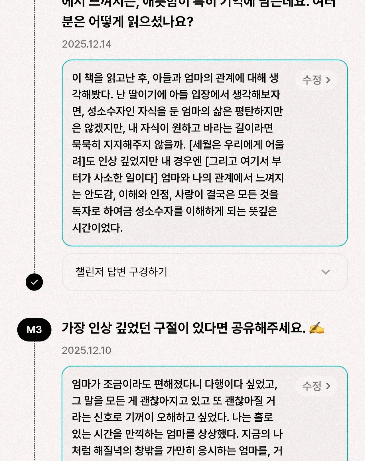엄마는 내가 이기적이고 무책임하다고 주장했다. 엄마의 입장을 전혀 고려하지 않은 것이 괘씸하다고 했고, 내가 아무런 언질도 없이 우리 얘기를 쓴 것에 배신감을 느낀다고도 했다. p.234