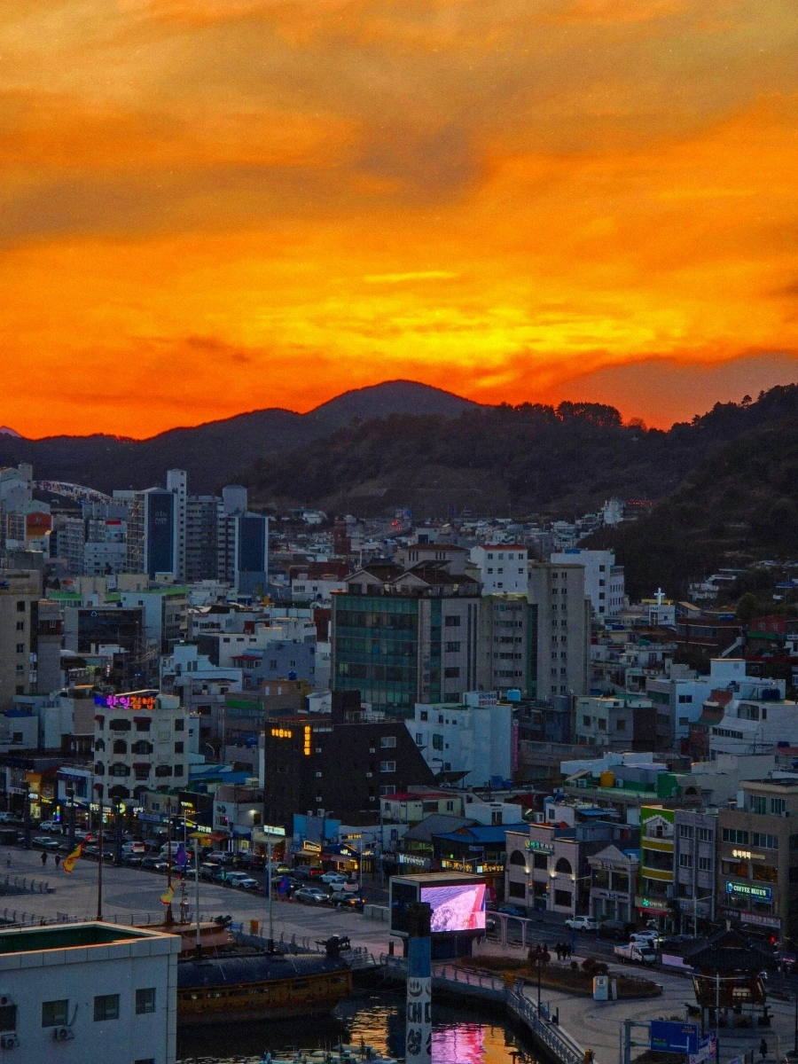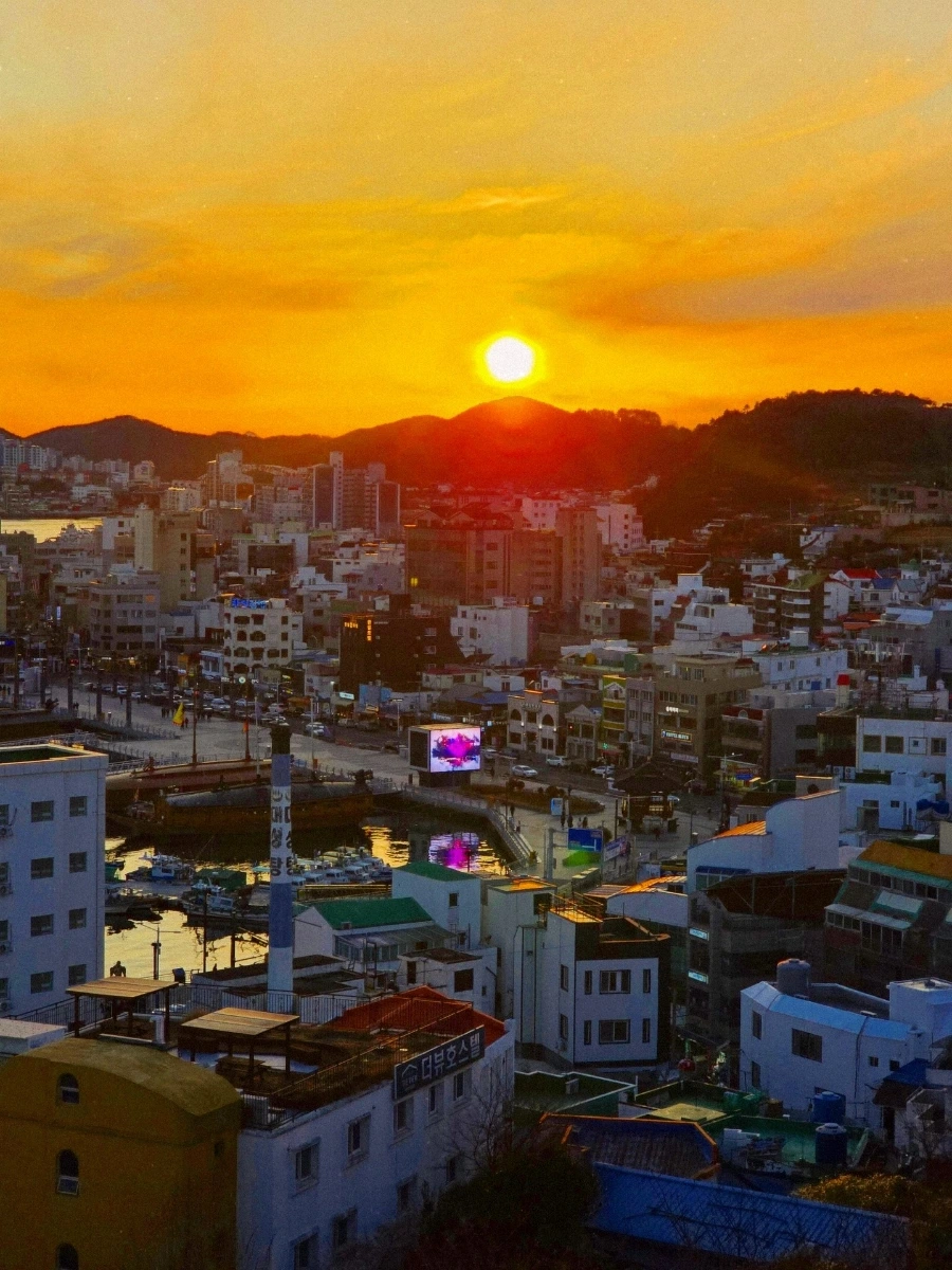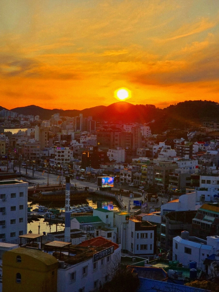 동피랑의 일몰. 도심에서 만난 일몰 중 가장 사랑하는 순간이다. 높은 곳에서 바라본 통영의 겨울 바다는 영화 속 한 장면처럼 남아있다. 곳곳에서 포착되는 장소와 풍경, 그리고 사람사는 이야기들. 지지 않고 살아나는 도시, 통영의 태양이 좋다.